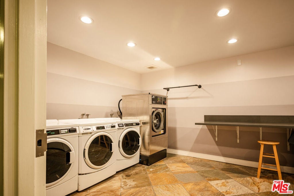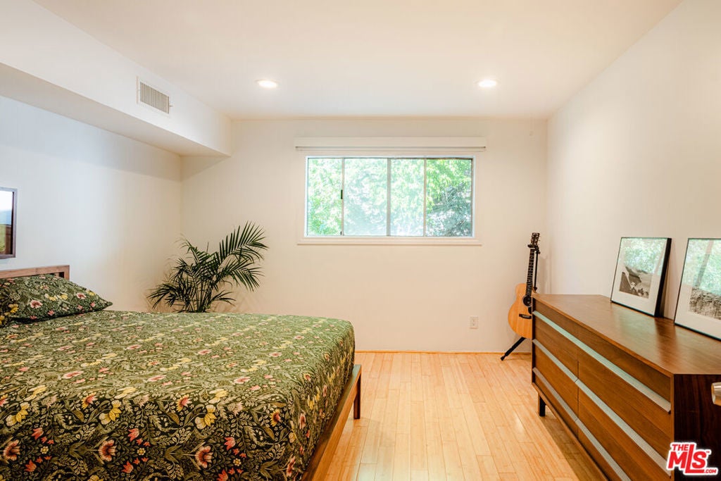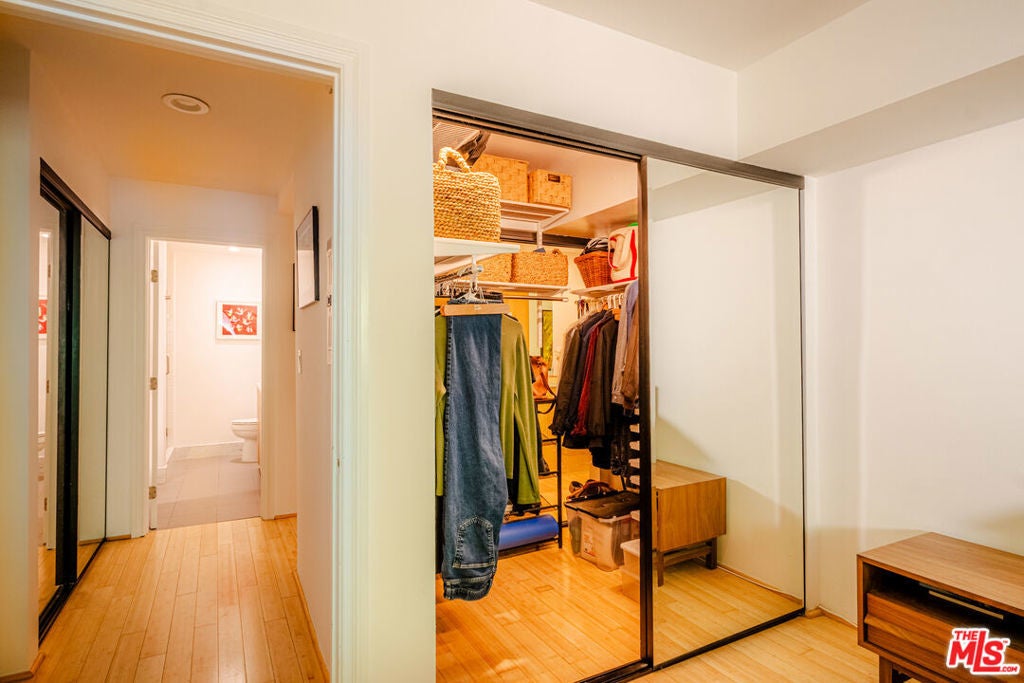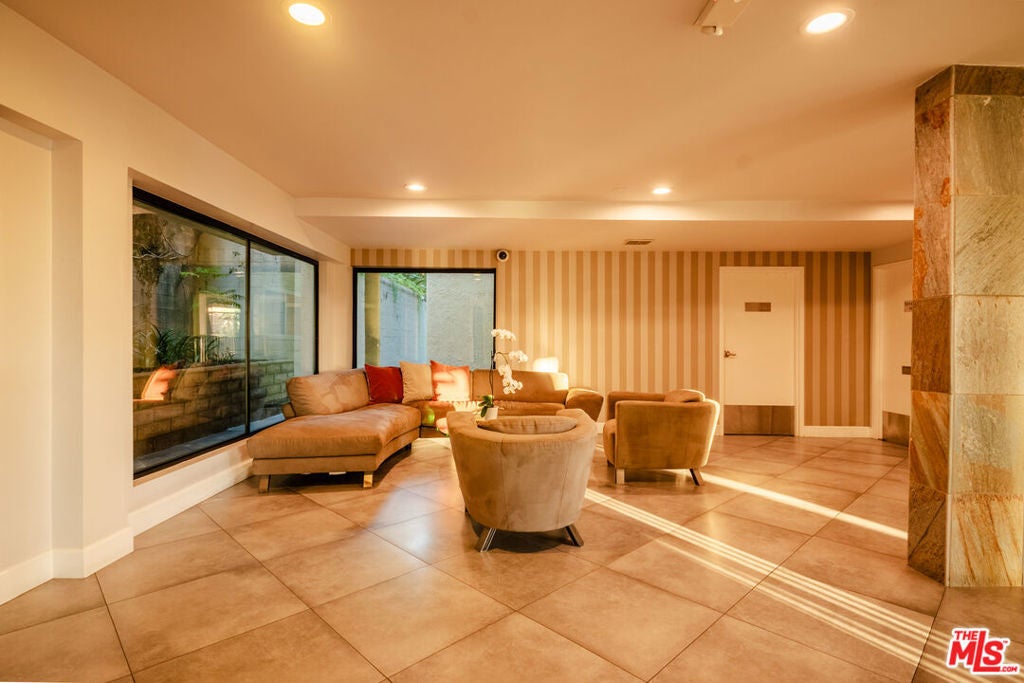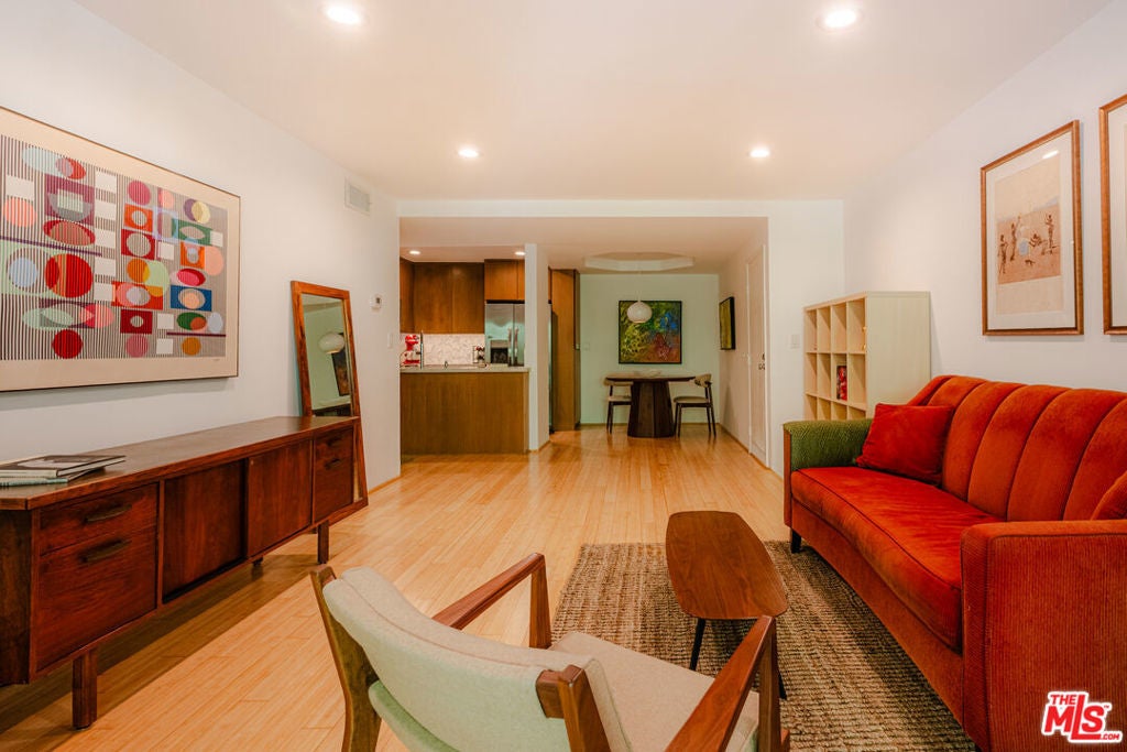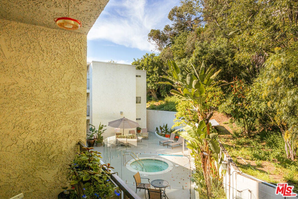 Uniquely situated at the end of a quiet cul-de-sac above the legendary Sunset Strip, Horn Plaza blends easy access and city excitement with the natural serenity of the foothills of the Santa Monica Mountains. Designed by the noted architect, John Gary Wallis (AIA) and constructed in 1974, Horn Plaza's distinctive mid-century modern architecture excels in charm, comfort, and is embraced by the tight-knit community of WeHo Heights. This condominium home is located on the building's west side with an unobstructed view facing the hills. While the vibrant Sunset scene is just down the street with its music, historic nightlife, celebrity haunts, luxury hotels, and innumerable restaurants, coffee shops, and boutiques, the home has a remarkably peaceful atmosphere and is truly one of a kind. A floor-to-ceiling glass door gives access to a private balcony that is perfect for relaxing while enjoying the hillside view. Nature lovers will delight in the hummingbirds, goldfinches, hawks, and butterflies that frequent the area. Inside, an open floor plan conveys a feeling of spacious comfort. An updated, sealed gas fireplace is the cozy heart of the home while the living room invites good times. The kitchen is a model of efficiency with stainless steel appliances, generously-sized countertops, tile flooring, and sleek modern cabinetry-a cook's dream. A relaxed dining area is set adjacent to the kitchen. The bathroom offers both a glass enclosed shower and a tub for soaking, along with modern cabinetry and marble countertop. There is ample closet space throughout the home, including a walk-in closet accessible from both the hallway and the bedroom for easy access. Horn Plaza's resort-like amenities make this building well equipped for relaxation. Residents enjoy a spa, dry saunas, and a heated pool surrounded by a spacious patio, with deck chairs for rest and repose, and tables for an impromptu outdoor gathering with friends. A Club Room provides ample space for lounging, comfortable furniture, television, billiards, ping pong, and a wet bar for entertaining. A dog run with natural turf is a favorite among the residents' four-legged friends, and a large rooftop sundeck is a perfect place to enjoy the sunset, with panoramic views from downtown Los Angeles to Catalina. Make this peaceful and historic gem in the heart of the city your dream home today.