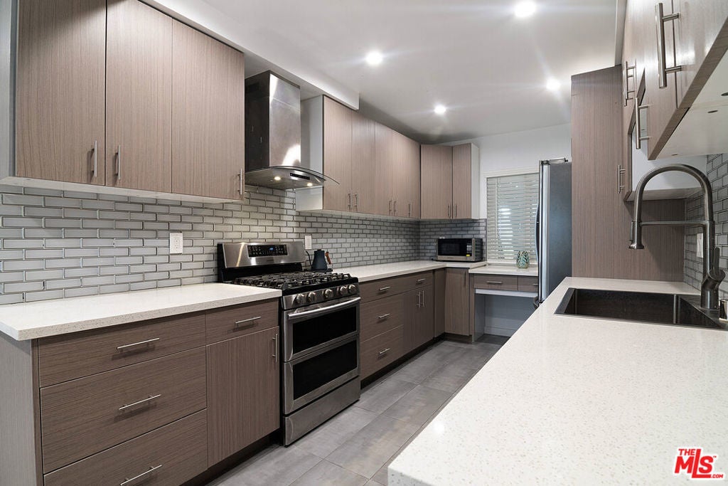 Fantastic opportunity in desirable Toluca Lake area with this spacious and masterfully redone 1bd/1ba unit. Enjoy modern finishes amidst a generous, open layout throughout the ~1,036sft of living space. Front-facing unit provides ample light, an oversized balcony and only one shared wall. Masterful, large kitchen with stainless steel appliances and a large bathroom with beautiful tiled wall, floating vanity and frameless glass shower complete with rain shower head. The bedroom is large and features a second outdoor space. Ample storage through the 3 separate, generous closets, including a walk-in storage off the living space. The building covers water, gas AND electricity and features a clean, community pool and club room. Secure parking space and additional storage box in garage. If the unit and building weren't enough, the location cannot be beat. Close to everything Toluca Lake has to offer and easy, quick access to multiple fwys and entertainment hubs. Move right in and start enjoying the good life at Toluca Court.