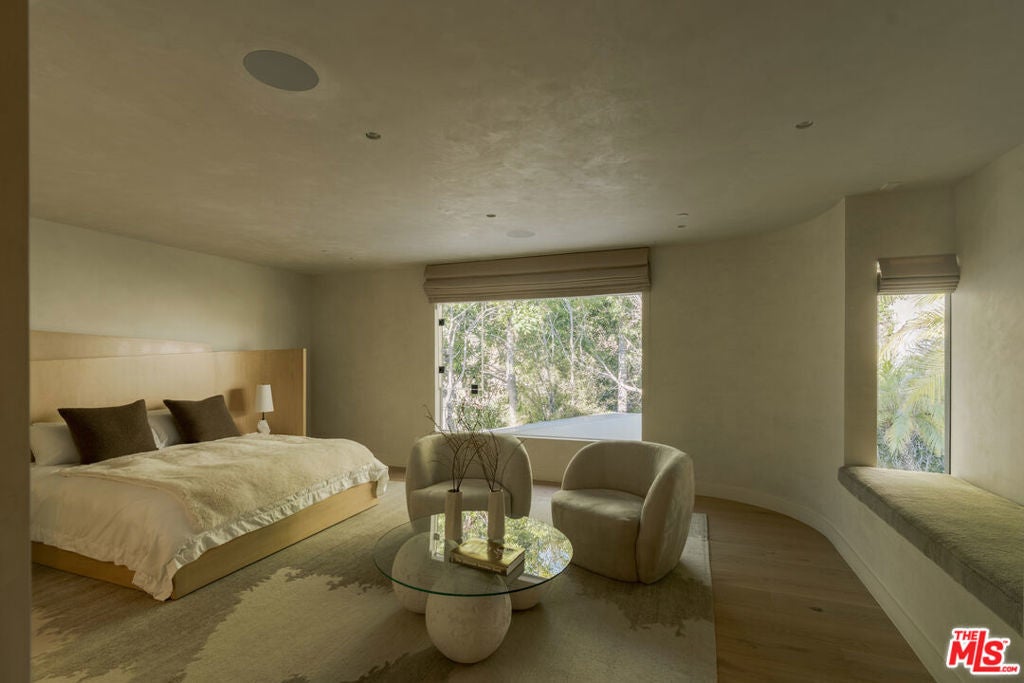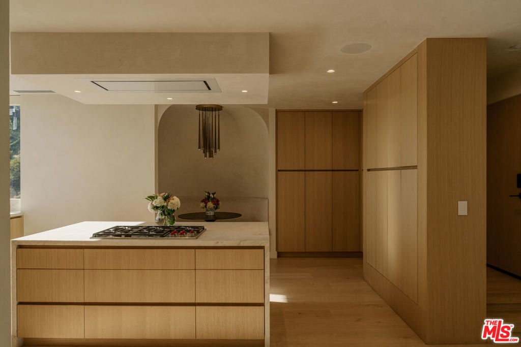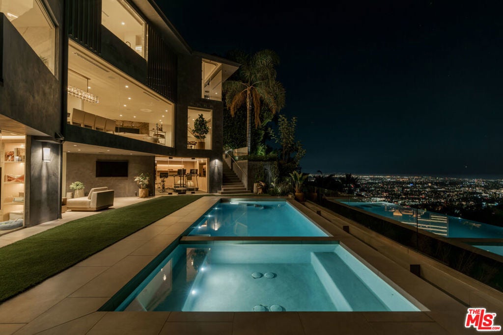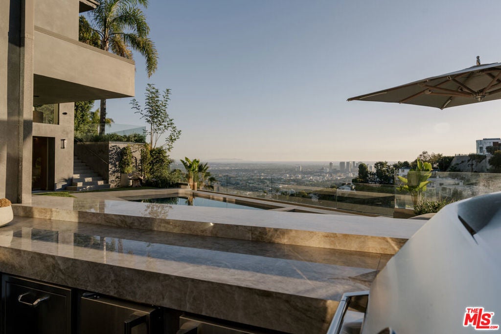 Perched at the pinnacle of Viewmont North, the only gated enclave in Sunset Plaza, 1778 Viewmont stands as the crown jewel of the community. Privately positioned at the end of a cul-de-sac, this approximately 6,300-square-foot modern masterpiece is the largest of only six homes behind the gates and commands unobstructed jetliner views stretching from the city skyline to the Pacific Ocean.Recently reimagined from the ground up, the residence showcases a refined contemporary aesthetic defined by clean lines, warm textures, and sophisticated materials. Inside, expansive open living spaces are framed by floor-to-ceiling glass, flooding the home with natural light and capturing the sweeping views beyond.White oak floors run throughout, complemented by smooth plaster walls, custom millwork, and designer accent lighting that creates a gallery-like ambiance day and night. The chef's kitchen is anchored by travertine stone countertops, integrated Wolf and Sub-Zero appliances, and sleek European cabinetry perfectly suited for both everyday living and large-scale entertaining.Seamless indoor-outdoor living connects the main living areas to an expansive terrace featuring a zero-edge pool and spa, lush landscaping, built-in grill, and grassy yard all oriented toward the panoramic skyline.Four ensuite bedrooms, including a serene primary suite with fireplace, oversized walk-in closet, and spa-like bath, provide comfort and privacy. Additional amenities include a state-of-the-art home theater, world-class gym, and spacious den and bar area that open directly to the pool.Offering unmatched privacy, generous parking, and exceptional design, 1778 Viewmont Dr embodies the ultimate modern lifestyle just moments from the world-class dining, shopping, and entertainment of the Sunset Strip and Beverly Hills.