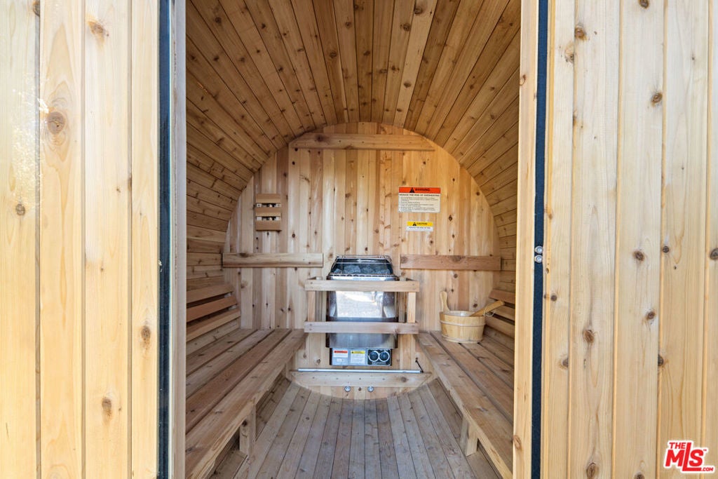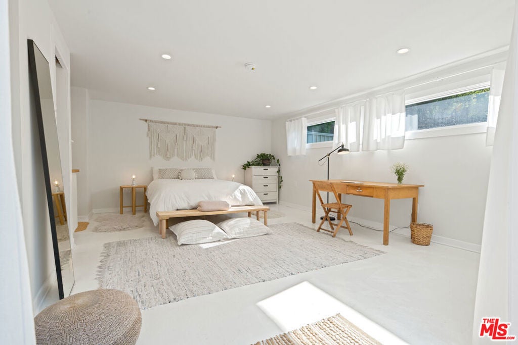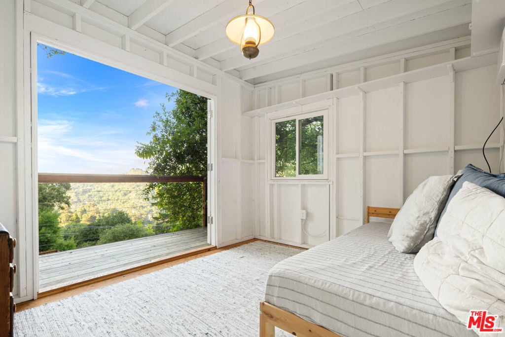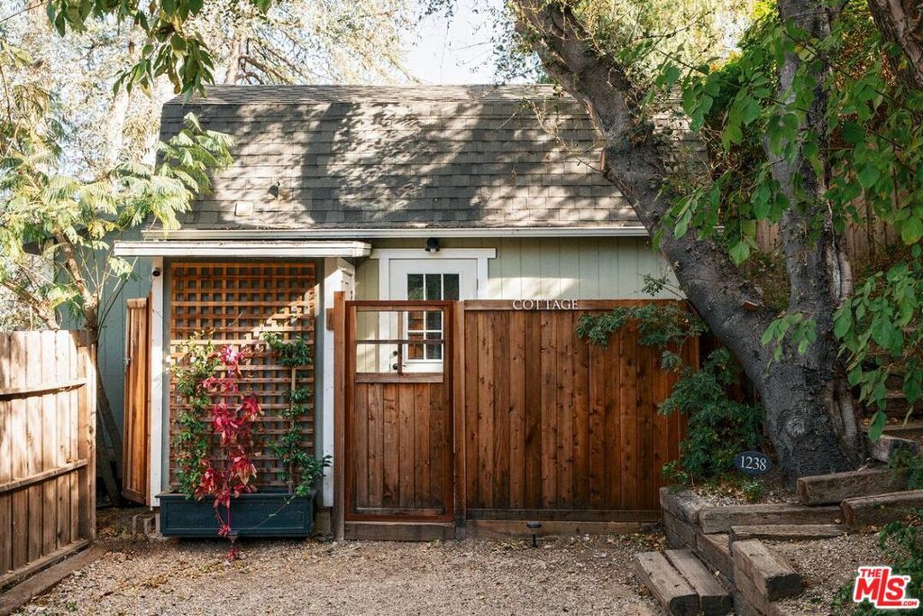 This majestic compound is a truly unique property composed of one 3 bedroom/2.5 bath home and a separate 1 bed/1 bath guest cottage. Upon arriving at the property, you'll find the cottage below and the main house at the top of the hill. Both properties can be used separately or easily combined by unlocking and opening gates around the property. As you enter through the front gate from the private parking area, you'll be greeted by a charming deck with an outdoor dining area, perfect for enjoying meals al fresco. The interior of the house is clean, airy, and spacious, with a designer kitchen for your culinary adventures. The living areas are thoughtfully designed, providing a comfortable and inviting atmosphere for relaxing and unwinding. Head upstairs to the primary and secondary bedrooms. These bedrooms share a full bath with steam shower. Surrounded by nature & boasting stunning views of the canyon, this sprawling property is the epitome of the Topanga experience. The separate guest suite in the converted garage boasts its own full bath with shower, kitchenette work station, and queen bed. This bedroom has an outdoor entrance, with french doors overlooking a lower patio, making it ideal for guests seeking privacy and tranquility. Step outside and immerse yourself in the beauty of the outdoors. Live Oaks, Eucalyptus, Kumquat, Lime, Bay, Rosemary, Jasmine... these are just some of the plants situated within the garden. A separate yoga studio situated in the upper garden (with the best view on the property!) offers a serene place to move and recharge. The lower garden features an electric barrel sauna, cold shower & unheated plunge pool... perfect for unwinding and rejuvenating. Enjoy a game of bocce on the lower terrace or bounce around on the trampoline, providing fun for all ages. On the same property but separated by hedges and a fence you will find a little cottage. You are welcomed into a bright, high-ceiling living space with thoughtful decor and French doors looking out onto the charming, private, quiet outdoor space. There is a newly remodeled full bathroom with shower and a kitchenette equipped for full meals and a lofted bedroom. Relax in the backyard clawfoot tub (with both hot and cold water) with brass shower fittings.