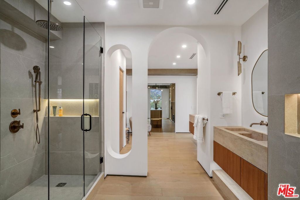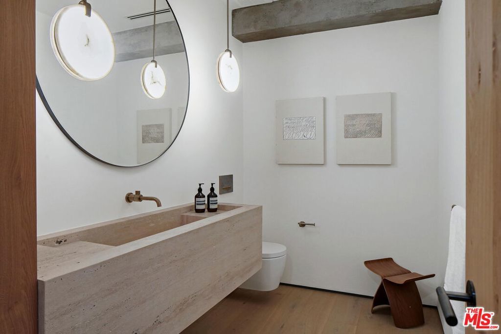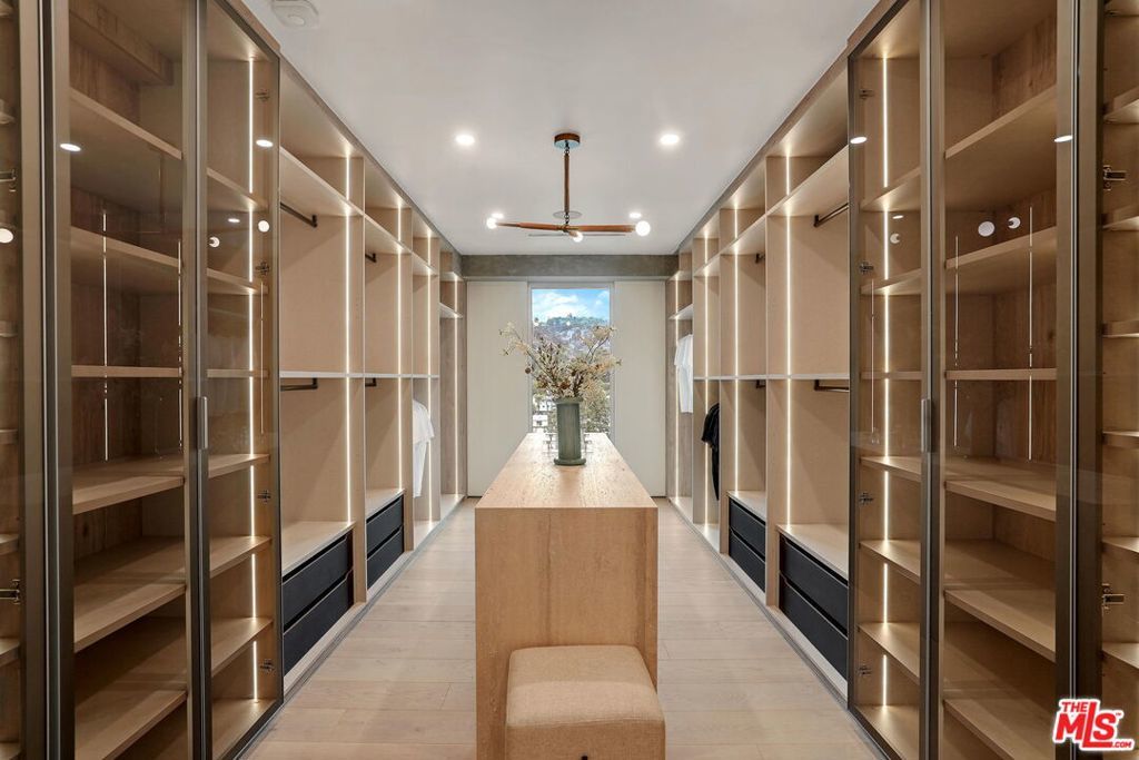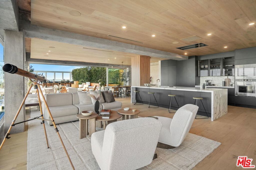 The most unique and exquisitely finished penthouse in all of Los Angeles, showcasing jetliner 360-degree views from the Hollywood sign to downtown and the ocean, as well as 2,885 sq. ft. of private outdoor deck space. Spanning half of the entire top floor in Hollywood's most exclusive full-service building with a newly remodeled lobby (w/valet, doorman, and 24-hour security), Penthouse East has undergone a painstaking 2-year remodel in which every inch has been meticulously curated to perfection, creating the most sophisticated and mesmerizing residence in the entire city. Enter into 3,580 sq. ft. of interior living space, including 3 bedrooms, an office, 4 bathrooms, and an open living/dining room with a built-in bar, all surrounded by floor-to-ceiling glass windows and sliding doors. With the most luxuriously appointed finishes, from wide European oak flooring, to exposed concrete beams, to giant slabs of honed Calacatta Vagli marble and Travertine limestone throughout. A chef's kitchen is fitted with Gaggenau appliances and custom European cabinetry. The luxurious owner's suite boasts a separate sitting area, fireplace, and ensuite bathroom with a free-standing soaking tub, spa-like shower, custom-cut Travertine sink, and an oversized showroom-style walk-in closet with automatic LED lights and privacy glass. The Penthouse offers complete smart home technology and two movie projector systems that drop from the ceiling, in both the living room and primary bedroom, with built-in surround sound. The level of craftsmanship and quality, with a combination of a well-thought-out floor plan and breathtaking amenities, is truly astonishing. 4 dedicated parking spaces are included with the PH. Building amenities include a 24-hour valet, doorman, security, swimming pool, recreation room, fitness center, dog park, and more. An unrivaled offering compared to other luxury condos when considering the design and quality of finishes, size/scale, unobstructed views from the Griffith Observatory to the Pacific Ocean, and outdoor deck space that will not only speak to you but impact you in the most profound way possible. Penthouse West (3,820 sq. ft. of interior living space with 1,685 sq. ft. exterior deck) is also available to purchase, completing the entire top floor of the building.