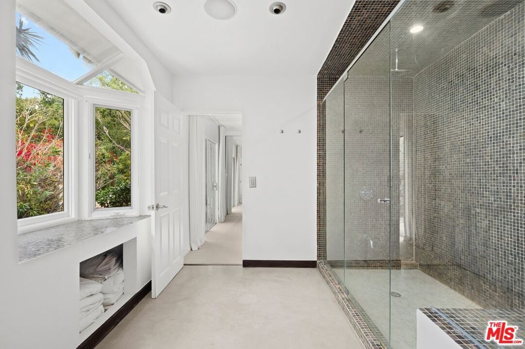 Nestled on 4 consecutive lots totaling over a half an acre in Lower Beverly Crest, this secluded Beverly Hills hideaway is on its own private promontory at the end of a quiet cul-de-sac and offers unmatched privacy with no direct neighbors, no thru traffic and sweeping views of Downtown LA. The single-level home features a warm step-down living room, open kitchen, and elegant dining area. French doors throughout create seamless indoor-outdoor living, opening to wraparound gardens, a resort-style pool, fire pit, and multiple entertaining areas. This rare retreat combines serenity and prestige while being just minutes from the Beverly Hills Hotel, Rodeo Drive, and world-class dining and shopping. Within the highly sought Warner School District and close to Harvard-Westlake, it offers both exclusivity and potential in one of Beverly Hills' most desirable enclaves.