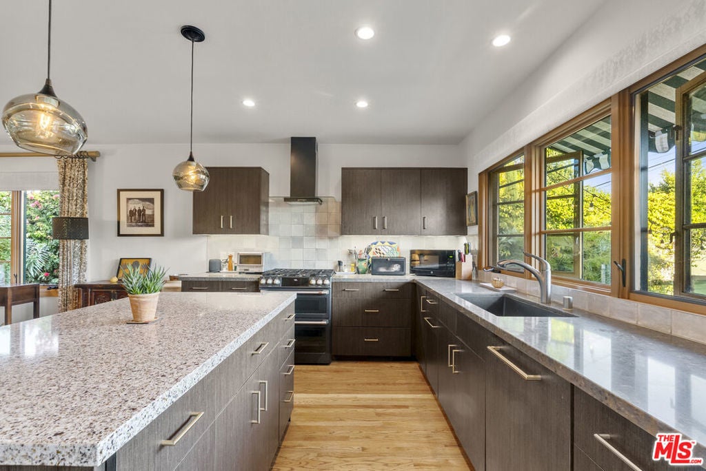 This enchanting, fully remodeled two-bedroom residence seamlessly blends modern sophistication with old-world romance, creating a home that feels both timeless and effortlessly stylish. Step into an inviting open-concept living space with a sleek, modern tiled fireplace that sets a warm and elegant tone. The stunning chef's kitchen flows beautifully into the main living area, designed for both everyday living and preparing exceptional gourmet meals. Both bedrooms are generously sized, with the serene primary suite overlooking the sparkling pool. Beyond the main house, a charming pool house opens to a private courtyard and a large pool of shimmering water. The result is a captivating indoor-outdoor setting, perfect for lingering evenings filled with wine, conversation, and the gentle California air. Surrounded by lush greenery, the property feels like a secluded boutique retreat - intimate, sophisticated, and effortlessly alluring. Just moments from the Sunset Strip, Santa Monica Blvd, Melrose Ave, and adjacent to Beverly Hills, this exceptional home places you within walking distance to world-class dining, shopping, and nightlife.