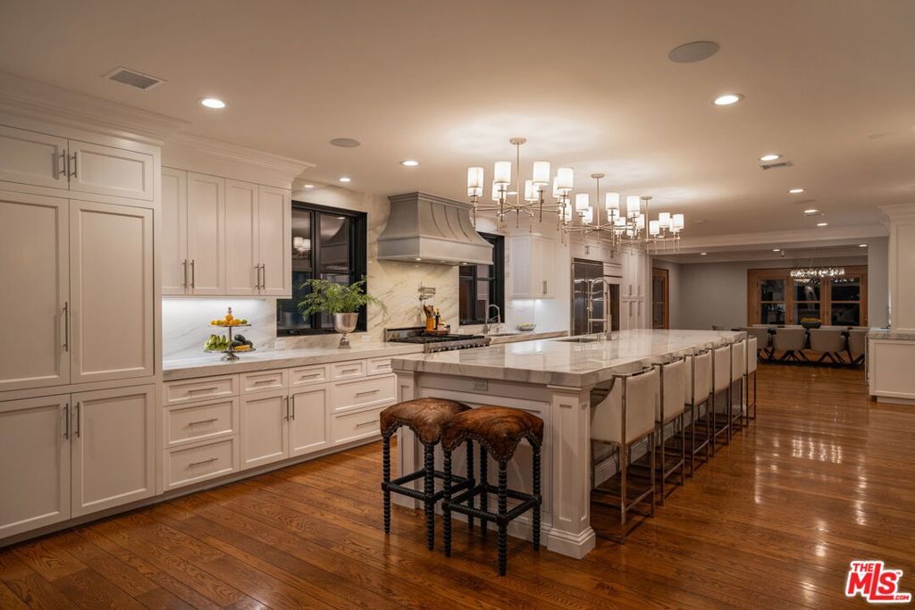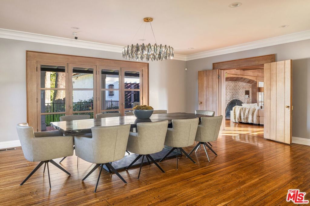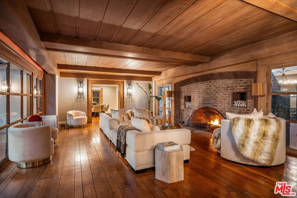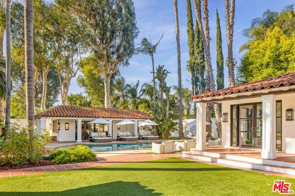 Set behind gates on just over an acre of flat, private grounds, this exquisitely remodeled 1923 Spanish hacienda offers rare scale, privacy, and a true compound lifestyle in the heart of Tarzana. Thoughtfully arranged across multiple structures, the estate includes a grand main residence and a separate guest house, creating a secluded retreat moments from everyday conveniences. The main residence features six bedrooms and eight bathrooms, blending timeless Spanish architecture with refined modern living. Original details remain, including three authentic wood-burning fireplaces, exposed wood beams, and rich materials, all carefully preserved and enhanced through a comprehensive remodel. Wide-plank hardwood floors, custom stonework, Calacatta stone finishes, and French doors throughout create a light-filled interior with seamless indoor-outdoor flow, ideal for both grand entertaining and intimate daily living. At the heart of the home is a chef's kitchen anchored by a stunning 16-foot Calacatta marble island, complemented by custom cabinetry and top-of-the-line professional appliances, opening effortlessly to multiple indoor-outdoor living and dining areas. Additional highlights include a fully integrated surround-sound system, a dedicated home theater room, and a comprehensive security system. The separate guest house offers an additional bedroom and bathroom with exceptional versatility, perfect for guests, a private office, gym, pool cabana, or game room, enhancing the property's true compound setting. Outdoor living is the soul of the estate, featuring expansive, flat grounds, a resort-style heated saltwater pool, mature landscaping, and multiple dining and entertaining areas. Ample parking includes a four-car garage and generous additional on-site parking. A rare opportunity just moments from El Caballero Country Club, dining, shopping, and top-rated schools, this gated Spanish estate delivers an exceptional blend of privacy, scale, and convenience.