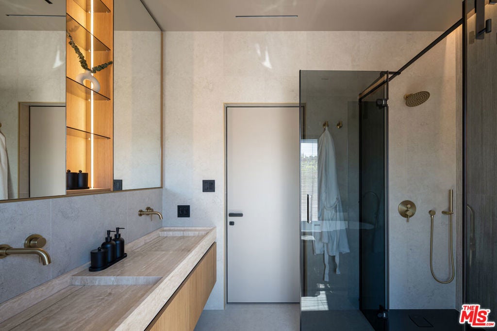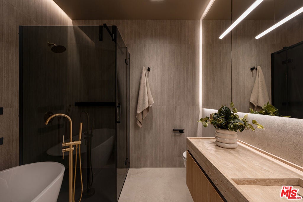 Fully reimagined and designer-curated, this exceptional Woodland Hills residence blends privacy, warmth, and high-end European finishes in a truly turnkey offering. Thoughtfully rebuilt with approximately 80% new framing, new load-bearing beams, enhanced foundation work, a new roof structure with skylights, and all-new Reynaers windows and doors from the Netherlands, the home offers the feel of near-new construction while maintaining a refined residential character.Inside, the home features Canadian select-grade natural oak flooring, custom Italian wall paneling by CLEAF, European cabinetry with integrated pull-outs, frameless flush doors with concealed hardware, and a layered architectural lighting scheme with fully dimmable LED illumination. The kitchen, bathrooms, and living spaces are finished with large-format Italian tile, custom travertine surfaces, and custom Italian shower enclosures and trays. Smart lighting controls and a built-in Sonos sound system add modern convenience throughout.Behind the walls, nearly every major system has been upgraded, including plumbing, sewer, electrical, HVAC, ductwork, ventilation, and pool equipment. The insulated garage includes its own AC unit, and the home benefits from enhanced thermal and acoustic insulation throughout.Outdoors, the property is designed for both beauty and privacy, with fully hedged grounds, new landscaping and hardscape, updated pool finishes, irrigation, landscape lighting, and outdoor living areas that extend the interior experience. Offered as a move-in-ready, design-forward home, this is a rare opportunity to own a thoughtfully executed residence with architectural precision, imported materials, and true turnkey livability.