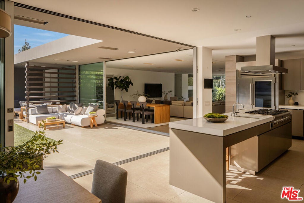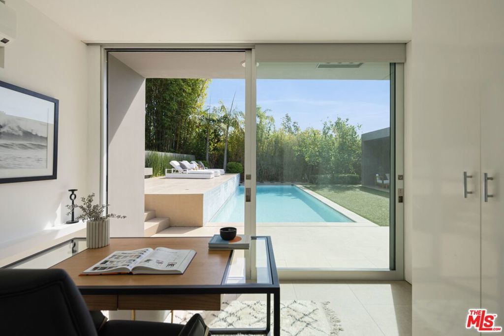 Beyond private gates and an extended motor court, this contemporary architectural by renowned architect Shubin & Donaldson, offers privacy, scale, and seamless indoor-outdoor living just moments from the best of Beverly Hills and Century City. Clean lines, rich wood detailing, and warm interiors are framed by walls of glass that draw natural light deep into the home. The open floorplan is both expansive and intentional, allowing each space to transition naturally into the next. A generously scaled formal living room is anchored by a sunken sitting lounge, while the adjacent dining room flows effortlessly into the kitchen and opens to the outdoors for easy entertaining. The chef-caliber kitchen is centered around an eat-in island and appointed with streamlined cabinetry, professional-grade appliances, and a breakfast nook overlooking the grounds. Just beyond, an office with a full bath offers flexibility as a private studio, guest retreat, or executive workspace. The primary suite opens to a private outdoor lounge deck and features a large walk-in closet with extensive built-ins, along with a marble-clad ensuite bath complete with a dual-sink vanity, soaking tub, and separate shower. Additional guest suites are well-proportioned and thoughtfully positioned for comfort.The backyard is designed for year-round enjoyment, featuring a flat grassy lawn bordered by mature landscaping, multiple lounge areas positioned for sun and shade, a fire pit for evening gatherings, and a dedicated barbecue area. An elevated sundeck overlooks the pool, creating a layered outdoor setting suited for both entertaining and quiet retreat. Combining architectural clarity with a highly functional layout, this residence offers comfort and convenience in one of the city's most desirable neighborhoods, moments from the premier dining, shopping, and cultural destinations of Beverly Hills and Century City.