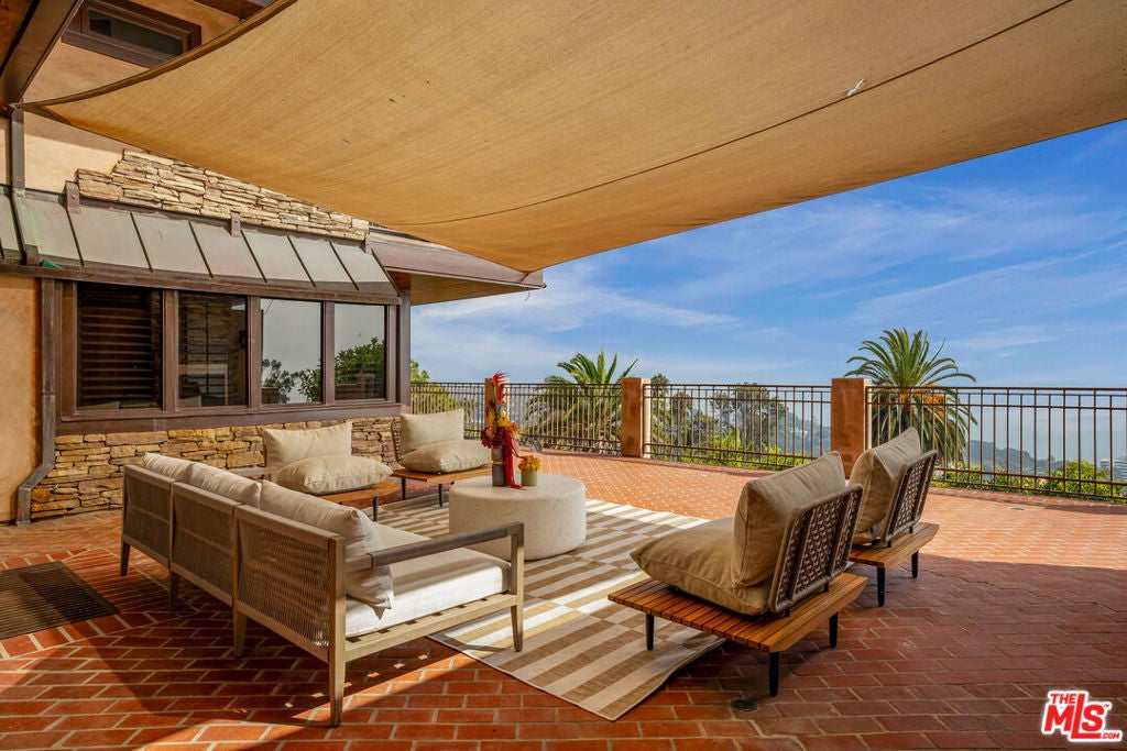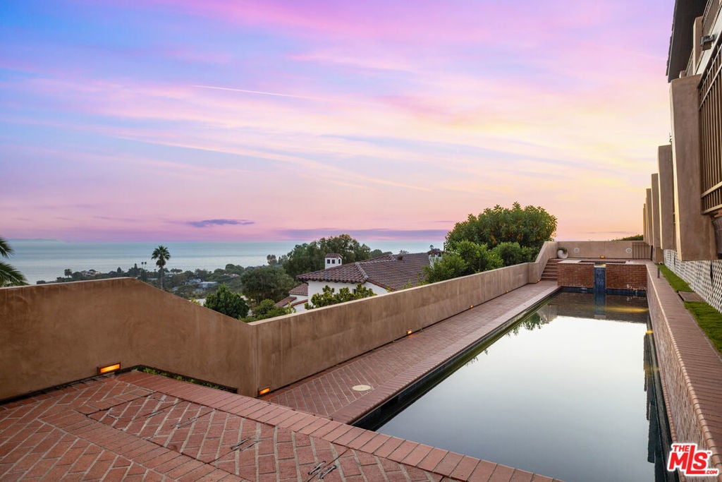 Breathtaking Pacific Palisades estate available for lease, offering sweeping panoramic ocean views from DTLA to Catalina Island, the Queen's Necklace, and the beaches of Malibu. Designed by renowned architect Ray Kappe, this 6-bedroom, 8.5-bath residence sits above the tranquil grounds of Lake Shrine and provides one of the most stunning vantage points in the Palisades.Remodeled in the early 2000s, the home features floor-to-ceiling windows that frame the coastline and fill the interiors with natural light, creating a serene, private environment ideal for both everyday living and sophisticated entertaining. The main level includes a fully equipped cook's kitchen with an open flow into the formal dining area, multiple family rooms, a media/screening room, an exercise studio with an en-suite bath, maid's quarters, and a custom wine cellar with a tasting area. Outdoor living is exceptional, with expansive view decks, a lap pool and spa, and a peaceful setting for sunset gatherings. Two luxurious primary suites showcase dramatic ocean views, while the additional bedroom suites all include private bathrooms. The property is enhanced with an Enphase Solar Energy system, a separate 3-car covered garage, and a 50' x 75' lower parking area accommodating up to seven cars plus an RV. A charming guest house with a kitchenette and bathroom sits below the pool perfect for visitors, staff, or a private retreat. Moments from hiking and biking trails, beaches, and the best of Pacific Palisades, this exceptional architectural home offers a rare opportunity to experience serene, elegant coastal living now available for lease.