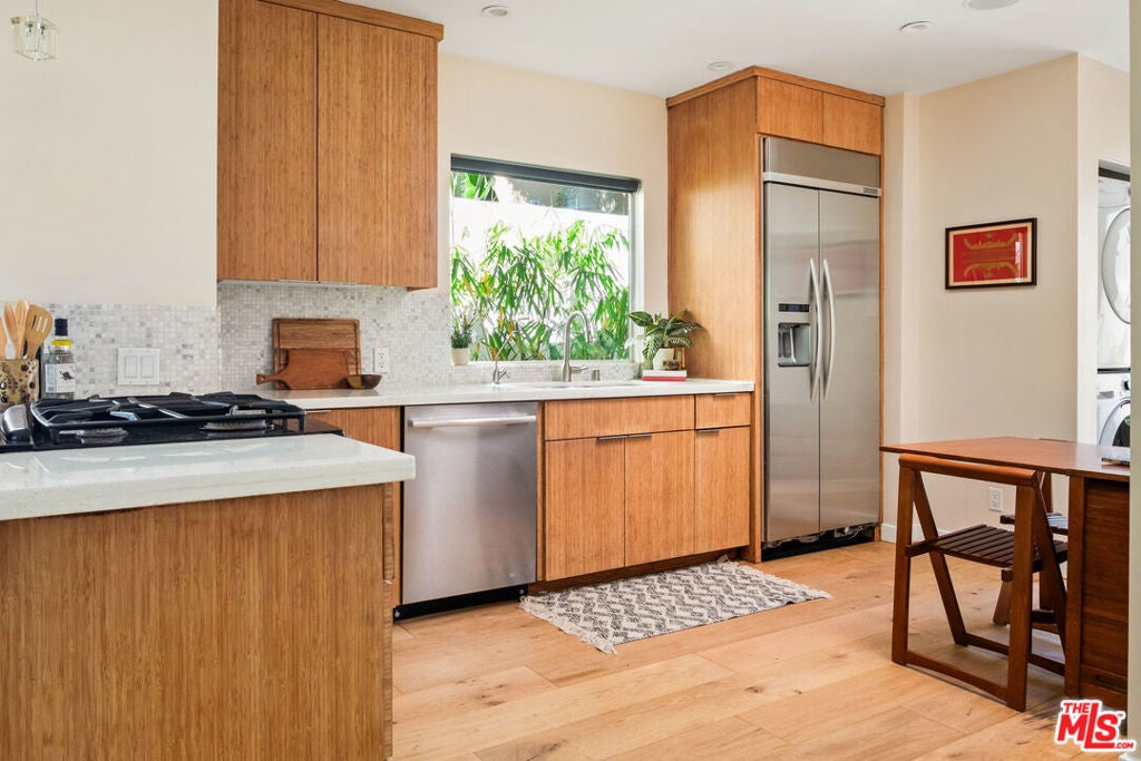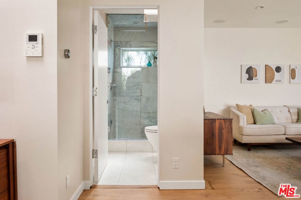 A rare jewel box tucked into the heart of West Hollywood, moments from the best dining, shopping, and nightlife the city has to offer. Behind its charming Spanish facade lies a beautifully refreshed residence balancing timeless character with modern sophistication. Bathed in natural light, this inviting home offers the ideal pied-a-terre or full-time retreat in one of LA's most vibrant neighborhoods.The one-bedroom, two-bath home includes a detached bonus space currently used as a bedroom, perfect as a guest suite, creative studio, or home office. Upgrades throughout include Milgard commercial-grade aluminum windows and doors, a steam shower, Nuvia water filtration system, custom window treatments, bamboo kitchen cabinetry, quartz countertops, stainless steel appliances, and elegant white Carrara marble bathrooms.Additional highlights include central A/C and heat, interior and exterior surround sound speakers, and a stackable washer and dryer. A private outdoor space with a BBQ area creates the perfect setting for effortless indoor-outdoor living while enjoying the best of the West Hollywood lifestyle. An exceptional opportunity to own a private retreat in one of West Hollywood's most sought-after neighborhoods.