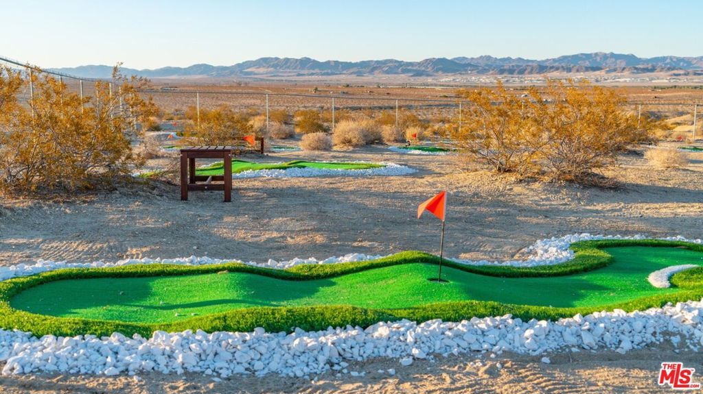 Discover your dream desert oasis in this exquisite residence nestled near Joshua Tree National Park. Located in the coveted Chocolate Drop area of Twentynine Palms, this meticulously renovated property offers an exceptional blend of luxury, craftsmanship, and natural desert beauty. Originally custom-built by skilled local builders with strong ties to the nearby military base, the Marine Corps Air Ground Combat Center and Marine Air Ground Task Force Training Command, the home reflects pride of workmanship, quality materials, and lasting construction rarely found in mass-produced homes. With solid construction, high ceilings, a strong foundation, and well-engineered electrical and HVAC systems, the property offers the kind of "good bones" that stand the test of time. Over the years, it has been tastefully updated and carefully maintained by trusted local professionals, preserving both its integrity and charm.Inside, the home features a gourmet kitchen, spacious primary suite, game room, and dedicated home office, all complemented by vaulted ceilings and new hardwood floors throughout, creating a bright and welcoming interior. Step outside into your private desert paradise, where thoughtful outdoor amenities elevate the experience: a 12-person swim spa, 9-hole mini golf course, tranquil yoga space, and expansive back deck with panoramic desert viewsperfect for entertaining or relaxing beneath the stars.With its prime location just 15 minutes from the entrance to Joshua Tree National Park, this turnkey property offers incredible versatility as a primary residence, vacation getaway, or high-end rental investment.