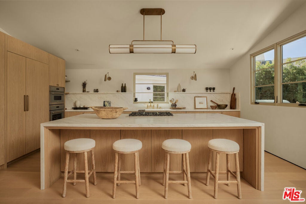 Tucked at the end of a quiet cul-de-sac atop Mar Vista Hill, this rare single-story residence, completely reimagined by AIH Development through a comprehensive renovation and thoughtful addition, offers a refined expression of contemporary California living on an expansive 8,500+ square foot flat lot. Inside, light-filled spaces unfold with quiet elegance, anchored by a generous great room and dining area with skylight above. A sophisticated palette of Calacatta marble, handcrafted tile, and curated finishes lends warmth, texture, and timeless appeal, while the floor plan balances openness with privacy. Four en-suite bedrooms including a primary suite with its own private garden, provide tranquil retreats, each designed with an emphasis on comfort, proportion, and understated luxury. Beyond the interiors, a series of private outdoor spaces extend the living experience. Hand-laid paver stone patios and pathways weave through the grounds, creating intimate moments for relaxation and gathering while embracing the home's setting. The detached two car garage is fully insulated with a heating and cooling system complete with new wall to wall rubber gym floor. A separate office with a private entrance offers a discreet and functional work space.Warm, refined, and thoughtfully composed, the home captures the relaxed sophistication that defines Westside living.
