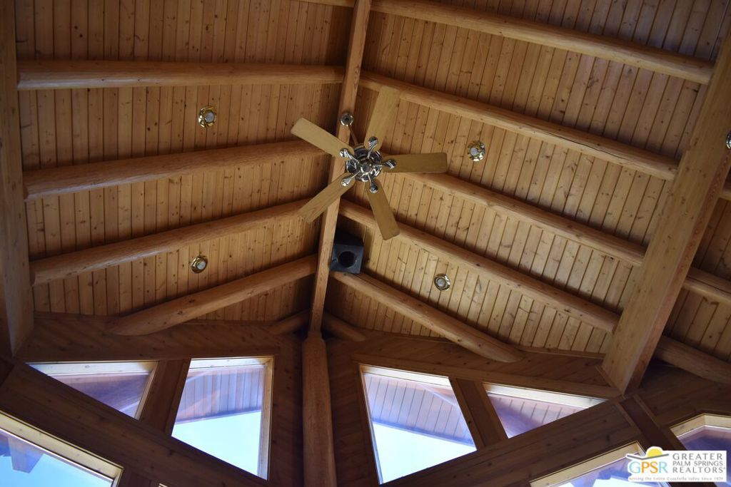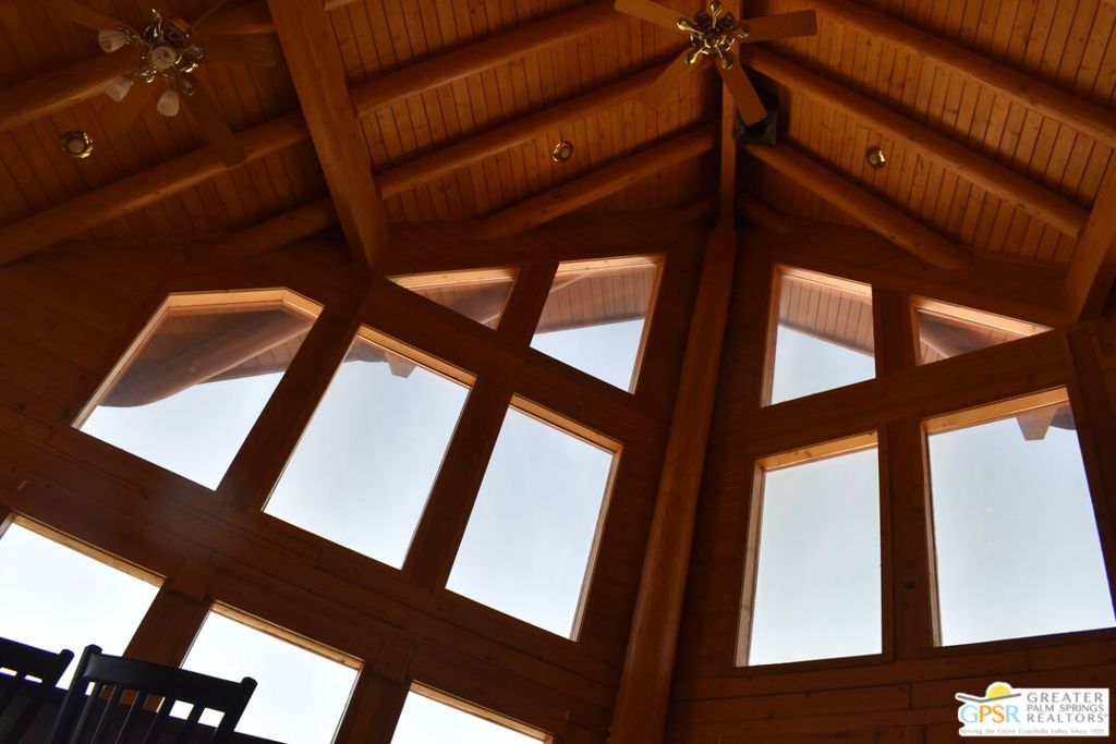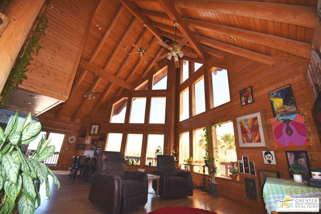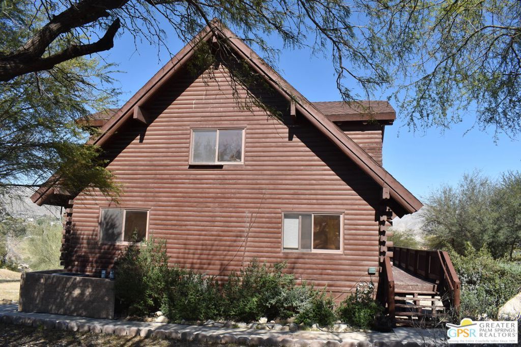 Unique Log Aframe majestically overlooking Sky Valley. Log interior and exterior with soaring 30ft cathedral ceiling. Picturesque views from all windows. Wrap around deck perfect for enjoying sunrises and views down valley. Large kitchen with long counter. Basement has 3 rooms which could be additional bedrooms or maids quarters. In addition to the 2 car garage, there are 2 LARGE architectural wood beam carports and a 30x30 metal barn. Enter the property through automatic gate then down a 100ft cement driveway . Several chainlink animal pens that have been used for chicken coups,pigs,goats and imus. 2 additional sheds. Horse stalls lead into fenced 2 acres. Entire property is surrounded by Tall High Security Barbed Wire Chain Link Fence. Many, Many trees on property. Tankless Hot Water Heater . 2 Dual Zone High Efficiency AC Systems recently installed. Perfect home for large growing family.