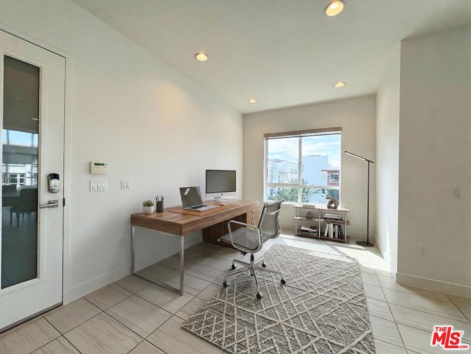 Rare single-level penthouse occupying the entire top floor of a boutique 3-unit building in Playa Vista's coveted Skylar community, featuring a private elevator entry and private 2-car garage. This bright west-facing residence features soaring ceilings, contemporary finishes, and an open-concept living, dining, and kitchen layout that flows seamlessly to a covered patio overlooking a beautiful grassy park. The sleek kitchen features Bosch appliances and modern cabinetry, ideal for both everyday living and entertaining. Enjoy the privacy of a single-level home with no neighbors above or beside you, with each residence occupying its own floor. Residents have access to Playa Vista's incredible resort-style amenities, including multiple pools (lap and recreation), state-of-the-art fitness centers, tennis and pickleball courts, basketball courts, dog parks, playgrounds, and scenic walking trails. Located walking distance from Playa Vista's shops, restaurants, cafes, and entertainment, this home offers an exceptional combination of luxury, privacy, and convenience.