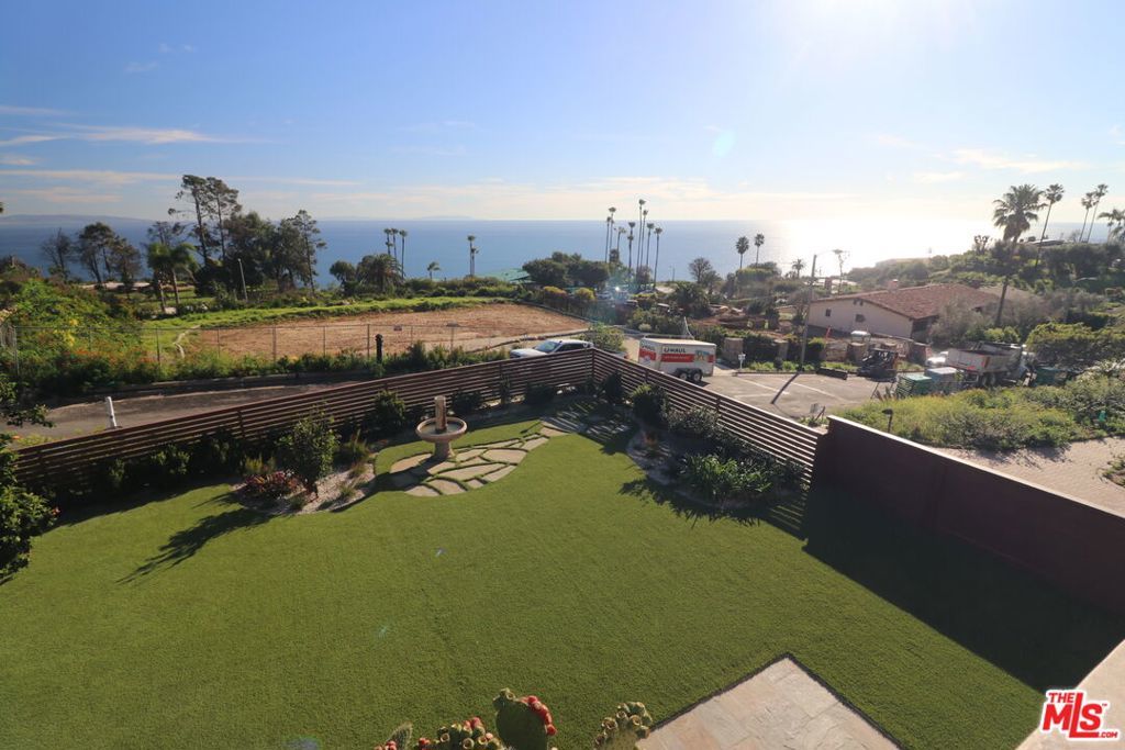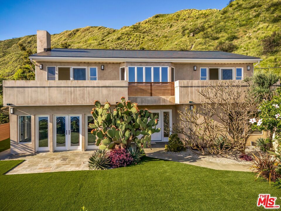 Ultimate Sustainable Malibu Luxury, Remodeled, Sweeping Ocean View Estate with a Tesla Solar Roof. Experience the pinnacle of coastal luxury in this beautifully remodeled 2-story masterpiece located just 3 miles from Sunset and PCH and minutes from Santa Monica in Malibu's highly coveted Big Rock neighborhood. Perched above the Pacific with panoramic, sweeping views of the ocean, city lights, and Catalina, this 4-bedroom, 3.5-bath home with an office, offers unparalleled privacy and ocean views from the entire front of the house. Sustainable living meets sophisticated design, highlighted by a $200,000, 13.4 KW Tesla Solar Glass Roof, two Tesla Powerwalls, and a dedicated EV charging station. Inside, impeccable craftsmanship abounds with rich wood floors, a dramatic, ocean view, mission-style living room, a cozy library, formal dining room and a large eat-in granite kitchen. Entertain in style with a picture-perfect media room and a large bonus room. The upper level features a large master suite with a private balcony, luxurious custom bath, walk-in closet with built-ins, a large office with built-ins --- all designed to maximize the breathtaking sunrise to sunset ocean views. The exterior is a botanical masterpiece, featuring specimen-rich manicured gardens, private and fully fenced front and back yards, stone patios, ocean view blue-tiled spa, beautiful waterfall and a built-in BBQ. Additional features include ocean views from the entire front of the house, smooth coat exterior finish, custom doors/windows, a large carport with enclosed storage, an outdoor shower and so much more . Why wait for years of permitting and construction? This turnkey knockout is ready for its next chapter.