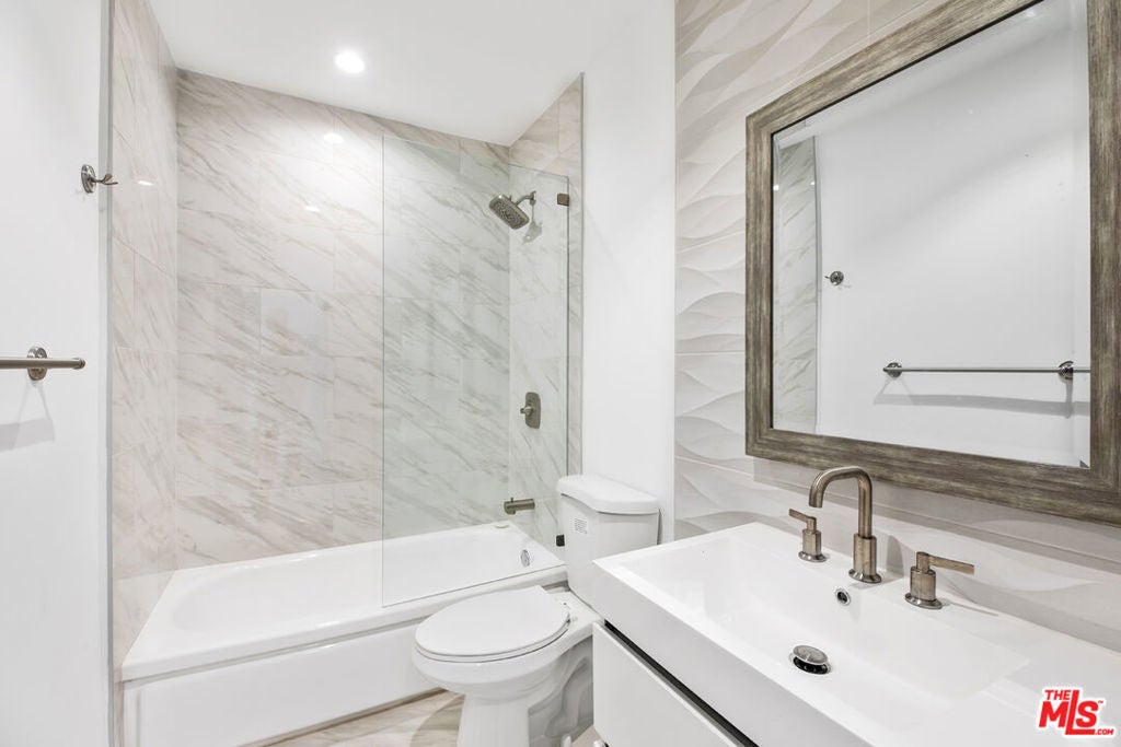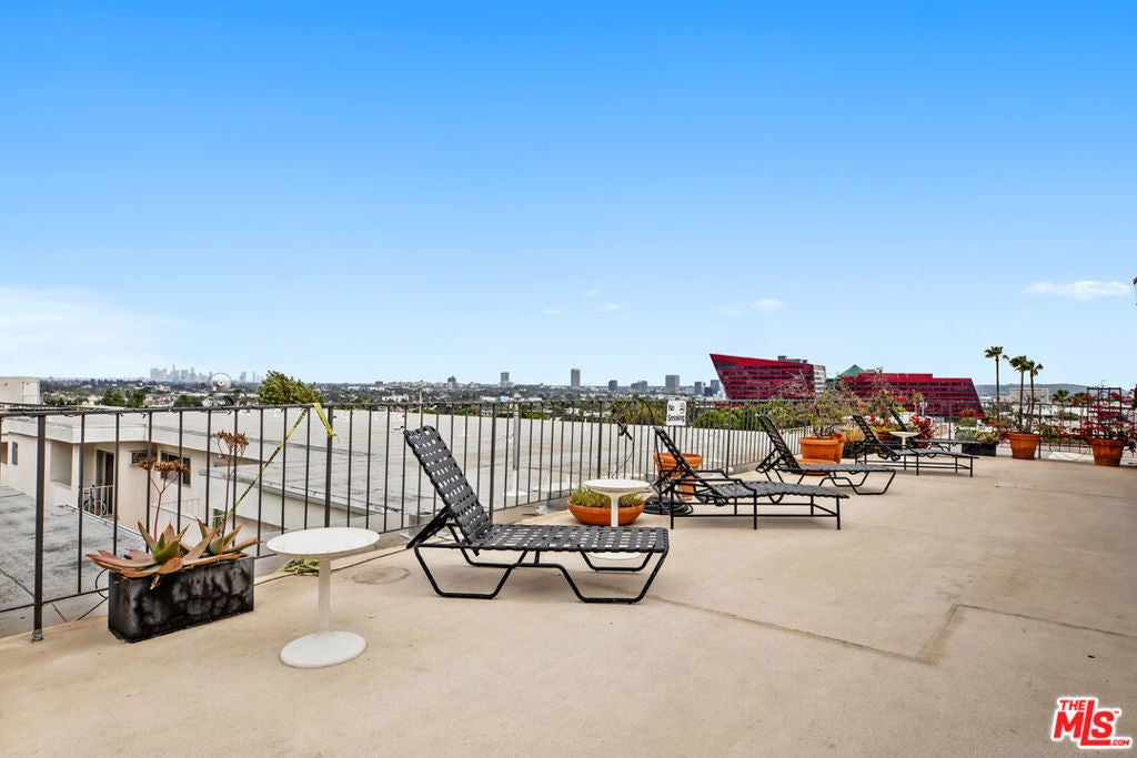 Beautifully bright and quiet corner unit with only one shared wall, ideally situated between Sunset Plaza and Santa Monica Blvd in the heart of West Hollywood. This updated and freshly painted home features spacious rooms with light wood laminate flooring, recessed lighting, and abundant storage throughout. The kitchen is equipped with stainless steel appliances including refrigerator, dishwasher, range, and microwave, plus elegant stone countertops and crisp white cabinetry. A dining area connects the kitchen to a private balcony overlooking the peaceful courtyard, perfect for morning coffee or evening relaxation. The generously sized primary suite enjoys a large window that fills the room with natural light, excellent closet space, and a beautiful bathroom complete with new cabinetry and soaking tub with shower. Building amenities include a sunny pool with lounge seating, exercise room with up-to-date equipment, a spectacular rooftop deck offering 180-degree city views, ideal for relaxing or entertaining guests. Additional highlights include one conveniently located parking space and storage unit near the entrance, guest parking, and a community laundry area. Located moments from world-class dining, shopping, and entertainment, with easy access to The Grove, Beverly Center, and Cedars-Sinai. Experience the best of West Hollywood living.