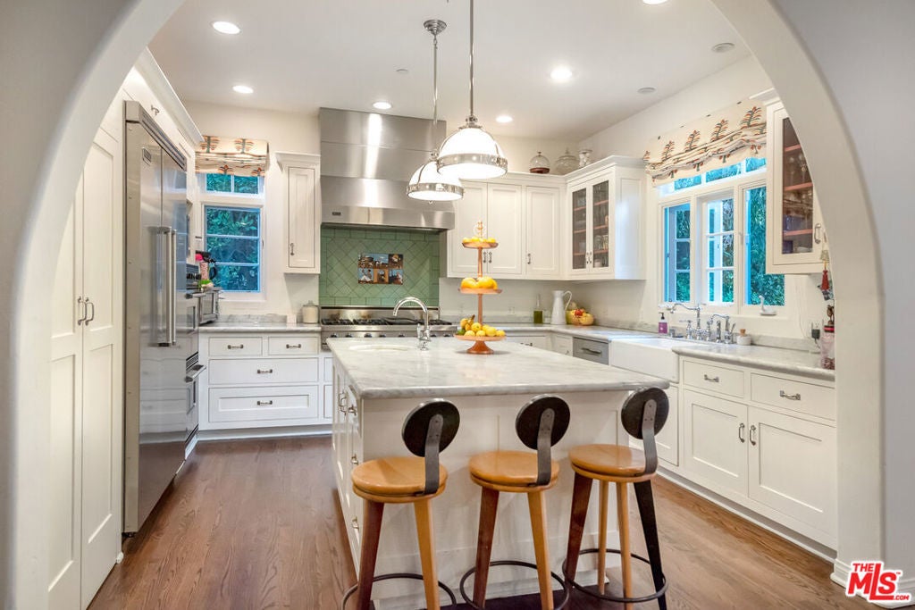 A beautiful 1929 Spanish retreat situated in the idyllic North of Montana neighborhood. The home is comprised of 5 bedrooms + 5.5 bathrooms with a detached guesthouse. Well equipped with everything you need for a comfortable stay. Custom finishes throughout the home - a gourmet kitchen, hardwood floors, two fireplaces and Waterworks fixtures. Enjoy your summer days in the lush and private backyard with a swimming pool, fire pit, and BBQ. A detached guesthouse with a half bath to host or to use as an office. Within close proximity to the beach you can also take pleasure in all Montana Avenue has to offer. Available August 1st.