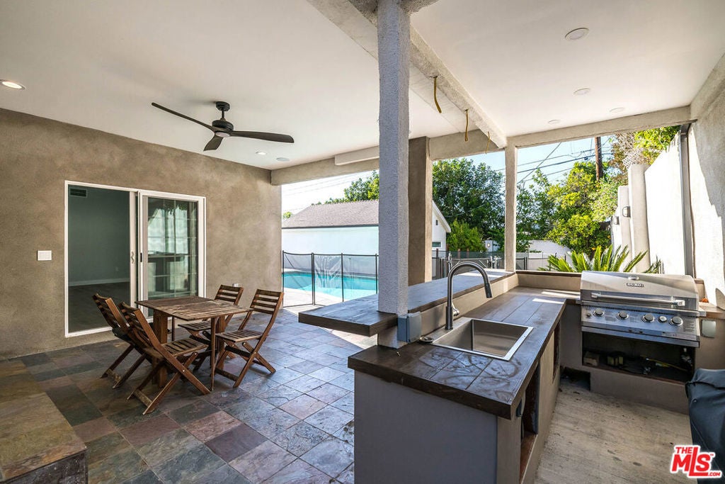 Remodeled home in the desirable Burbank Hills offering over 2,800 sq ft with 3 bedrooms and 3.5 bathrooms, each bedroom featuring its own en-suite bath. Spacious layout includes a living room, separate family/TV room, and bonus space. The updated kitchen features quartz countertops and stainless steel appliances. The primary suite offers a two-way electric fireplace shared with the spa-style bath, dual vanity, large walk-in shower, spa tub, and a walk-in closet with built-ins, plus a private balcony with hot tub. Enjoy integrated ceiling speakers in the TV room, patio, and balcony, plus two Sonos speakers in the dining room. Outdoor spaces include an in-ground heated pool with lighting, covered patio with built-in BBQ, and grassy front and back yards. Additional features include Lutron smart lighting and two-car garage. Conveniently located near John Muir Middle School and Burbank High. Rent includes high-speed fiber optic internet, gardener, pool service, and gas (capped at $200/month).