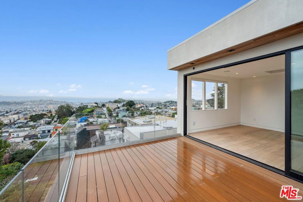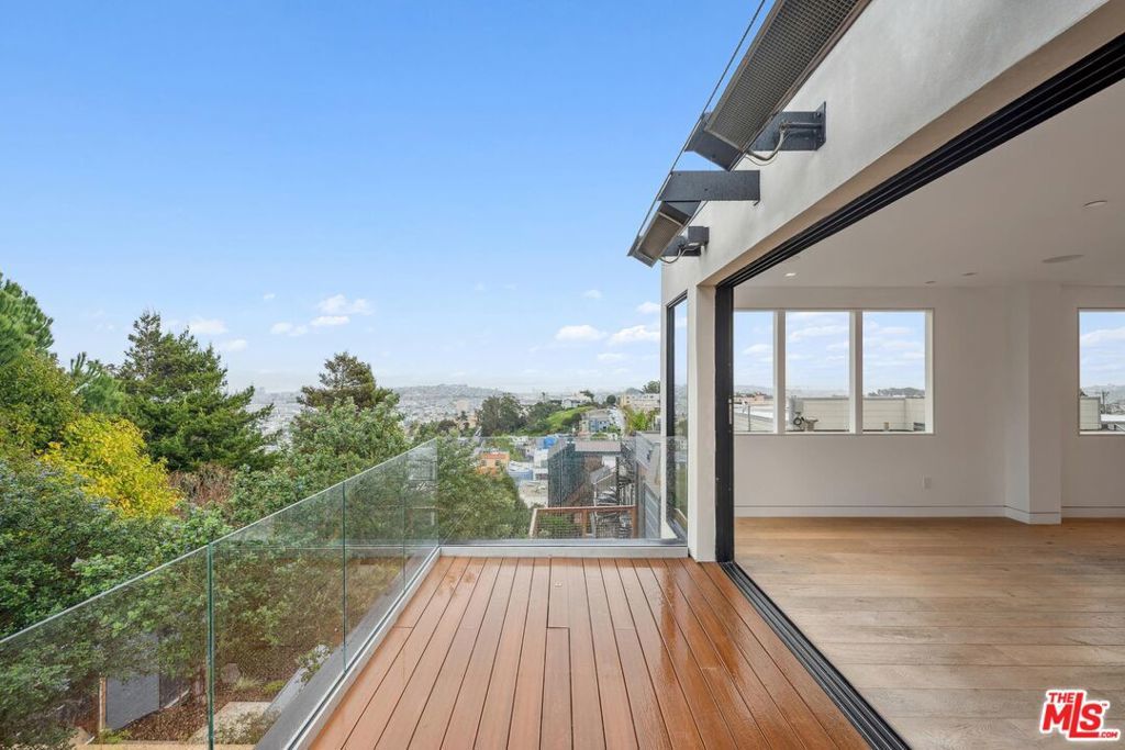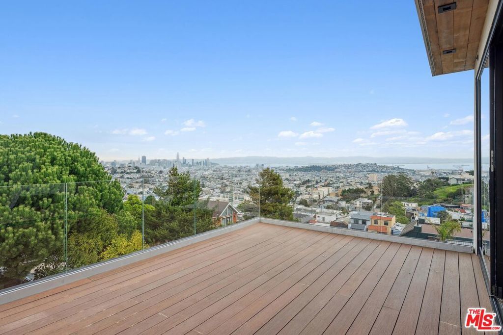 Perched on a prime Noe Valley block, this exceptional residence offers approximately 4,402 sq ft of thoughtfully designed living space and showcases sweeping panoramic views of the San Francisco skyline and bay from multiple levels of the home. Rare in both scale and design, the property features five spacious bedrooms, each with its own ensuite bath, creating a perfect balance of comfort, privacy, and functionality. The main level is designed for both elegant entertaining and everyday living. A dramatic living room with floor-to-ceiling windows opens to a private deck and frames breathtaking city views, seamlessly blending indoor and outdoor living. The adjoining formal dining room flows into the well-appointed kitchen, complete with a large island, wine cooler, and abundant storage. A separate bonus room on this level provides a peaceful home office or reading retreat with tranquil tree-lined outlooks. Upstairs, the primary suite offers a serene sanctuary with generous proportions, a spa-like bath, and spectacular outlooks across the city. Additional ensuite bedrooms on this level provide comfortable accommodations for family or guests while enjoying the home's remarkable vantage point over San Francisco. The lower level introduces a spacious and versatile family room featuring a wet bar and an additional bedroom suite, ideal for guests or extended living. A separate bonus media room offers exceptional flexibility and can serve as a theatre room, entertainment lounge, fitness studio, or private gym. Multiple decks and terraces throughout the home provide inviting outdoor spaces to relax, dine, and take in the dramatic skyline views that transform beautifully from day to night. Located just moments from the vibrant shops, cafes, and restaurants of 24th Street in Noe Valley, this remarkable home offers the perfect balance of neighborhood charm, urban convenience, and elevated city living.
