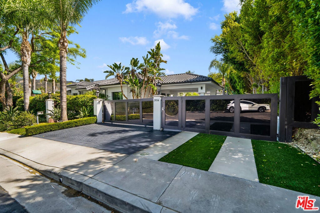 Mulholland Park Estates | Tarzana Luxury Single-Story Estate with Panoramic Canyon Views. Privately positioned behind the prestigious double gates of Mulholland Park Estates in Tarzana, this fully remodeled single-story estate offers a rare blend of architectural presence, modern refinement, and resort-level living.One of only eight custom residences on coveted Ashurst Lane, this exceptional home captures sweeping panoramic canyon and mountain views while delivering the ease and elegance of single-level design a highly sought-after offering in the Tarzana luxury real estate market.Recently reimagined with a fresh, contemporary aesthetic, the home balances clean modern lines with timeless grandeur. Soaring ceilings, expansive entertaining spaces, and walls of glass frame the natural landscape beyond, creating seamless indoor-outdoor California living.The thoughtfully designed floor plan features 5 spacious bedrooms and 7 bathrooms, including a luxurious primary suite retreat with spa-inspired bath and serene views. The chef's kitchen anchors the home with custom cabinetry, premium appliances, and effortless flow into both formal and informal living areas.Outdoors, the property transforms into a private resort oasis. An expansive pool and spa overlook rolling canyon vistas, while multiple lounging and dining areas create the ultimate entertainer's setting ideal for sunset gatherings or quiet mornings surrounded by nature.Additional highlights include a formal living room, formal dining room, executive office, and multiple gathering spaces designed for both grand-scale entertaining and intimate everyday living.Located within one of Tarzana's most exclusive guard-gated communities, this rare single-story estate represents an opportunity to own a fully remodeled luxury residence in Mulholland Park Estates where privacy, security, and elevated design converge.