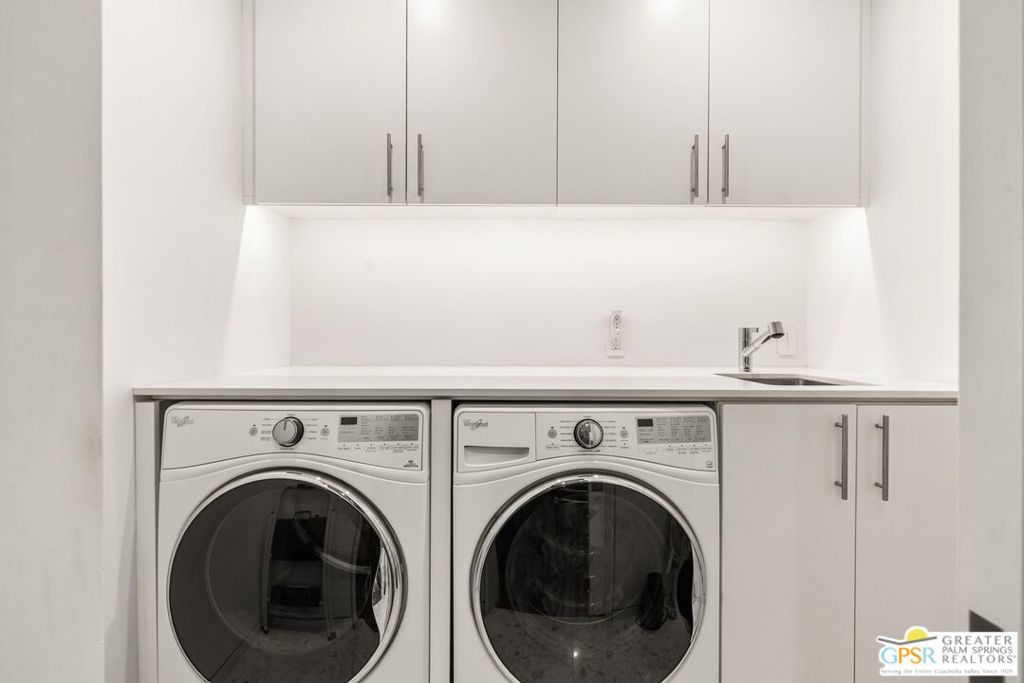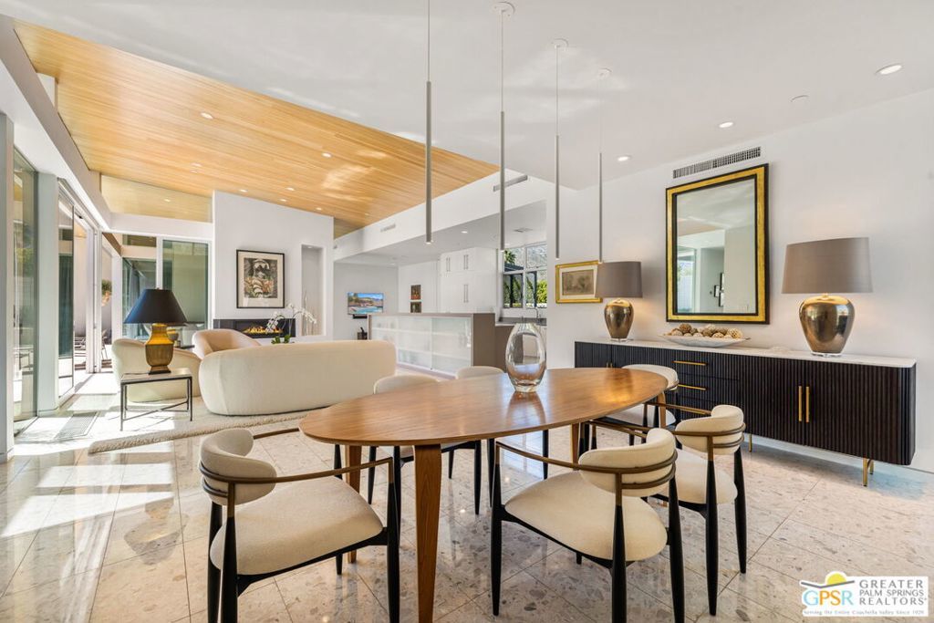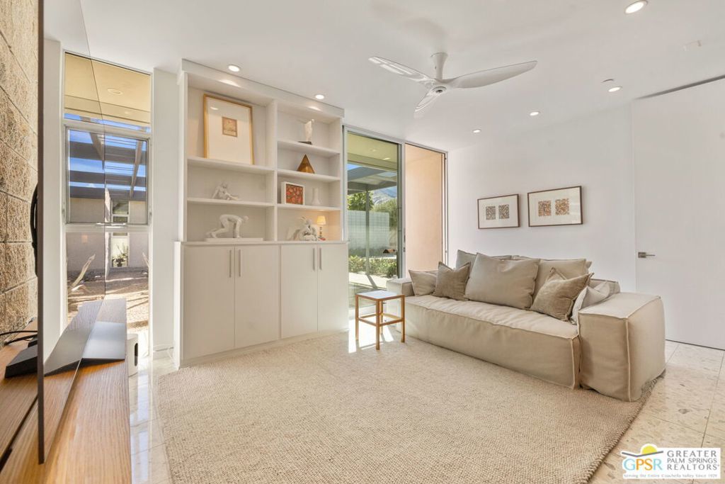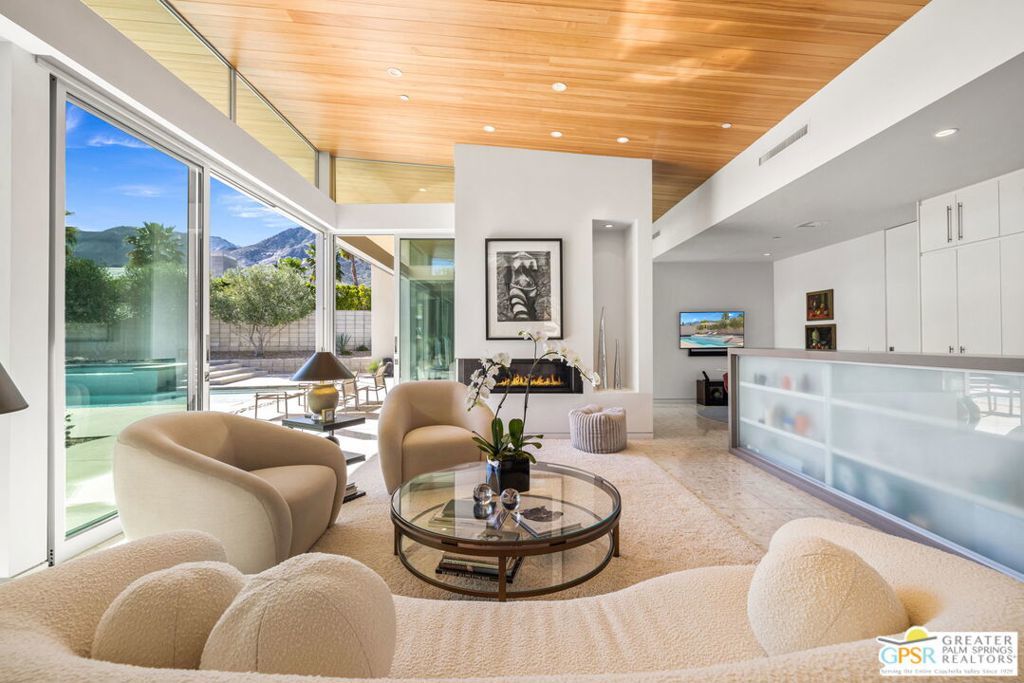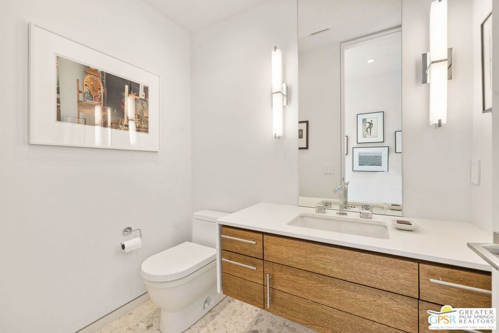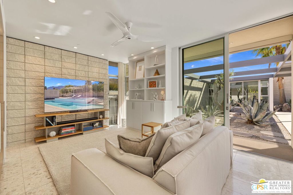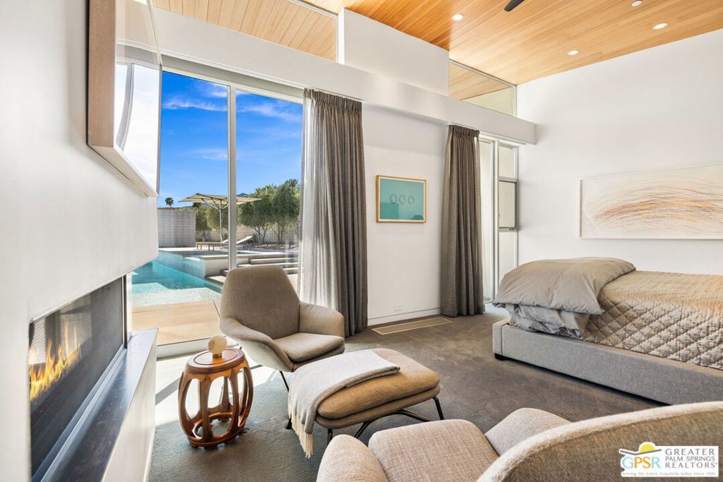 A bold expression of modern desert architecture, this striking estate designed by award-winning architect Lance O'Donnell stands as a masterwork of design, light, and landscape framed by sweeping 360-degree mountain views in every direction. Completed in 2017, the residence is a study in precision and intention, where materials, orientation, and environment converge to create a home that is as intelligent as it is beautiful. From the moment of arrival, the architecture makes a statement. A facade of split-face concrete block and Corten steel introduces a palette that is both grounded and sculptural, setting the tone for interiors that unfold with clarity and purpose. Terrazzo floors run seamlessly throughout, while expansive walls of glass dissolve the boundary between indoors and out, capturing the changing light of the desert from sunrise to sunset. The home is thoughtfully composed as a private compound, offering a 2-bedroom, 2.5-bath main residence alongside a detached 1 bedroom, 1 bath guest house - ideal for hosting while maintaining a sense of retreat. The floor plan is carefully calibrated to the path of the sun, maximizing natural light in winter and minimizing heat in summer, a subtle yet powerful expression of architectural intelligence. At the heart of the home, the kitchen is both refined and functional, featuring Sub-Zero and Wolf appliances, induction cooking, and a generous walk-in pantry - all opening to living and dining spaces that flow effortlessly to the courtyard beyond. Outdoor living becomes an immersive experience. A private interior courtyard anchors the home, centered around a saltwater pool and spa, fire feature, and multiple gathering areas framed by mature landscaping and uninterrupted mountain views. This is a setting designed not just for entertaining, but for living in rhythm with the desert. Equally impressive is the home's performance. Dual solar arrays, advanced water filtration, four-zone climate control, UV-protected glazing, motorized shading, and fully integrated smart systems deliver a level of efficiency and control that matches the home's architectural pedigree. Gated and private, with dual driveways, a two-car garage, and additional covered parking, the property offers both presence and practicality. Architectural, intentional, and quietly extraordinary. This is not simply a home, but a modern desert statement.