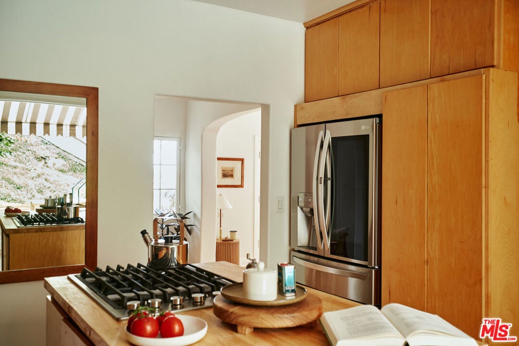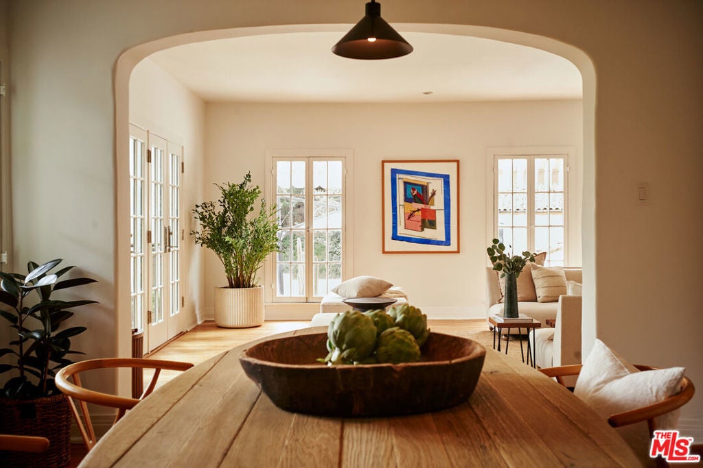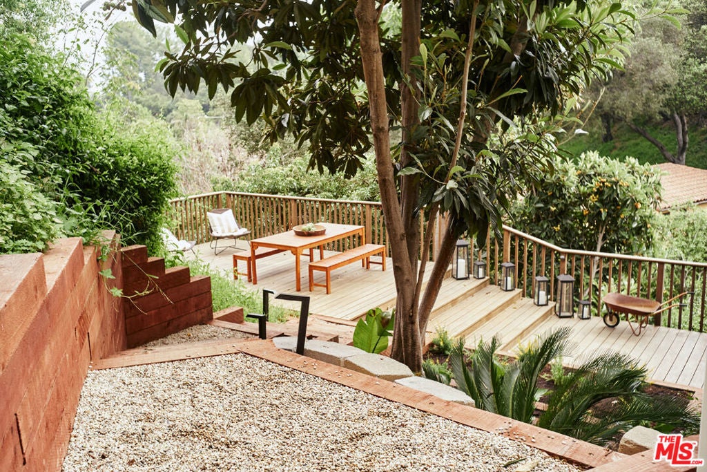 Reminiscent of a Mediterranean hillside retreat, this rare 1924 villa in South Pasadena pairs canyon vistas and terraced gardens with the relaxed elegance of California indoor-outdoor living. Set on an expansive 15,324 sq ft lot, the property is surrounded by lush greenery. Approaching the front door, you're greeted by a large clay-tiled patio with sweeping canyon views extending all the way to the San Gabriel Mountains. Upon entry, an airy living room-complete with a working fireplace-fills with natural light from a collection of original swinging windows. A pair of double French doors leads to a spacious wooden deck, perfect for entertaining. Continue into the full-size dining room and through a well-appointed kitchen, where another set of double French doors opens to a charming outdoor dining and BBQ garden. At the rear of the property is a large, pebbled, level yard ideal for a playground, garden retreat, or private fitness space. The indoor-outdoor flow of this terraced, multi-level home is truly unique, evoking the feeling of a Mediterranean hillside escape. Nearly every room enjoys direct outdoor access, and each window frames surrounding plant life. Upstairs are two bedrooms and a full bathroom. Just off the main bedroom is an additional room that would make an excellent office, nursery, or reading room. Below the main house, above the two-car garage, is a completely remodeled 280-square-foot third bedroom, in-law suite, or studio with a full bathroom and its own private entrance. Since acquiring the home in 2024, the current owners have thoughtfully restored the property to honor its rich original character and period details while integrating modern systems and amenities. Major improvements include updated plumbing, sewer, and electrical systems; foundation work; a new roof and HVAC; tankless water heater; refinished original oak floors; and high-quality kitchen appliances. All just moments away from the charming heart of South Pasadena, with its beloved cafes, bistros, farmers market, boutique shops, parks, library, and award-winning schools.