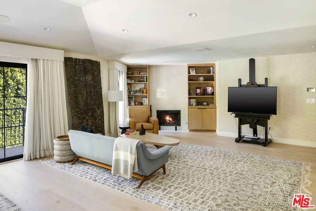 Welcome to 7651 Willow Glen, a rare half-acre estate set within the prestigious celebrity enclave of Willow Glen Estates. Fully reimagined in 2023, this former championship Tennis Court property offers exceptional versatility, with RTI-approved plans for a two-story 1,200sf ADU or the opportunity to restore the private tennis court on the expansive flat grass pad. Designed by Newfield Design Inc., the home showcases curated interiors featuring handcrafted tile, Taj Mahal quartzite surfaces, Cle Tile, and top-of-the-line WOLF & SUB ZERO appliances throughout. The main level unfolds with a formal living room anchored by a fireplace and a stunning great room that seamlessly blends family, dining, and chef-caliber kitchen spaces. Walls of sliding glass doors bathe the home in natural light and open to an inviting outdoor living area ideal for indoor-outdoor entertaining. Additional highlights on the main floor include a 7.1 surround sound projection home theater, a guest suite currently styled as a home office, and a sophisticated powder room. Upstairs, two generously sized guest bedrooms accompany a luxurious primary retreat complete with a private sitting area and fireplace, spa-inspired steam shower bath, and a custom oak walk-in closet. The resort-style grounds are equally impressive, featuring a large saltwater pool and spa, a Viking outdoor kitchen with firepit, and an expansive motor court accommodating parking for over 10 vehicles. A true extraordinary offering in one of the area's most coveted neighborhoods.
