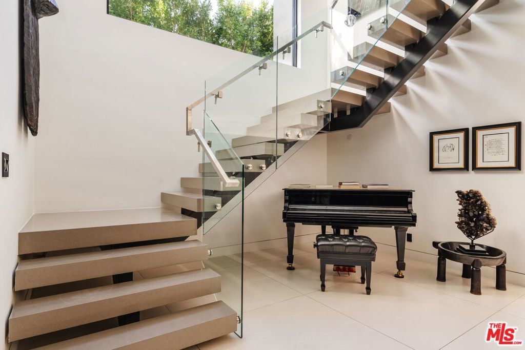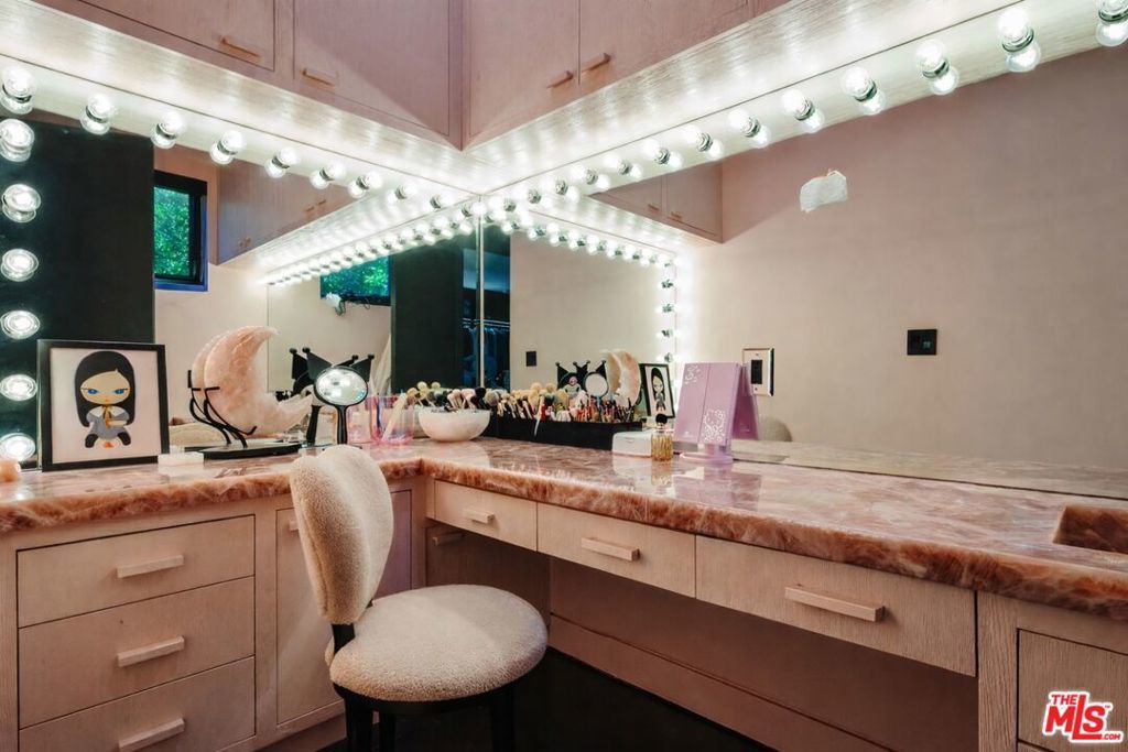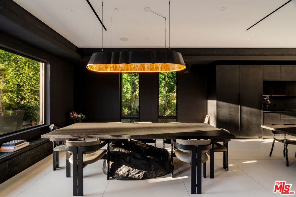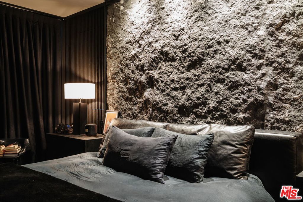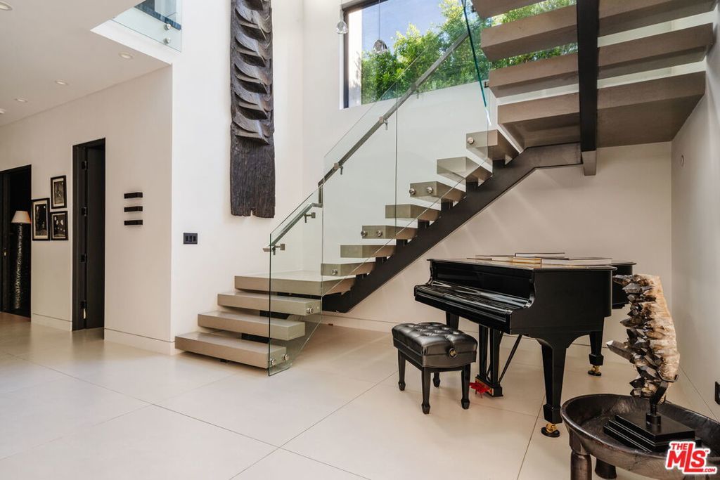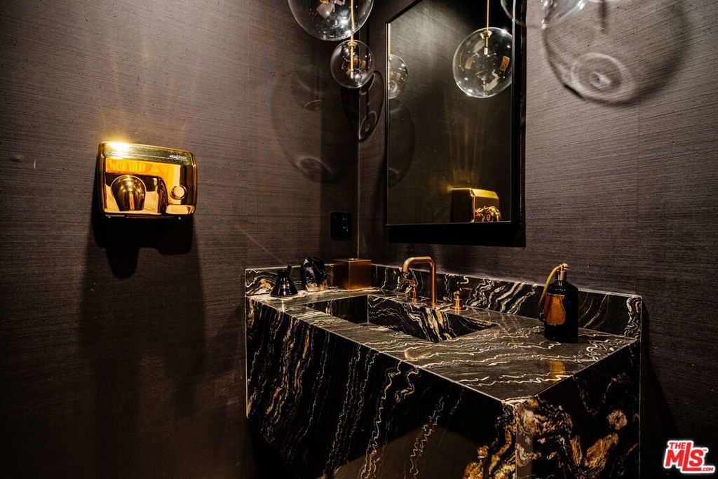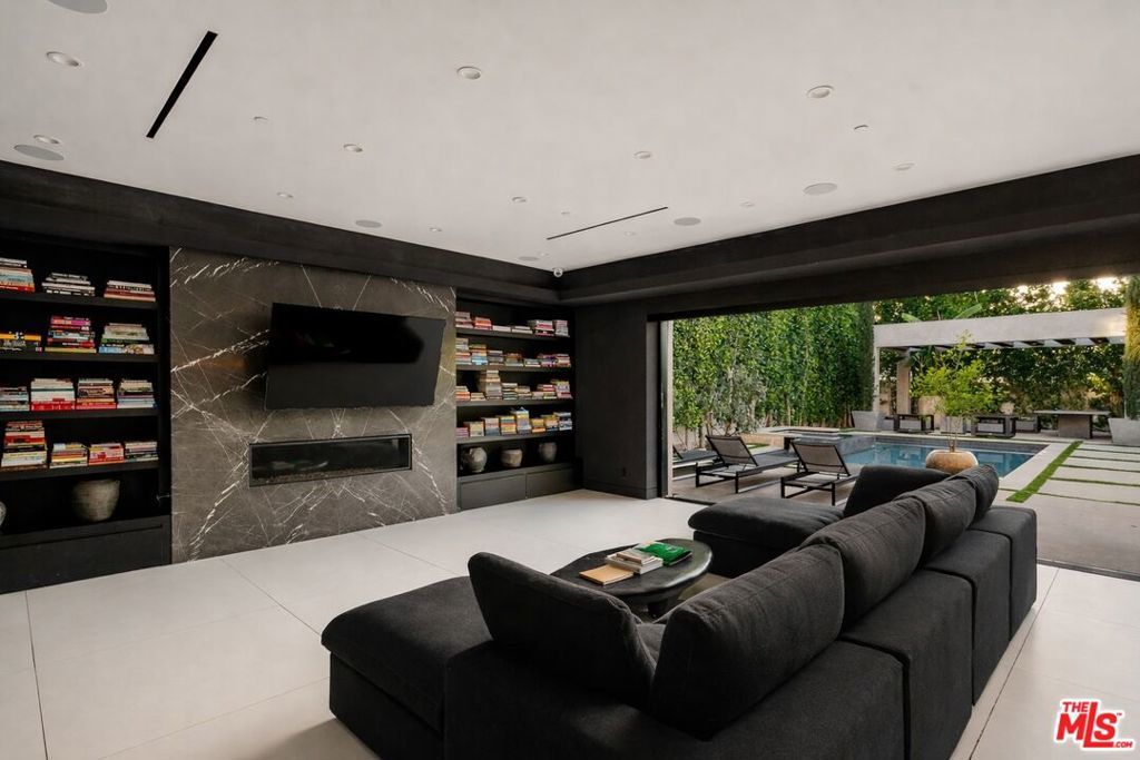 Welcome to 537 N Alta Vista Blvd, an exquisite modern masterpiece built in 2020, offering 4,312 sq ft of curated living space on a secure and gated 7,700 sq ft lot. Through the striking smoked-glass accent entry door, guests are welcomed into a generous open floor plan featuring soaring ceilings and designer finishes throughout. Just off the entry is a sophisticated office featuring custom built-in shelving crafted from Japanese flamed shou sugi ban wood, black Venato marble accents, custom lighting, and a recording studio. The sleek gourmet chef's kitchen is equipped with dual wall ovens, an espresso machine, a custom walk-in pantry, and an oversized center island with a prep sink and integrated breakfast table. The kitchen flows seamlessly into the dining area and spacious living room, complete with a stone fireplace, custom bookshelves, and floor-to-ceiling pocket doors that open to the ultimate entertainer's backyard. Upstairs, the luxurious primary suite features a dramatic custom wall of raw Pierre Blue stone imported from Belgium, bespoke Japanese flamed shou sugi ban woodwork, a projector screen, fireplace, private balcony, and two generous walk-in closetsone of which includes a custom pink rose onyx makeup room. The spa-like primary bath offers a custom dual vanity with Black Zimbabwe stone, heated floors, a Japanese soaking tub, an oversized glass rain shower, and a separate water closet with a Toto toilet. Two spacious en-suite guest bedrooms complete the upper level. Designed for year-round entertaining, the oversized backyard features a sparkling pool with elevated spa, outdoor BBQ center, grassy lawn, fire pit, and an enclosed cabana with outdoor bathroom. Additional amenities include a Control4 smart home automation system, koi pond, security cameras, a water filtration system, and surround sound throughout. This home exemplifies the very best of California living, located near some of the world's finest restaurants, shopping, and entertainment. Showings by appointment only with 24 hours notice.