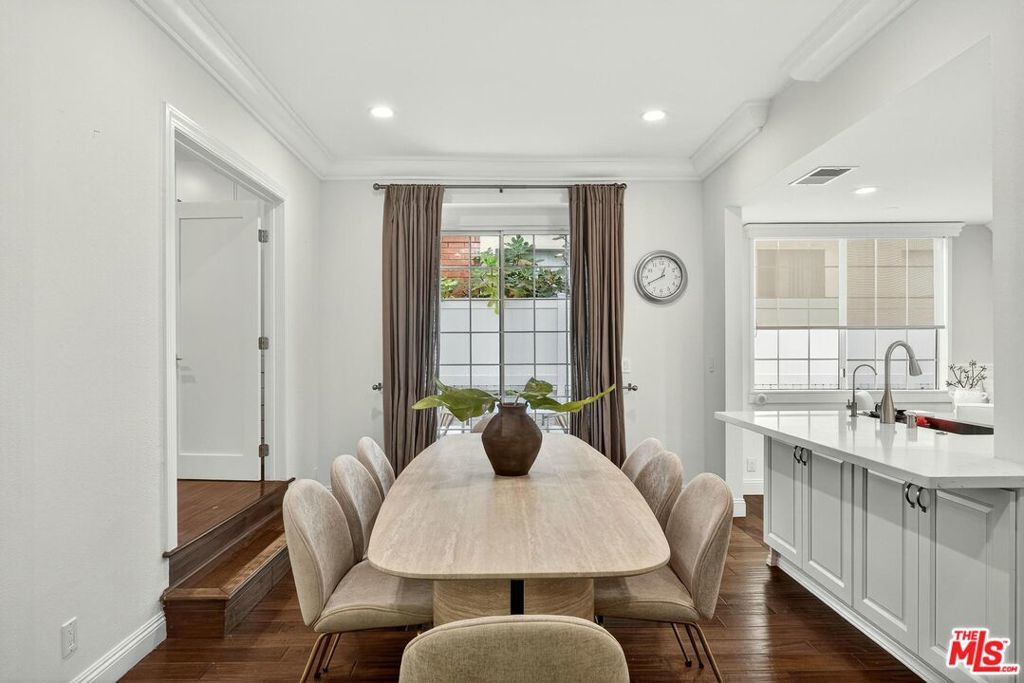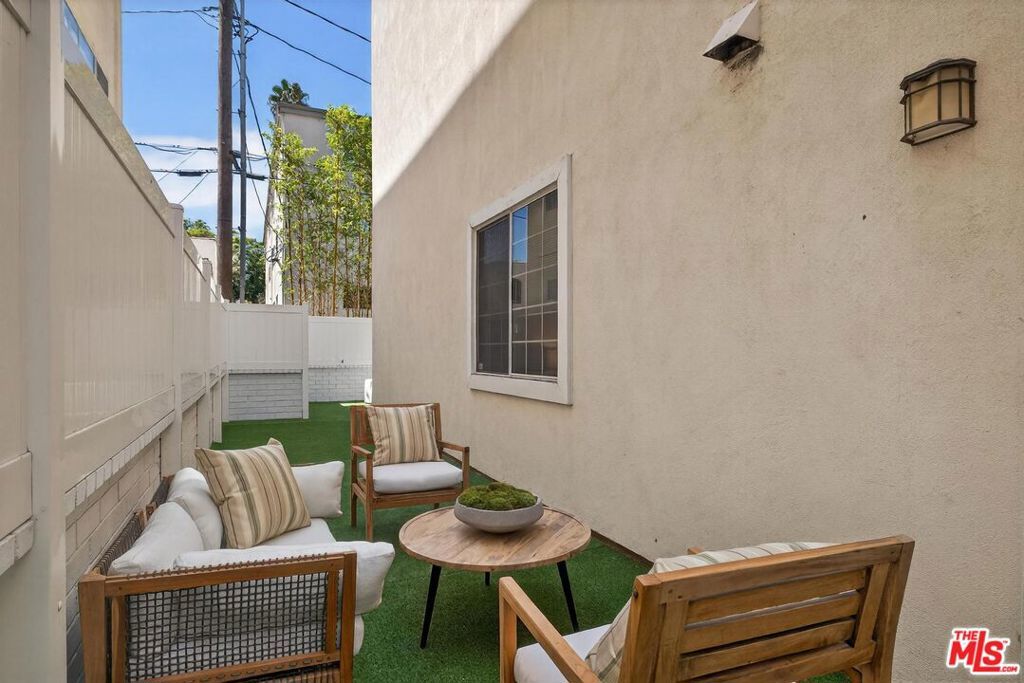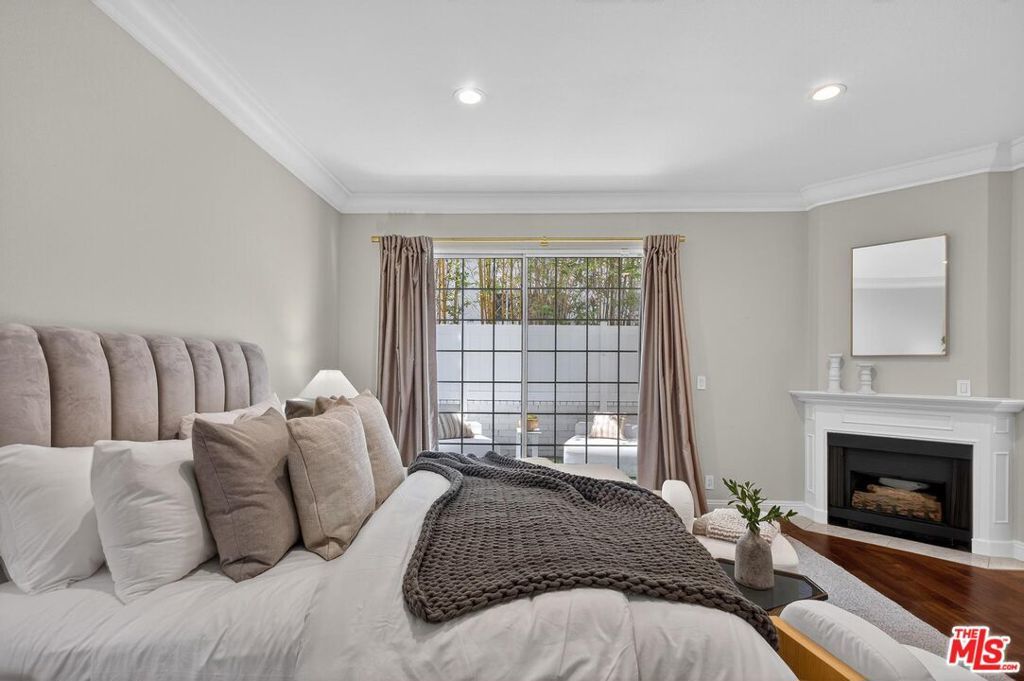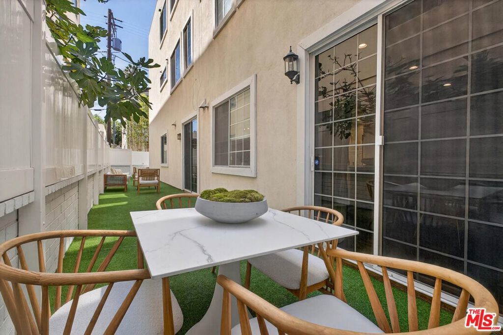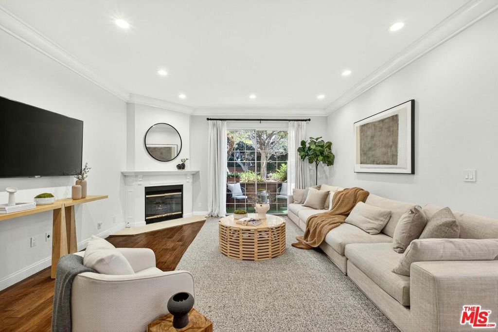 On a peaceful, tree-lined street in prime Beverly Hills, this stylish residence offers the scale and presence of a private home. With an expansive wrap around yard and several sliding doors, enjoy seamless indoor-outdoor living in the heart of the City. The three bedroom unit boasts soaring ceilings, abundant natural light, and a spacious, thoughtfully designed floor plan, offering both grandeur and everyday livability with several luxurious upgrades. Upon entry, a large foyer opens up to a wonderful living, dining room, and office den. Enjoy breakfast on the front balcony or at the charming breakfast nook adjacent to a chef's kitchen that dazzles with sleek quartz finishes and premium stainless steel appliances. The formal dining area sets the stage for memorable family gatherings where you can step outside for some outdoor entertaining. The oversized primary suite with fireplace provides a private sanctuary, featuring a hotel-inspired bath with a Japanese soaking tub, luxurious marble details, and two walk-in closets. Down the hall, a dedicated laundry room and elegantly upgraded powder room are across the hall from two large bedrooms, one ensuite. This spectacular unit comes with dedicated side-by-side gated parking and extra storage space in a subterranean garage for added ease and convenience. Located in a desirable pocket of Beverly Hills, this residence is moments away from world-renowned restaurants, vibrant nightlife, and couture shopping along Rodeo Drive, Robertson Boulevard, and Melrose Avenue. With access to top-rated Beverly Hills Unified schools, this home offers elegance, convenience, and a lifestyle of true prestige.