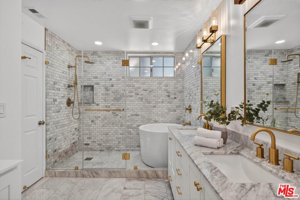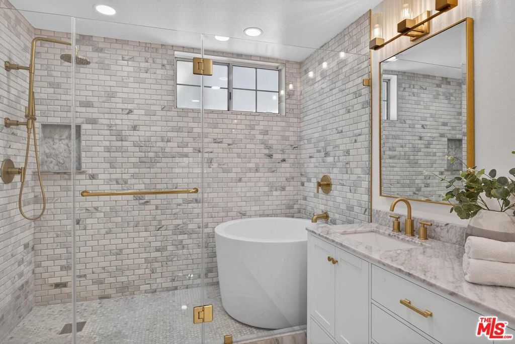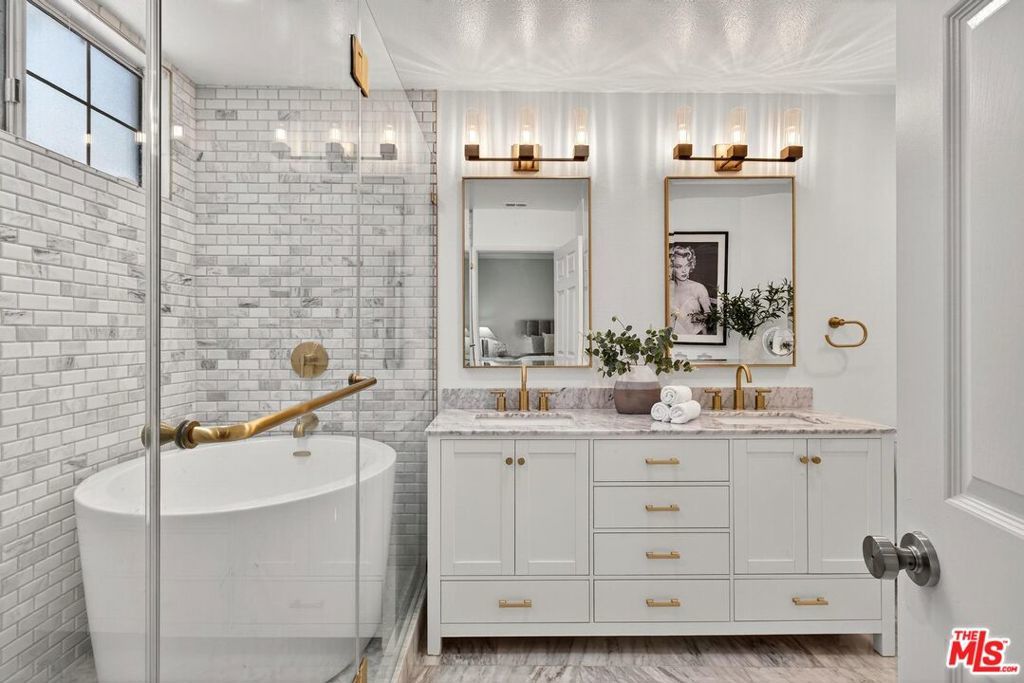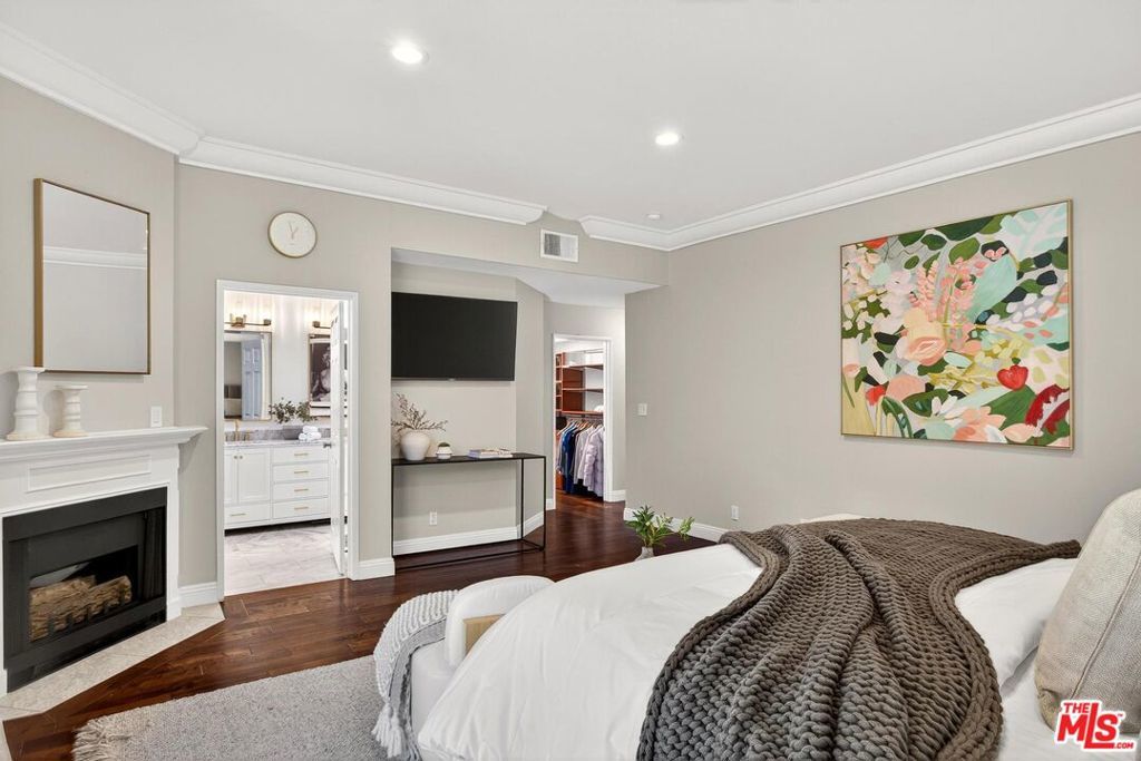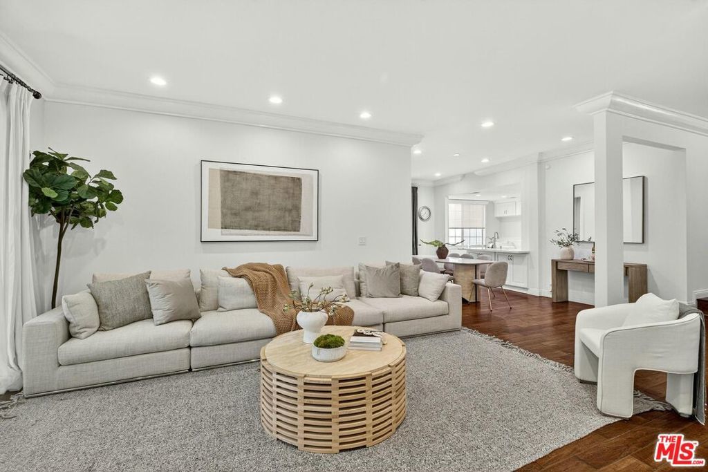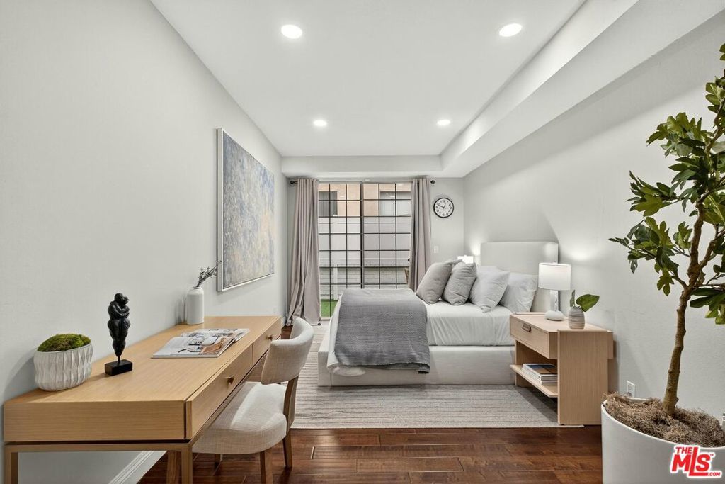 On a peaceful, tree-lined street in prime Beverly Hills, this stylish residence offers the scale and presence of a private home. With an expansive wrap around yard and several sliding doors, enjoy seamless indoor-outdoor living in the heart of the City. The three bedroom unit boasts soaring ceilings, abundant natural light, and a spacious, thoughtfully designed floor plan, offering both grandeur and everyday livability with several luxurious upgrades. Upon entry, a large foyer opens up to a wonderful living, dining room, and office den. Enjoy breakfast on the front balcony or at the charming breakfast nook adjacent to a chef's kitchen that dazzles with sleek quartz finishes and premium stainless steel appliances. The formal dining area sets the stage for memorable family gatherings where you can step outside for some outdoor entertaining. The oversized primary suite with fireplace provides a private sanctuary, featuring a hotel-inspired bath with a Japanese soaking tub, luxurious marble details, and two walk-in closets. Down the hall, a dedicated laundry room and elegantly upgraded powder room are across the hall from two large bedrooms, one ensuite. This spectacular unit comes with dedicated side-by-side gated parking and extra storage space in a subterranean garage for added ease and convenience. Located in a desirable pocket of Beverly Hills, this residence is moments away from world-renowned restaurants, vibrant nightlife, and couture shopping along Rodeo Drive, Robertson Boulevard, and Melrose Avenue. With access to top-rated Beverly Hills Unified schools, this home offers elegance, convenience, and a lifestyle of true prestige.