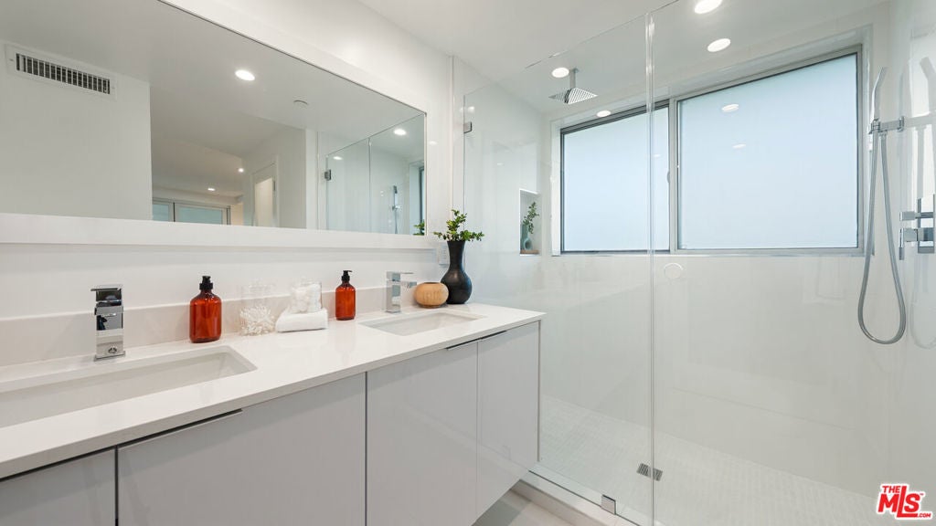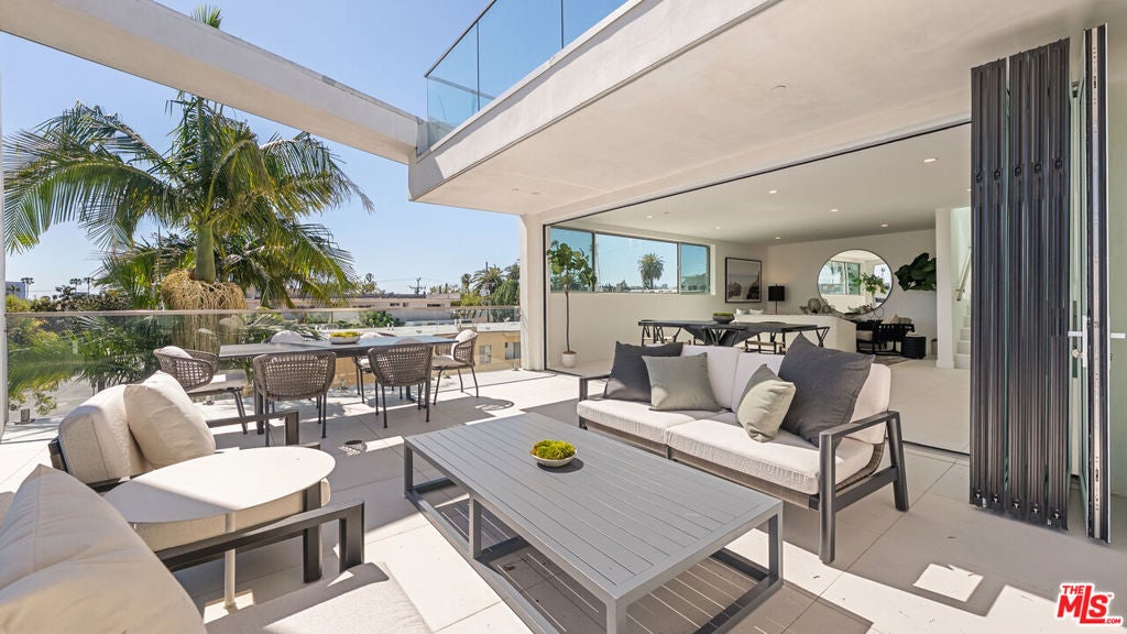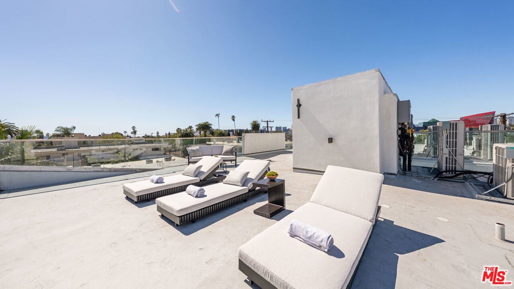 Welcome to THE TITANIUM - Residence 3 (Rhodium), a striking two-story penthouse perched atop an exclusive four-residence architectural building just steps from Melrose Place. Offering 1,691 square feet of interior living and more than 1,030 square feet of private terraces, this residence was designed for effortless indoor-outdoor living. Multiple outdoor spaces surround the home, including a large terrace off the main living area, a shared terrace connecting both primary suites, and an additional terrace just off the kitchen. Crowning the home is a private rooftop retreat with sweeping 360 views of Los Angeles, stretching from the Hollywood Hills to the Downtown skyline - an unforgettable setting for sunset gatherings or weekend lounging. Inside, the design is bold, modern, and light-filled, with an open layout that seamlessly connects each level to the outdoor spaces. Two luxurious primary suites each open directly to the terrace, creating flexible spaces for a lounge, gym, or creative studio. Additional highlights include direct elevator access, two side-by-side parking spaces in a secure garage, and the privacy of an intimate boutique building with only four residences. Moments from the city's most coveted dining, shopping, and design destinations, this one-of-a-kind penthouse delivers the ultimate Melrose Place lifestyle. A rare architectural offering in the heart of West Hollywood.