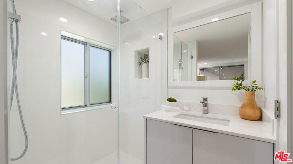 Welcome to THE TITANIUM Residence 2 (Iridium), a new bold two-story architectural townhouse just steps from iconic Melrose Place. With 1,670 SF of interior space and 375+ SF of private outdoor living, this home delivers the kind of indoor-outdoor lifestyle West Hollywood is known for. Inside, 20+ foot ceilings and massive windows flood the space with natural light, creating a dramatic, open vibe. The main level flows straight out to a private patio and yard - perfect for entertaining, morning coffee, or your own outdoor lounge. Upstairs, a flexible loft overlooking the living room adds a cool architectural edge and works perfectly as a home office, gym, creative studio, or extra sleeping space. The home also features two matching primary suites, and two side-by-side parking spaces in a secure garage. Set in a boutique stunning architectural building moments from Melrose Place's best restaurants, cafes, and shopping, this is modern West Hollywood living - stylish, vibrant, and effortlessly cool.