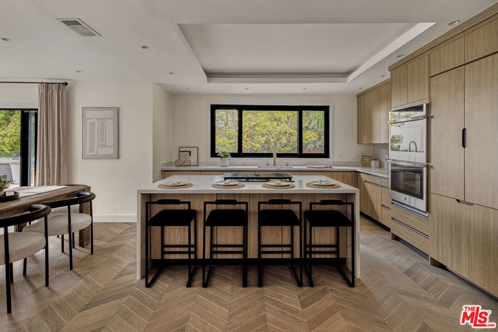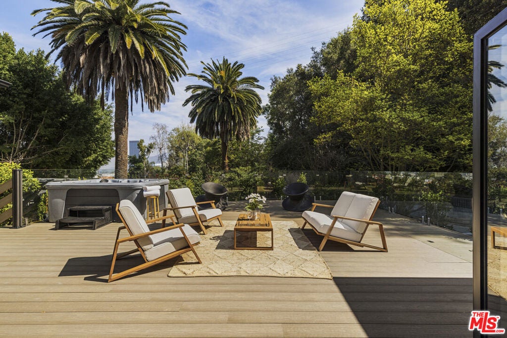 Privately set behind a long driveway in the coveted hills of Studio City, this beautifully reimagined residence blends modern design with effortless California indoor-outdoor living. Fully remodeled, the 4-bedroom, 3-bathroom home features bright open interiors filled with natural light and thoughtfully designed spaces ideal for both everyday comfort and entertaining. The chef's kitchen is a standout centerpiece, appointed with custom cabinetry, distinctive metal rack hardware, a built-in refrigerator and freezer, and an in-cabinet GE oven and microwave, creating a sleek and highly functional culinary space. The living areas flow seamlessly outdoors to a brand-new deck with a jacuzzi, that feels like a serene retreat above the city. Conveniently located just moments from the acclaimed dining, shopping, and cafes along Ventura Boulevard and near major entertainment hubs including Universal Studios Hollywood and New York Film Academy. This exceptional property offers the perfect balance of seclusion, modern luxury, and access to the vibrant lifestyle that defines Studio City.