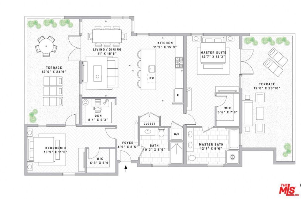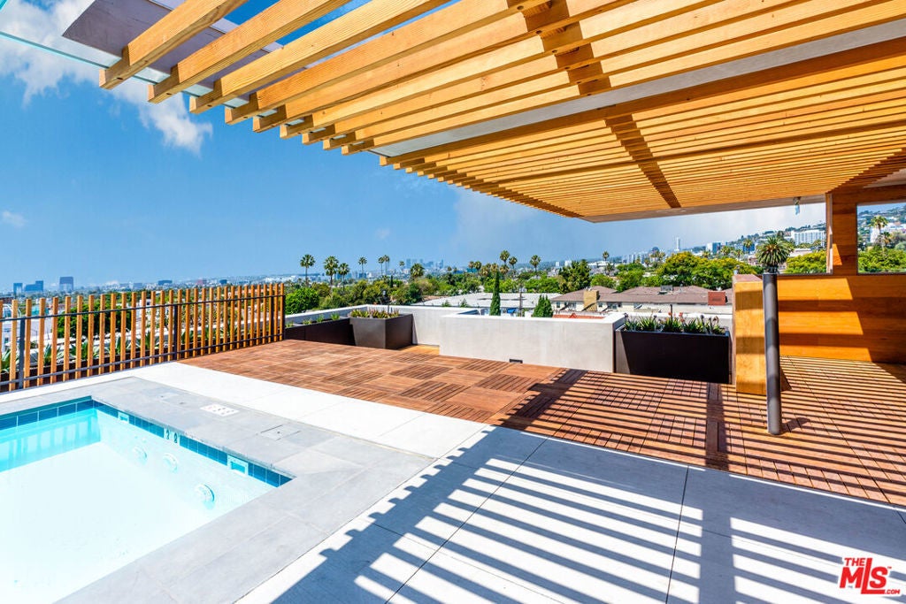 Spacious penthouse at 1250 N. Fairfax featuring an open living/dining layout, large kitchen with island seating, separate den ideal for office or flex space, and two oversized private terraces for seamless indoor-outdoor living with views of downtown! The primary suite offers a walk-in closet and en-suite bath with dual vanities, soaking tub, and separate shower. The building offers a rooftop pool, cabanas, fitness studio, landscaped courtyards, and resident lounge spaces, all set in the heart of West Hollywood near Sunset Plaza, Beverly Center, The Grove, and some of the neighborhood's best dining and nightlife.