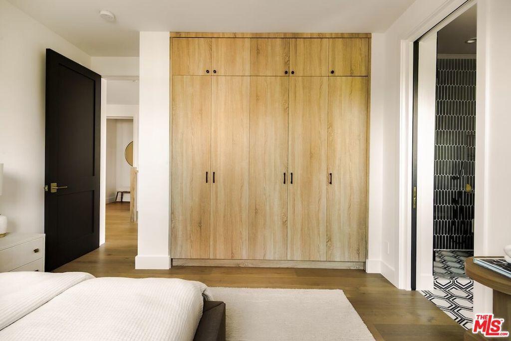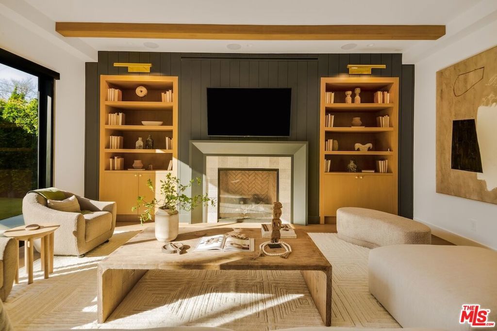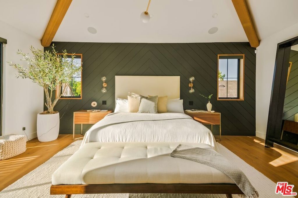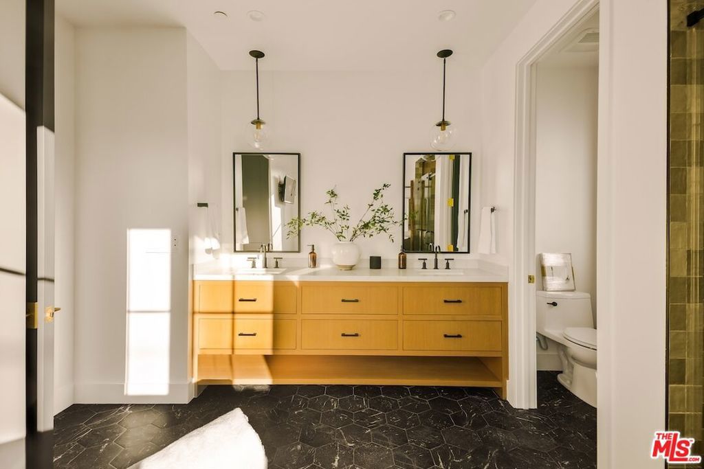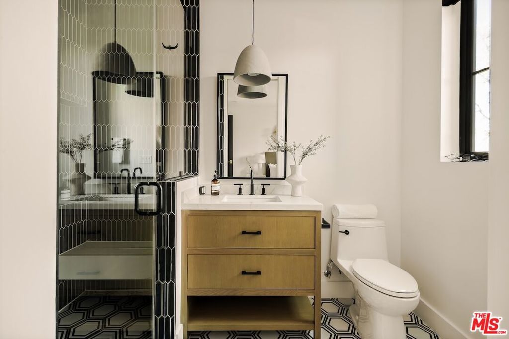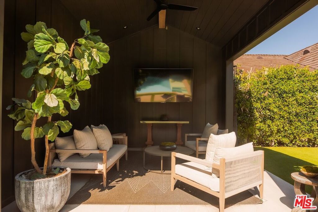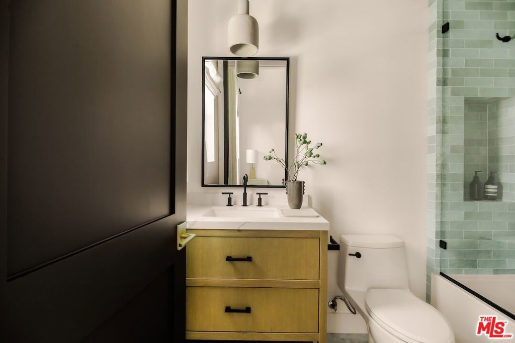Private and gated in the desirable West Toluca Lake enclave and adjacent to Studio City, this exceptional modern farmhouse by Core Homes blends timeless craftsmanship with elevated California living. The home offers both tranquillity and convenience in one of L.A.'s most coveted pockets. Designed with meticulous attention to detail, the smart home features wide-plank wood flooring, a full Control4 system, handcrafted millwork, custom shelving, and designer lighting throughout. The gourmet chef's kitchen is the heart of the home, showcasing a seated island with dramatic quartz waterfall countertops, wine storage, premium Thermador appliances, dual farmhouse sinks, and a generous walk-in pantry. The open-concept living and dining spaces are anchored by a statement fireplace and framed by expansive floor-to-ceiling windows that open seamlessly to the sun-drenched backyard, creating the ultimate indoor-outdoor lifestyle. The main level also includes a private ensuite bedroom currently styled as an office, along with a powder room and an oversized laundry room with abundant storage. Upstairs, the impressive primary suite features vaulted ceilings, a large private balcony, dual walk-in closets, and a spa-inspired bath with soaking tub and oversized shower. Secondary bedrooms are equally well-appointed, each filled with natural light and offering ensuite bathrooms and ample closet space. Designed for effortless entertaining, the resort-style backyard features a sparkling pool and spa with a Baja shelf, mature landscaping, an outdoor kitchen, dining area, and a cabana complete with its own pool bath, along with an outdoor shower. Conveniently located by Easy Street Burgers, VERSE Speak Easy and Ca de Sole for effortless dining and entertainment.