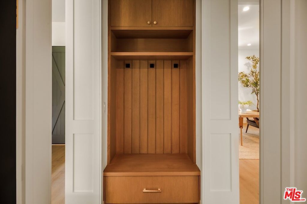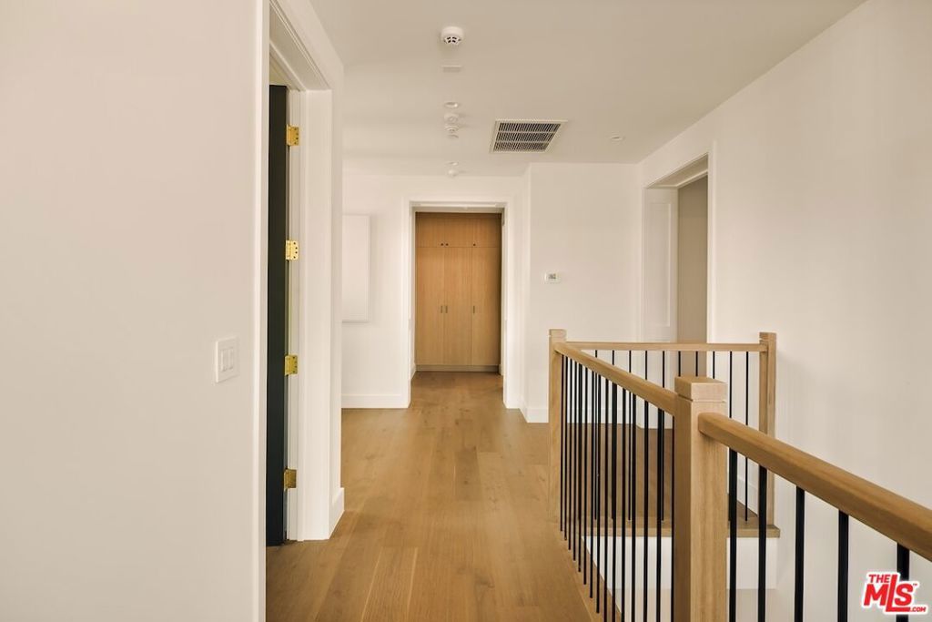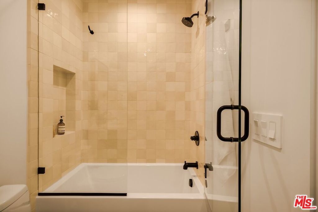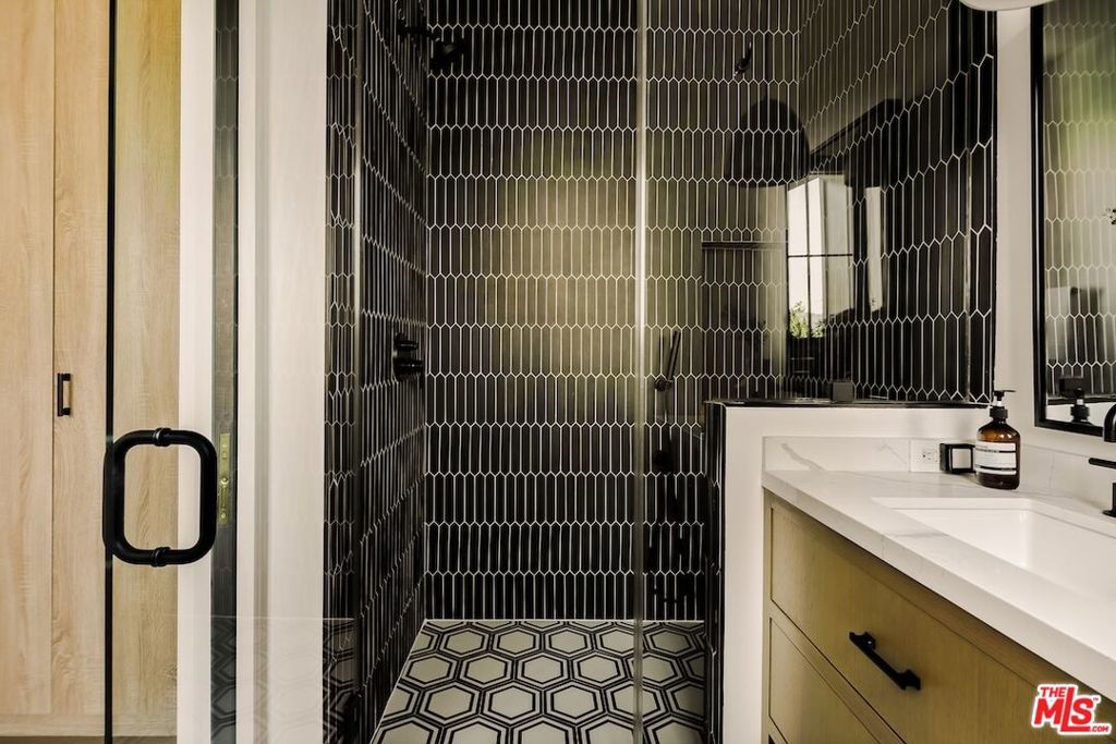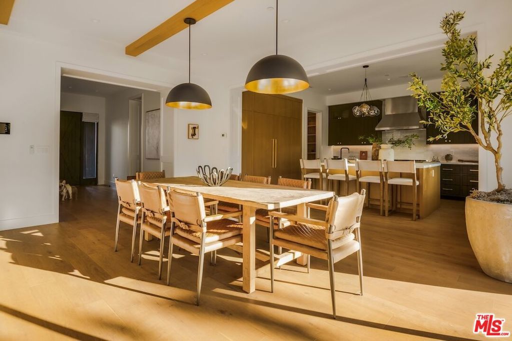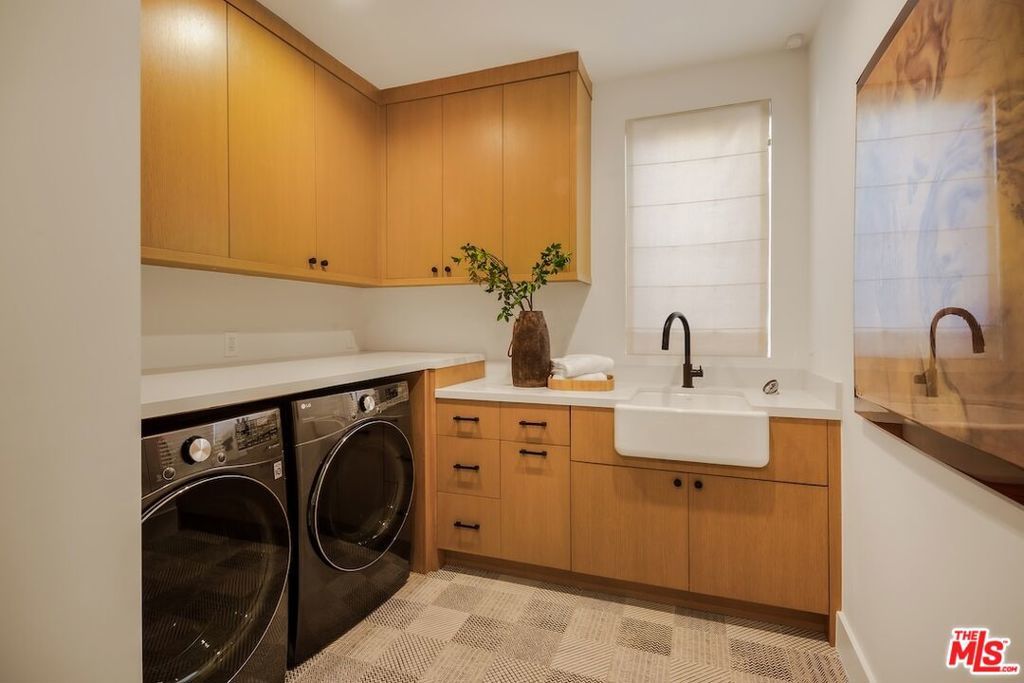 Private and gated in the desirable West Toluca Lake enclave and adjacent to Studio City, this exceptional modern farmhouse by Core Homes blends timeless craftsmanship with elevated California living. The home offers both tranquillity and convenience in one of L.A.'s most coveted pockets. Designed with meticulous attention to detail, the smart home features wide-plank wood flooring, a full Control4 system, handcrafted millwork, custom shelving, and designer lighting throughout. The gourmet chef's kitchen is the heart of the home, showcasing a seated island with dramatic quartz waterfall countertops, wine storage, premium Thermador appliances, dual farmhouse sinks, and a generous walk-in pantry. The open-concept living and dining spaces are anchored by a statement fireplace and framed by expansive floor-to-ceiling windows that open seamlessly to the sun-drenched backyard, creating the ultimate indoor-outdoor lifestyle. The main level also includes a private ensuite bedroom currently styled as an office, along with a powder room and an oversized laundry room with abundant storage. Upstairs, the impressive primary suite features vaulted ceilings, a large private balcony, dual walk-in closets, and a spa-inspired bath with soaking tub and oversized shower. Secondary bedrooms are equally well-appointed, each filled with natural light and offering ensuite bathrooms and ample closet space. Designed for effortless entertaining, the resort-style backyard features a sparkling pool and spa with a Baja shelf, mature landscaping, an outdoor kitchen, dining area, and a cabana complete with its own pool bath, along with an outdoor shower. Conveniently located by Easy Street Burgers, VERSE Speak Easy and Ca de Sole for effortless dining and entertainment.