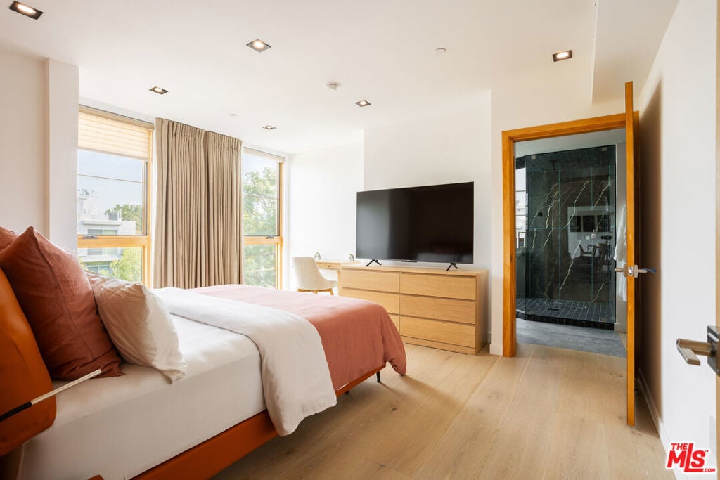 Making its debut in one of West Hollywood/Beverly Grove's most coveted locations, 547 Sweetzer is a new contemporary building bringing modern design, elevated amenities, and boutique-quality living to the neighborhood. This spacious 1 bedroom, 1.5 bathroom residence showcases polished concrete floors, oversized windows with remote-control power shades, Nest-controlled central heat and air, and an open-concept layout with a sleek kitchen outfitted with brand-new appliances. The bedroom is a private suite with a spa-inspired bathroom, complemented by a stylish powder room and thoughtful storage throughout. Residents enjoy an expansive rooftop sundeck with sweeping city views, a 24-hour camera security system, and a gated subterranean garage with two side-by-side parking spaces plus a private storage unit. Available furnished or unfurnished, this home blends modern luxury with everyday convenience-just steps from Melrose Place, West 3rd Street, and Beverly Boulevard's premier dining, cafes, and boutiques.