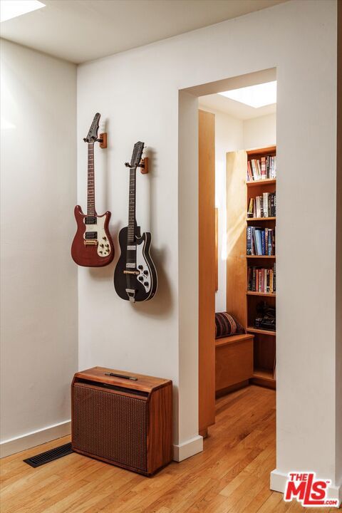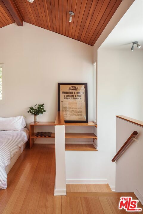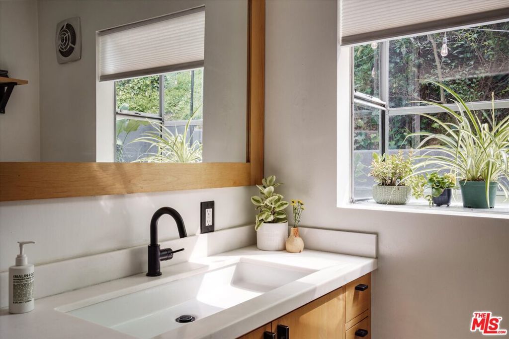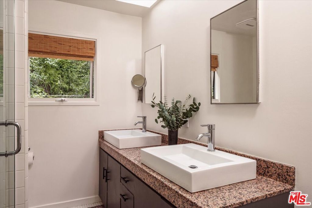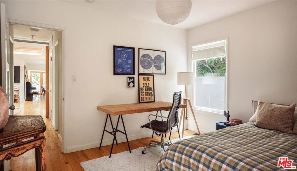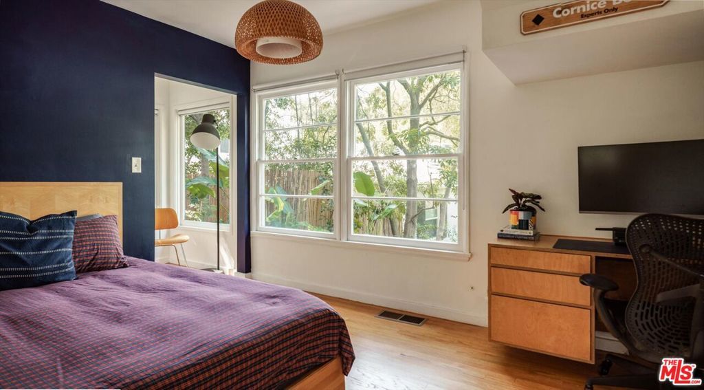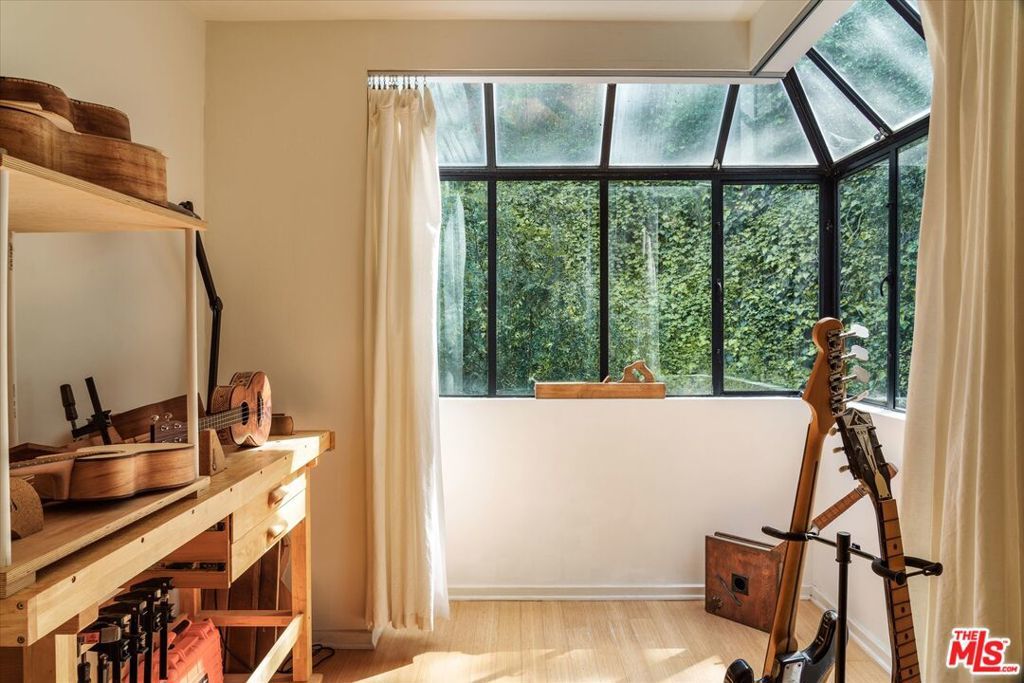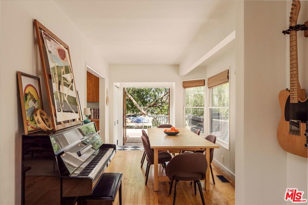 Perched above the street and screened by mature foliage, this mid-century Laurel Canyon treehouse is a peaceful retreat where architecture and nature meet. Built for inspiration, tucked away from view yet moments from the pulse of the city, the design nods to classic mid-century design with subtle aesthetic touches reminiscent of Frank Gehry - skylights, warm natural materials, and light that shifts beautifully throughout the day - creating a seamless connection between indoors and the surrounding canyon landscape. Inside, the house offers three bedrooms and two baths, thoughtfully arranged for easy living - lovely flow of airy common spaces, with 2 bedrooms on the main level and the primary suite and sunroom occupying the entire upper floor. Outside, on an over 9000sf lot, the generous and expansive deck and yard areas are ideal for morning coffee, dinners al fresco, play and rest. From every vantage point, you see layers of green and sky - offering privacy, calm, and inspiration. This is more than a home, it's a creative haven, a peaceful escape, and a rare opportunity to live immersed in the beauty, spirit and wonder of the canyon. There is a detached 2 car garage on street level and ample street parking. Wonderland School District.