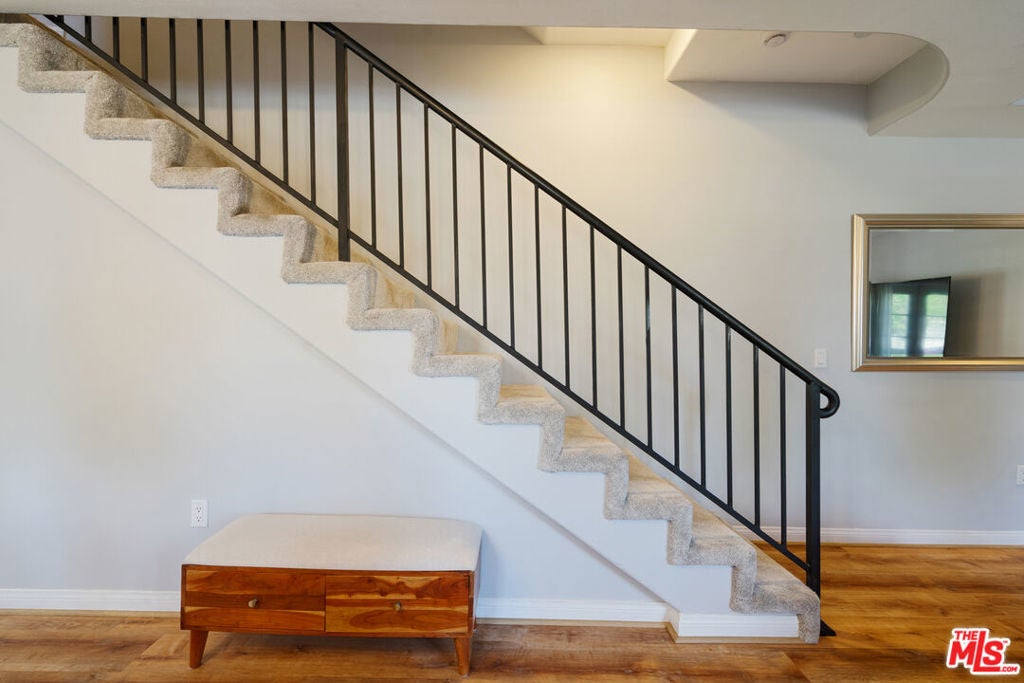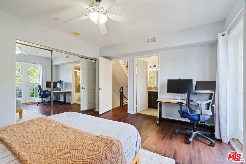 Located in a quiet courtyard setting in the heart of Valley Village, this three level townhome offers bright living spaces and a private rooftop deck with treetop views. Recently updated laminate wood flooring runs throughout the first two levels, creating a clean and cohesive feel across the main living areas.The main floor features an open living and dining space with a fireplace and French doors that bring in natural light. The kitchen includes granite countertops, stainless steel appliances, white cabinetry, a gas range, and a large window above the sink that fills the space with daylight. A kitchen bar provides a comfortable place to sit and gather while meals are being prepared. A powder room and pantry storage beneath the stairs add everyday convenience.Upstairs, the bedrooms offer comfortable layouts and natural light, with in unit laundry located on the same level. The primary bathroom features a remodeled shower with fiberglass enclosed sliding doors on rollers, along with granite counters and tile flooring.The private rooftop deck provides open sky and treetop views, creating a quiet outdoor space above the neighborhood.Additional highlights include a smart thermostat, guest parking, and two tandem assigned parking spaces. Conveniently located near Studio City, Ventura Boulevard, the NoHo Arts District, and major freeways.