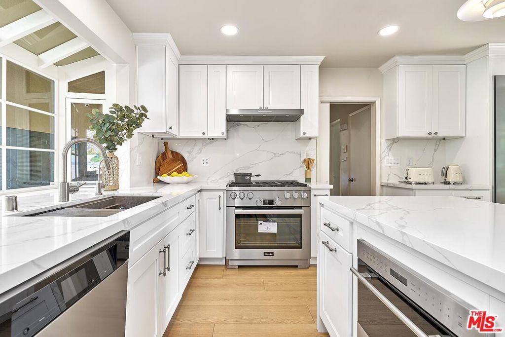 Welcome to this beautifully remodeled home located in one of the most desirable neighborhoods of La Canada Flintridge, offering an exceptional blend of modern upgrades, comfortable living, and access to the highly acclaimed La Canada Unified School District. Only few blocks away from the Palm crest elementary school. This stunning 4-bedroom, 3-bathroom residence has been thoughtfully renovated throughout and is truly move-in ready. The home welcomes you with a bright and elegant interior featuring newly upgraded flooring, fresh interior paint, and a spacious open layout designed for both everyday living and effortless entertaining. The fully remodeled chef's kitchen serves as the centerpiece of the home, showcasing stylish cabinetry, beautiful countertops, and a full suite of brand-new high-end ''Miele" appliances that perfectly combine modern design with everyday functionality. Each of the three bathrooms has been tastefully upgraded with contemporary finishes and fixtures, creating a clean and sophisticated feel throughout the home. Beyond the beautiful cosmetic upgrades, the property also features updated electrical and HVAC systems, EV Charger at the extra parking space. Offering modern reliability and long-term peace of mind. Step outside to your private backyard oasis, where a swimming pool provides the perfect setting for relaxing weekends, outdoor entertaining, and enjoying Southern California's year-round sunshine. Situated in a peaceful residential setting while still being conveniently close to local shops, dining, parks, and major freeways, this home offers the perfect balance of privacy and accessibility. With its extensive remodeling, move-in ready condition, pool, spacious layout, and location within the top-rated La Canada schools, this home presents a rare opportunity to own a beautifully upgraded property in one of Southern California's most sought-after communities.