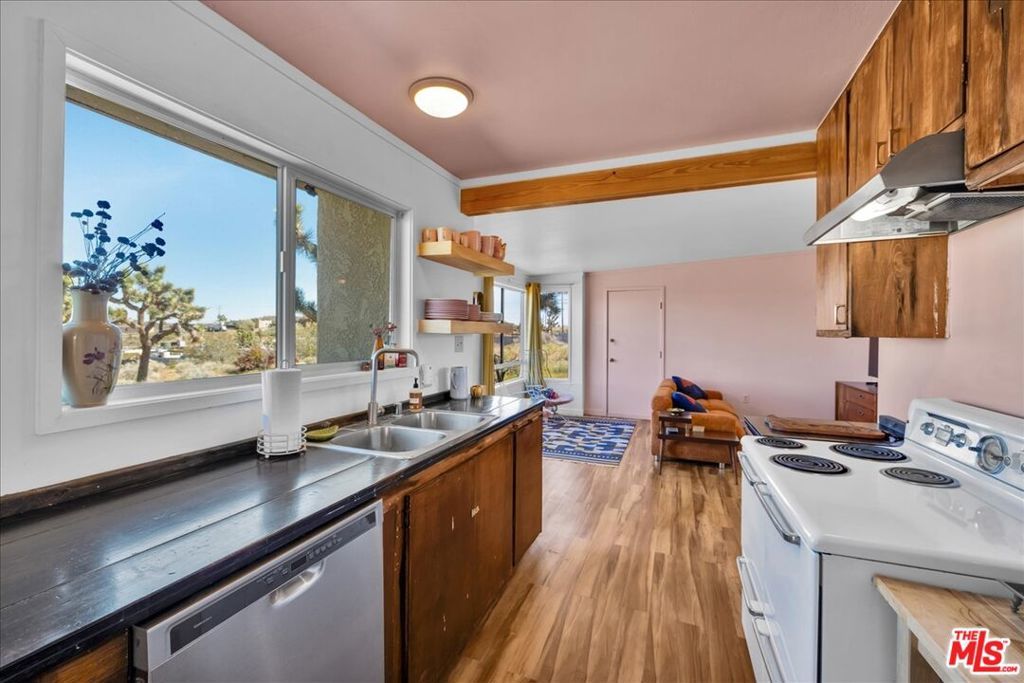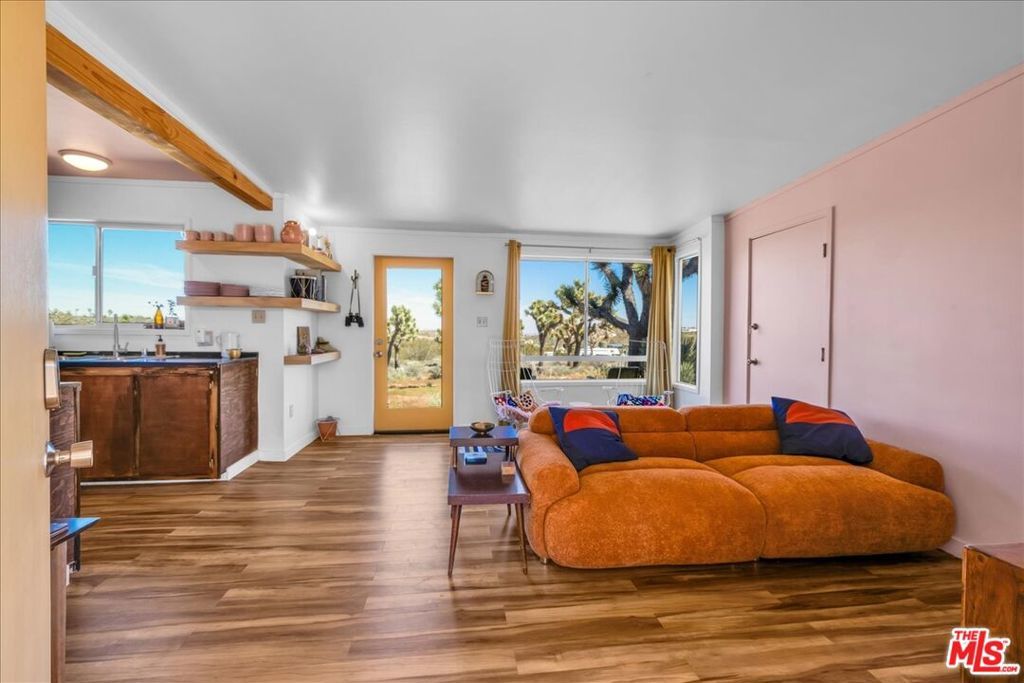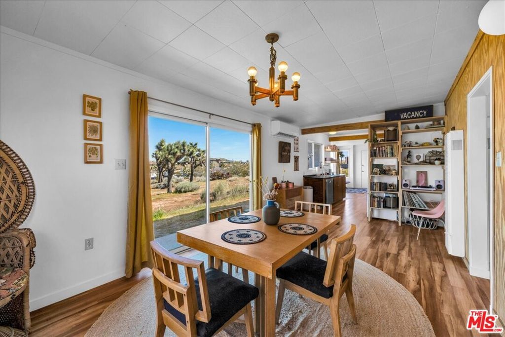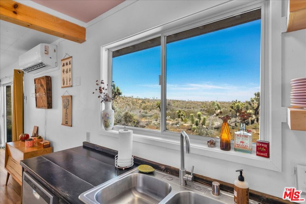 Rare opportunity to own a mid-century mixed-use property on 5 acres in Yucca Valley, surrounded by sweeping high-desert views and iconic Joshua Trees. This 2-bedroom, 1-bath home has been extensively renovated while preserving its vintage character, creating a great space to live in, work from, or enjoy as a desert retreat. Since purchasing the home, the owners have upgraded and modified the property from floor to ceiling, thoughtfully preserving its original vintage Joshua Tree style, combining modern upgrades with classic high-desert charm. (A full list of improvements is available under Documents.)A fenced and landscaped yard sits within acres of untouched desert featuring rare plant species and wildlife. With mixed-use zoning, the property offers flexibility for a live/work space, studio, shop, events, or creative retreat. Ideally located 5 minutes from La Copine in Flamingo Heights, 10 minutes to downtown Yucca Valley, and 15 minutes to Joshua Tree shops, restaurants, and the National Park entrance.
