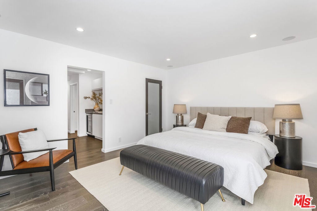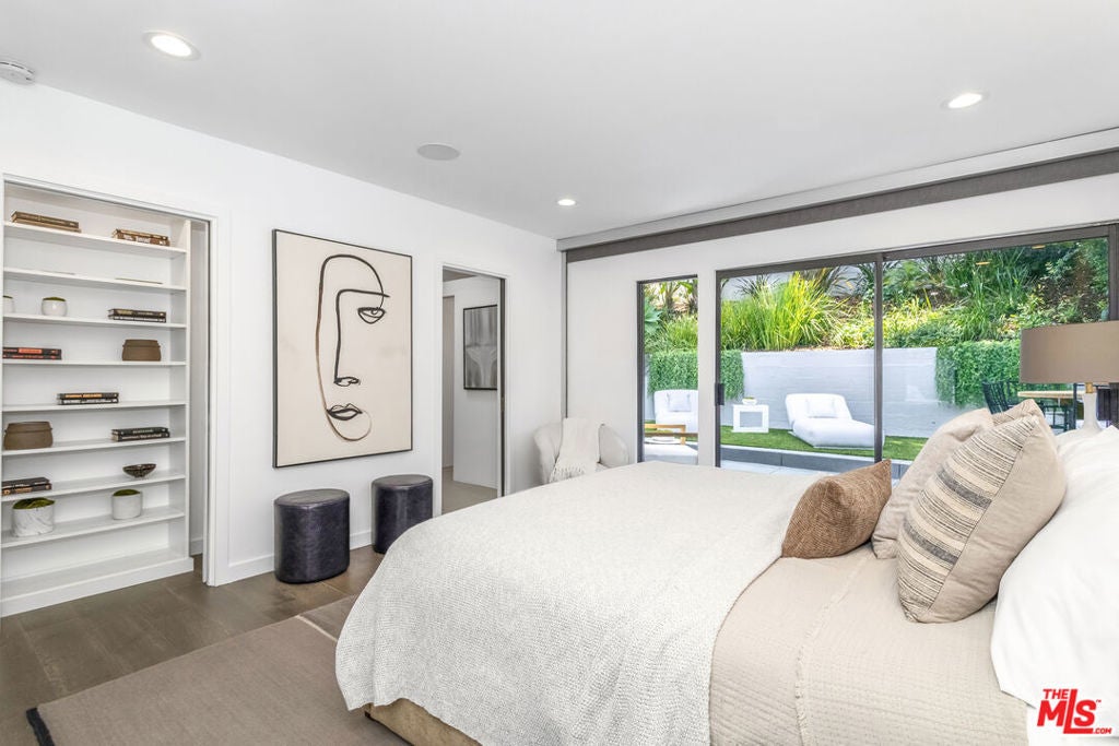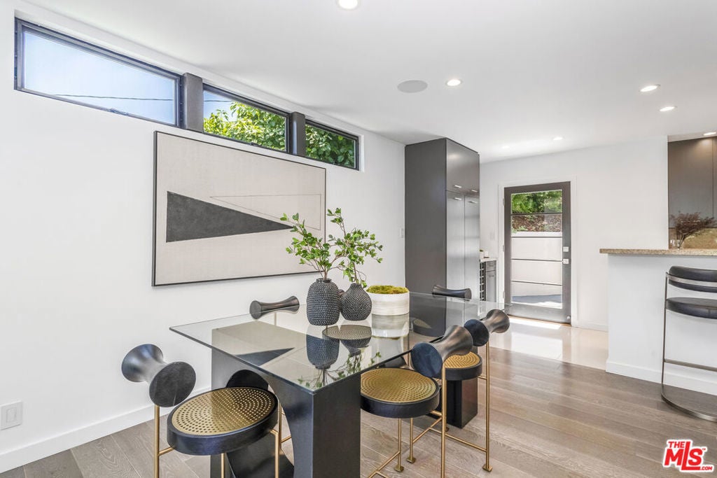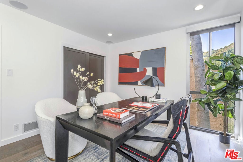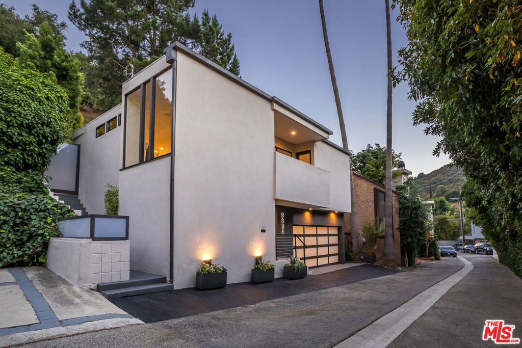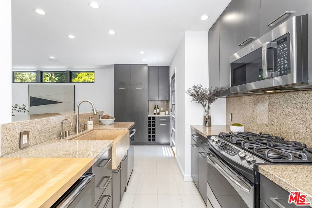 Stunning, sleek, stylish - this dramatic Mid-Century, 4 bed/3 bath home has been renovated throughout with meticulous attention to design and detail; every finish and texture selected for high-end form and function. The seamless indoor-outdoor flow creates inviting spaces for entertaining, while expansive windows maximize the lush, serene outlooks, with abundant natural light throughout. Enter through the dramatic, two-story foyer with terrazzo floors, steel and glass staircase leading to the open living spaces with hand-scraped European oak floors, European cabinetry, and quartz counters. The flexible, open-concept floor plan offers two bedrooms, two baths up, including owner's retreat with lavish-spa-like bath; two bedrooms, 1 bath down, including a custom-appointed guest suite with kitchenette, laundry and separate entrance, perfect for au-pair, in-law, home office or screening room. Generous two-car garage with ample storage has interior access to the home.