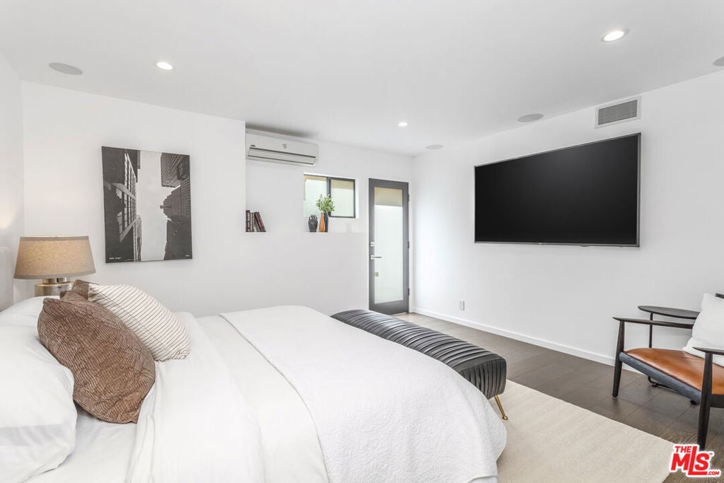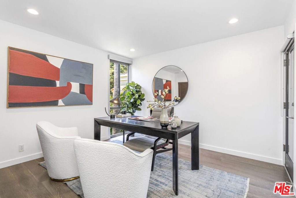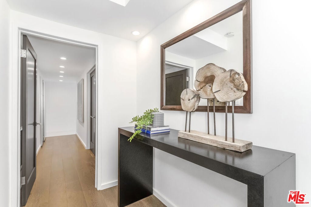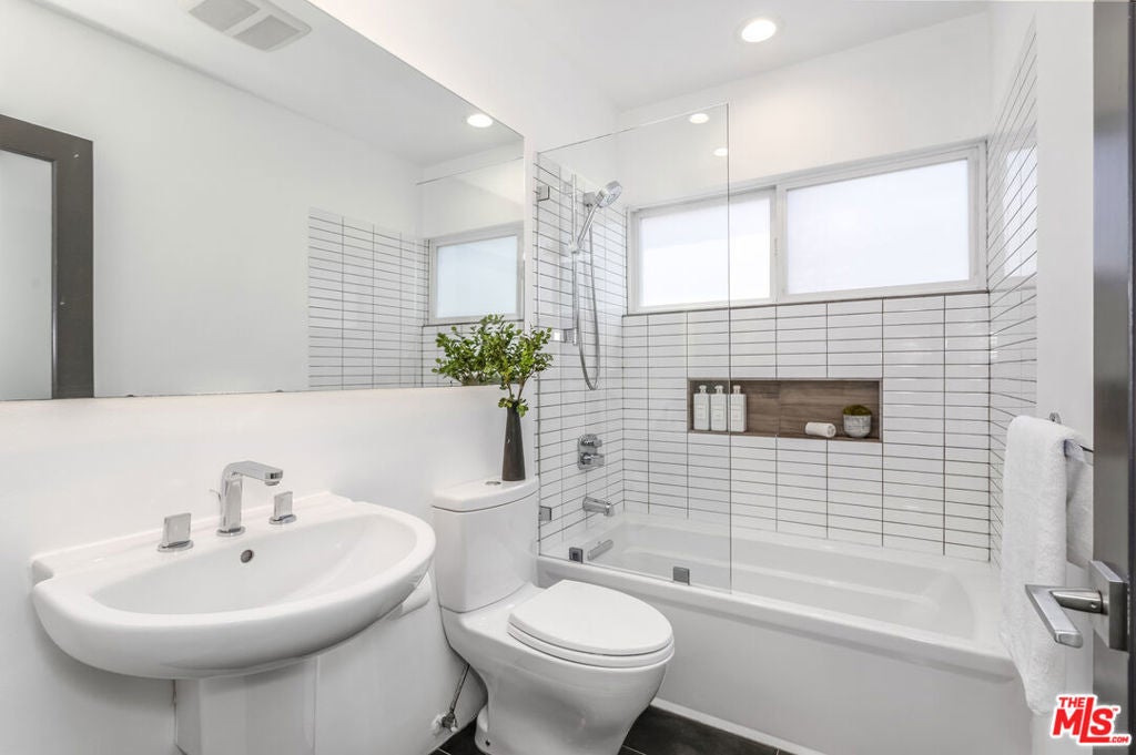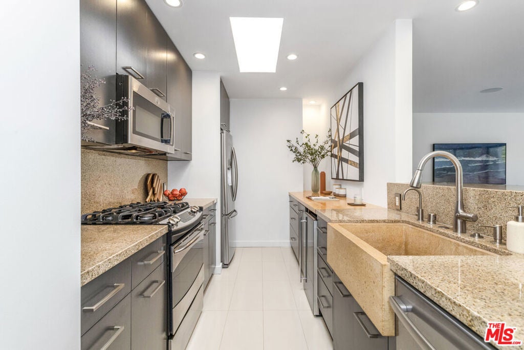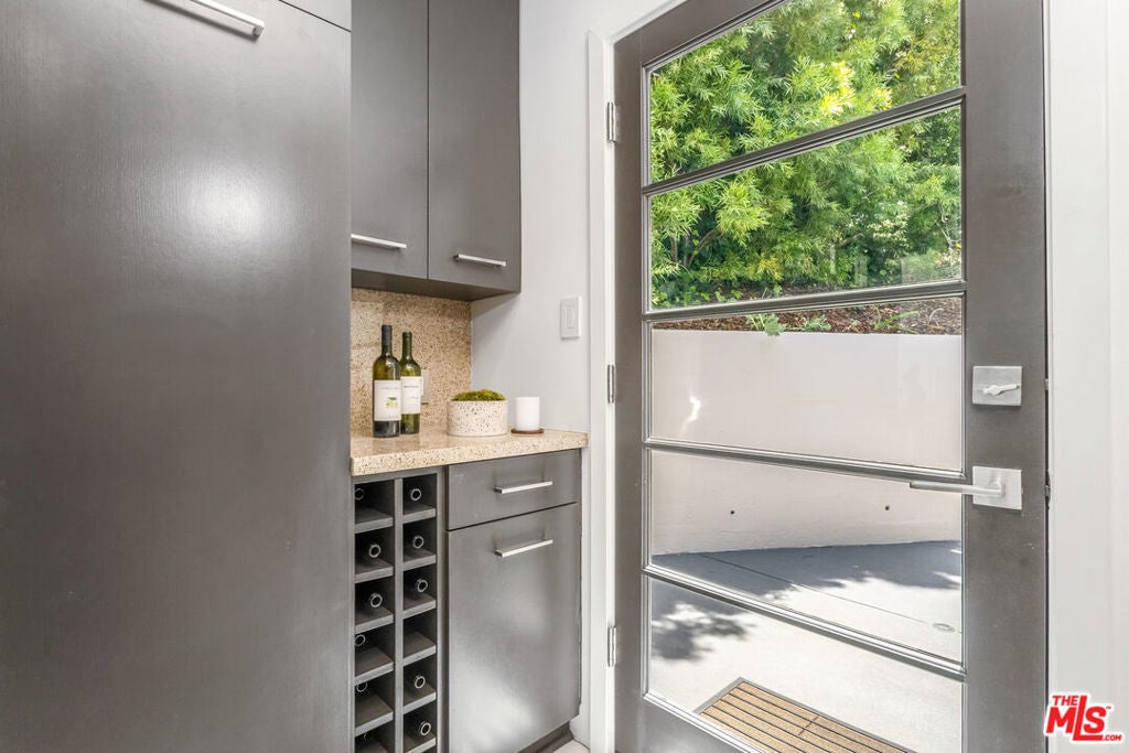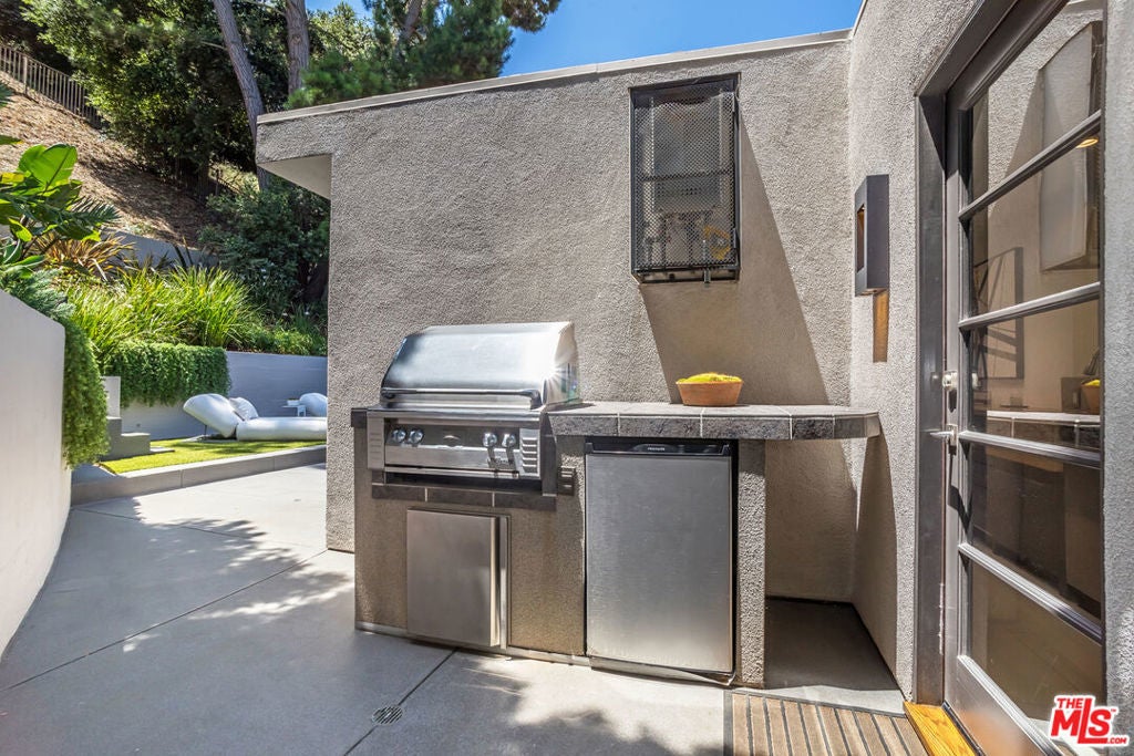 Stunning, sleek, stylish - this dramatic Mid-Century, 4 bed/3 bath home has been renovated throughout with meticulous attention to design and detail; every finish and texture selected for high-end form and function. The seamless indoor-outdoor flow creates inviting spaces for entertaining, while expansive windows maximize the lush, serene outlooks, with abundant natural light throughout. Enter through the dramatic, two-story foyer with terrazzo floors, steel and glass staircase leading to the open living spaces with hand-scraped European oak floors, European cabinetry, and quartz counters. The flexible, open-concept floor plan offers two bedrooms, two baths up, including owner's retreat with lavish-spa-like bath; two bedrooms, 1 bath down, including a custom-appointed guest suite with kitchenette, laundry and separate entrance, perfect for au-pair, in-law, home office or screening room. Generous two-car garage with ample storage has interior access to the home.
