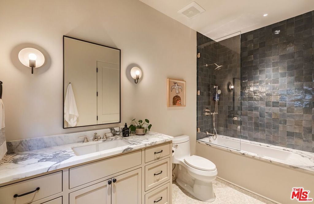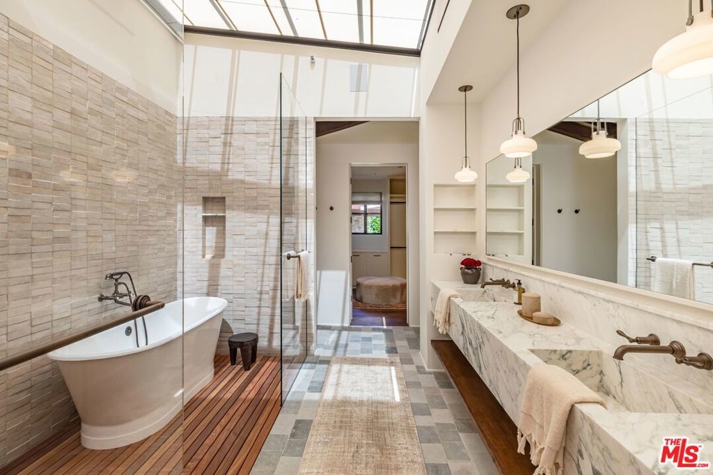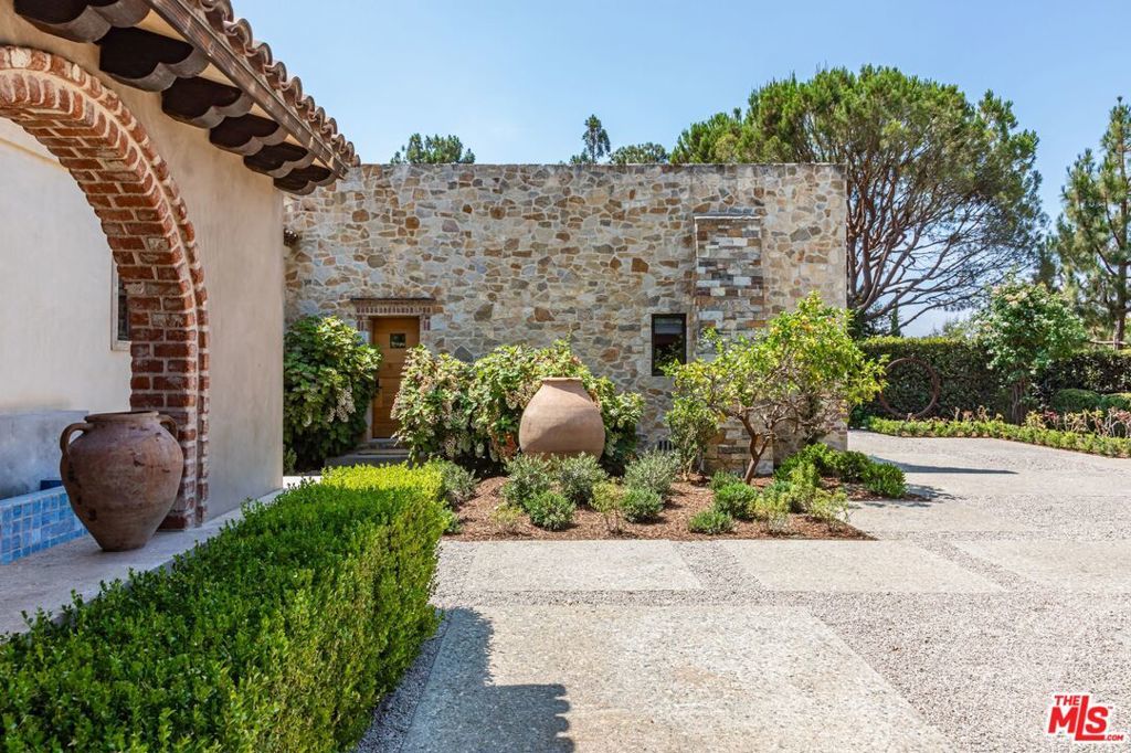 Alpine Ranch, located on one of the most prestigious streets in Beverly Hills, is a gated, custom-built Italian Villa originally designed by acclaimed architects Luis Ortega and Jose Fernandez. It has been fully reimagined as a brand-new home, impeccably redesigned and furnished by Amber Interiors. Every detail of this 5-bed, 5-bath estate has been thoughtfully upgraded, from fully renovated bathrooms, bedrooms, and living spaces to a comprehensive redesign by Amber Interiors. Their curated touches include bespoke furnishings, hand-thrown ceramics, artfully stacked books, and carefully layered textiles all included in the sale for a true turnkey experience. Interior highlights blend rustic charm with refined elegance, including exposed wood beam ceilings, steel-framed windows, and natural stone accents reminiscent of a countryside villa in the South of France. The main level is thoughtfully laid out with a sunlit formal living room that opens to a serene outdoor patio, an inviting dining room, and a chef's kitchen outfitted with Wolf appliances. Four bedrooms are located on this level, including a private primary wing that serves as a true retreat, featuring garden and pool views, a spa-quality bath with rain shower, freestanding tub, and overhead skylights that bathe the space in natural light. Upstairs, a separate private casita and an additional flex bedroom or gym open onto a generous covered balcony and rooftop deck. Set behind gates, the grounds are just as captivating as the interiors. A sprawling motor court offers ample parking for guests, while the expansive grassy yard, resort-style pool, and sun-drenched cabana invite effortless indoor-outdoor living. Thoughtful details like a private outdoor shower and a dedicated pool bathroom add both convenience and charm, creating a true sanctuary for relaxation and entertaining under the California sun.Just moments from the Beverly Hills Hotel and the world-class shopping, dining, and entertainment of Rodeo Drive, Alpine Ranch is a rare opportunity to own a fully furnished, design-forward estate in one of the most iconic neighborhoods in the world.