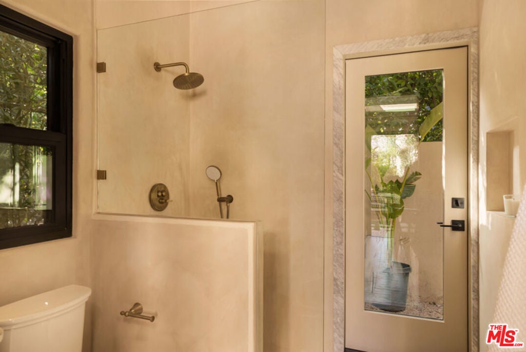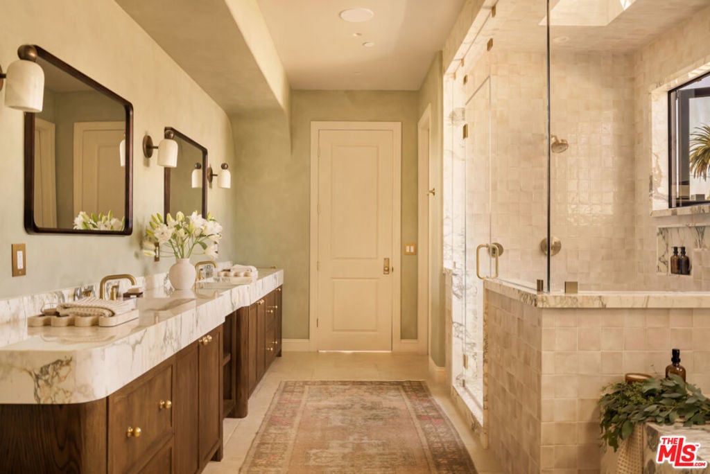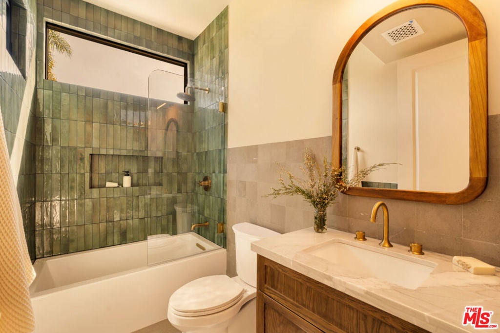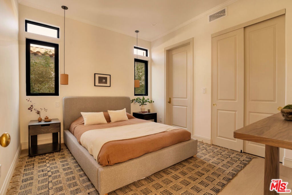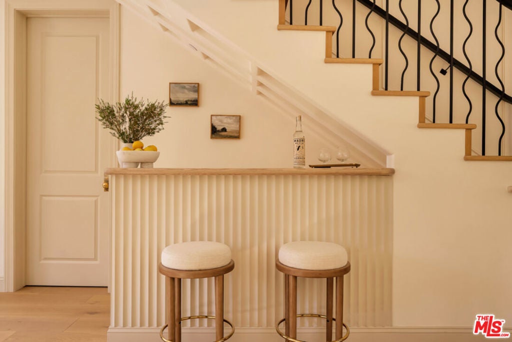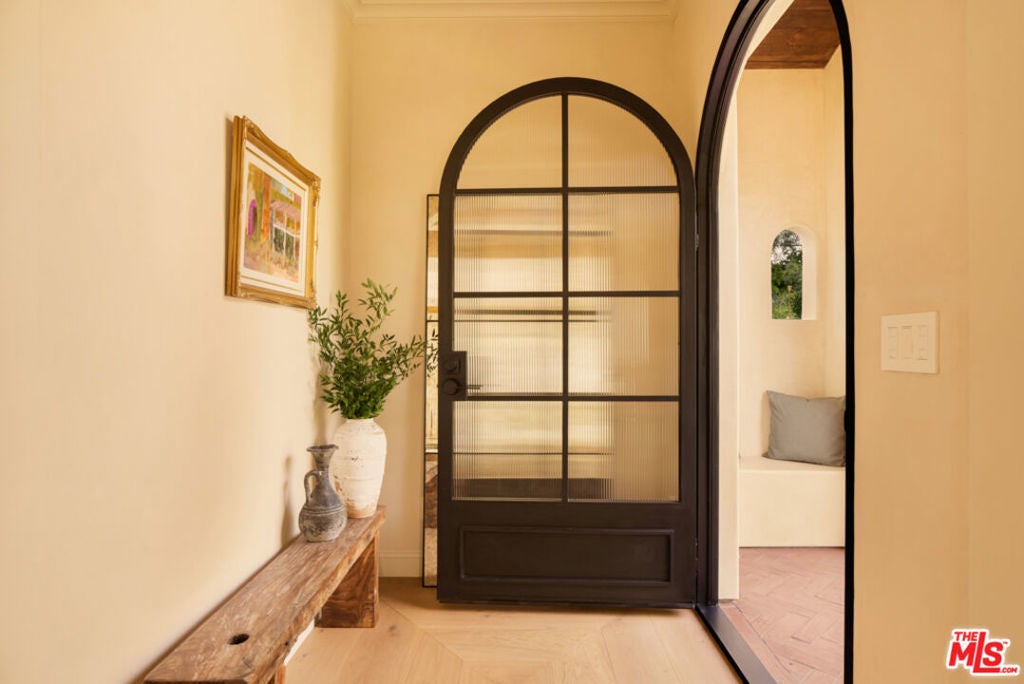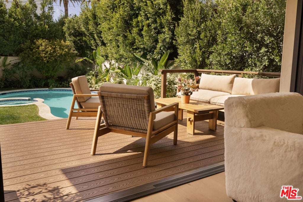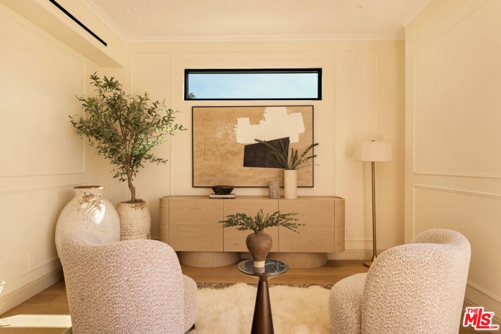 This Spanish-inspired residence blends timeless architecture with warmth and privacy, offering the perfect home to unwind and escape the city or host with presence and style. Upon entering, vaulted cedar ceilings immediately set the tone, filling the home with architectural character and natural warmth. Sunlight moves effortlessly throughout, creating an elegant living space designed as both an architectural showpiece and a peaceful place to call home. While open and expansive, the home is thoughtfully designed with intimate pockets for moments of retreat. Expansive pocket doors open to a serene courtyard, creating seamless indoor-outdoor flow into the backyard, where a grassy lawn and lush landscaping around the pool create a transformative setting that transports you to a place of peace while remaining in the heart of the city. The pool house doubles as a private theater with a screen that descends from the ceiling, effortlessly transforming the space into a cinematic retreat or entertaining room. Above it all, a 1,200sqft rooftop deck captures breathtaking sunsets framed by palm trees, distant mountains, and panoramic 360-degree views of the city. A rare balance of architectural integrity, tranquility, and soul, this home offers a living experience that feels both grounding and extraordinary.