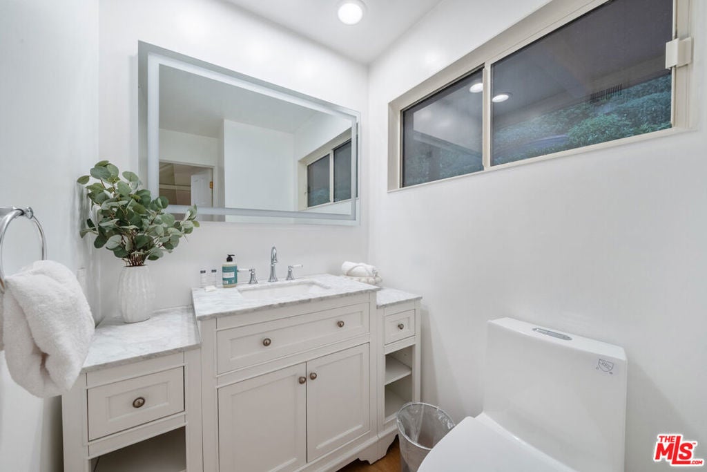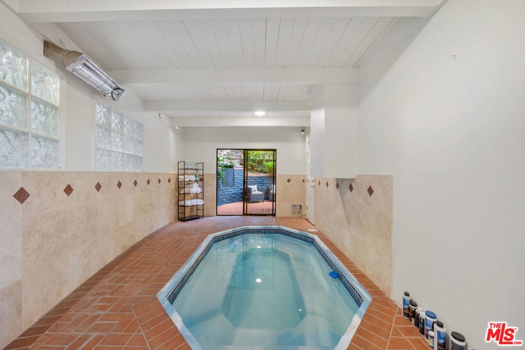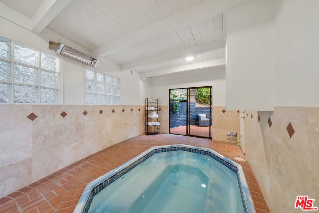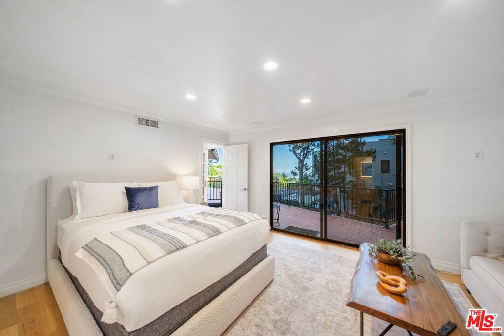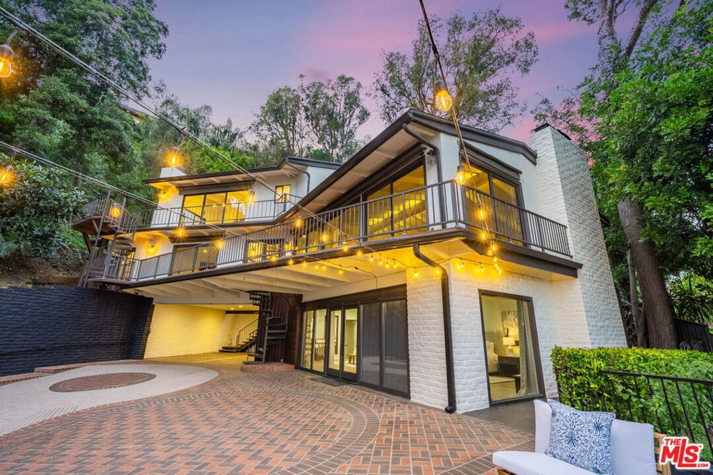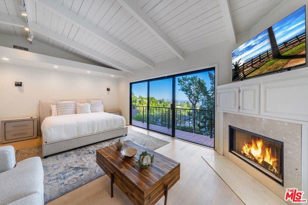 Beautifully renovated Mid-Century home offering abundant natural light, privacy, and sweeping treetop and city views. The open kitchen flows into the living and dining areas, featuring a fireplace and a spacious entertainer's balcony.The home offers 3 bedrooms and 4.5 bathrooms, plus a bonus room converted into a large suite. All bedrooms are en-suite, with select rooms featuring fireplaces and beautiful views. A large family room with fireplace opens to a private patio, and an indoor jacuzzi adds a spa-like element to the home.Perched atop a gated private driveway on a quiet street, the property offers exceptional privacy while being just minutes from Rodeo Drive, Beverly Hills shopping, and dining.