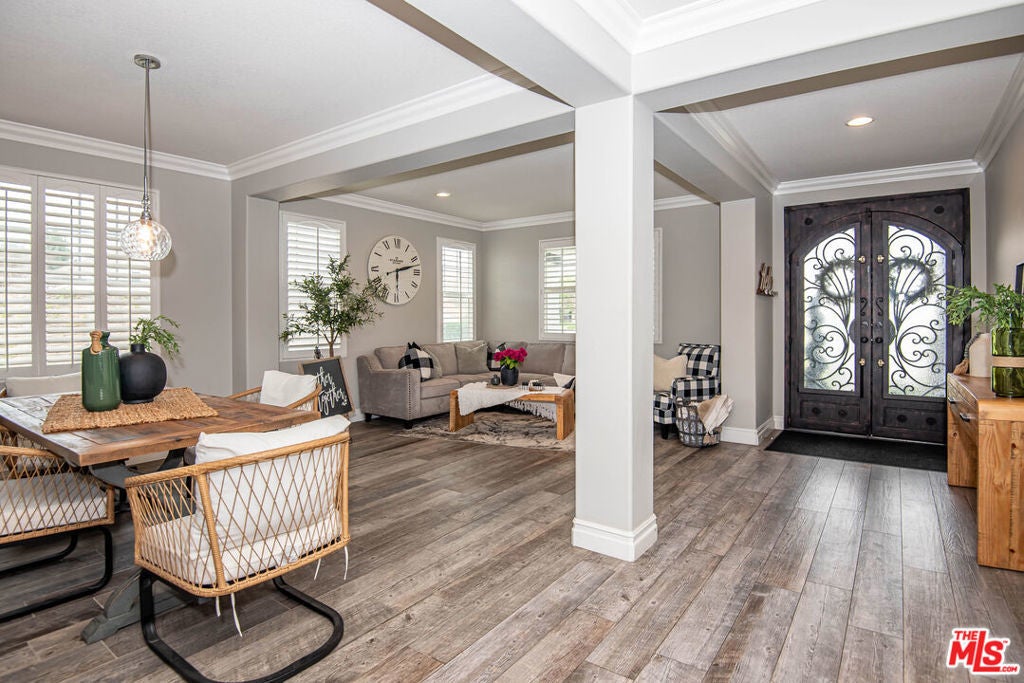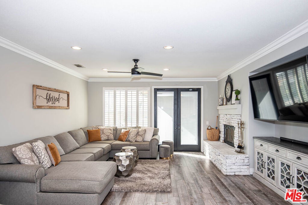 READY TO MOVE IN! This beautifully remodeled, immaculate, four-bedroom, single-story home with a pool & spa clearly has it all, including an oversized garage and leased solar panels. Truly stunning! From the moment you arrive, the wonderful curb appeal and the grand double front doors will catch your attention. As you enter the home, you will find tall ceilings with recessed lighting and natural light beaming throughout the spacious layout. The remodeled master bedroom and bathroom suite showcases a walk-in closet, dual sinks and a larger shower. The open concept kitchen features a huge island with multiple cabinets and drawers, plus ample room for seating. The newer double French doors lead you to an attractive, yet low-maintenance, backyard pool and spa with a covered patio area. Entertaining can easily be done inside or outside! Don't miss out on this stunning home.