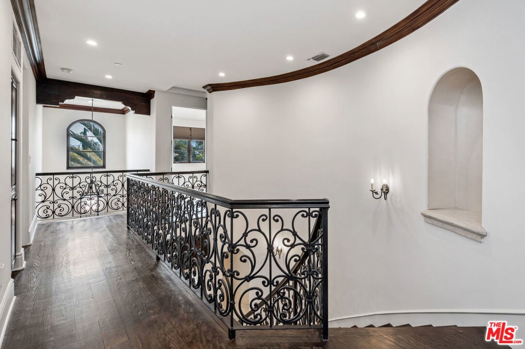 Exceptional lease opportunity on prestigious North Palm Drive in Beverly Hills. This elegant Mediterranean residence which was built in 2005 offers 5 bedroom & 7 bathrooms at approximately 4,565 sq. ft. of sophisticated living space with beautiful scale, timeless finishes, and seamless indoor-outdoor flow. Rich dark wood floors, custom wrought-iron accents, and graciously proportioned interiors create a warm yet refined atmosphere throughout. At the heart of the home is a large chef's kitchen with a generous center island and top-of-the-line appliances including a Wolf range, Sub-Zero refrigerator, and 2 Miele dishwashers, designed to accommodate both everyday comfort and elevated entertaining. The upper level includes generously sized bedroom retreats, refined architectural details, and a stunning custom walk-in closet with extensive built-ins. Outside, the private backyard oasis showcases an inviting pool and spa, expansive stone patio, and mature landscaping that creates a serene, resort-like setting. Complete with gated access and an unbeatable Beverly Hills location near world-class shopping and dining, this residence offers privacy, style, and convenience in equal measure.
