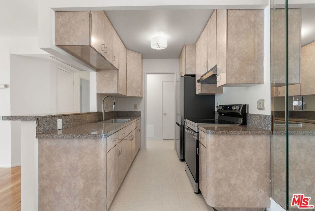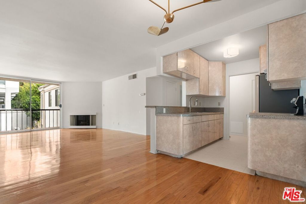 Perched on the 3rd floor of the amenity-rich Holloway Terrace, this unit delivers the classic West Hollywood condo lifestyle with a thoughtful slate of recent upgrades. This 1 bed / 1 bath is in a prime location just moments from the Sunset Strip and Santa Monica Blvd. Inside, the home feels fresh and polished with a newly painted interior, new bedroom carpeting, and updated lighting. The kitchen has been refreshed with new stainless-steel Samsung appliances (fridge, range, and range hood), plus a new stainless sink with pull-down faucet and smart accessories including a drying rack and cutting board, along with a new garbage disposal. It's a clean, modern space ready for everyday living or entertaining. The bathroom has also been updated with a new vanity, lighting, and flooring, and the finishing touch: all-new brass hardware on every interior door for a cohesive, elevated look. Holloway Terrace is known for its amenities including a large pool and spa, gym, sauna, clubhouse/rec room, and a rooftop sundeck with sweeping city and mountain views. Enjoy gated subterranean parking and a secure entry system, all in one of LA's most energetic neighborhoods near Erewhon, Trader Joe's, SoHo House, Equinox, SoulCycle, and the iconic dining, shopping, and nightlife that define West Hollywood.