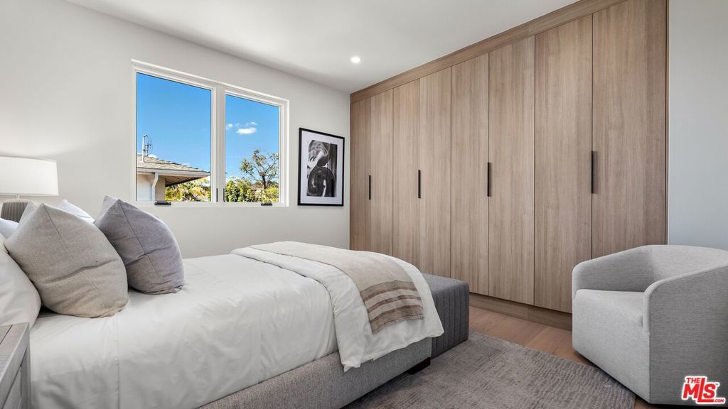 This newly constructed modern residence in the heart of prime Mar Vista offers approximately 4,134 square feet of refined living space with 5 bedrooms and 4.5 baths, blending clean contemporary design with warm, elevated finishes. Sun-filled open living spaces are framed by expansive windows and dramatic Fleetwood pocket doors, creating seamless indoor-outdoor flow that embodies the quintessential California lifestyle. A thoughtfully designed mudroom-style entry closet adds both style and everyday functionality. At the center of the home, the chef's kitchen showcases stunning Taj Mahal quartzite, custom rift oak cabinetry, and top-of-the-line Thermador appliances, complemented by a sleek butler's pantry for effortless entertaining. Natural stone finishes continue throughout the spa-inspired bathrooms, adding a sense of understated luxury. An elegant dining area flows into the spacious family room, highlighted by custom plaster built-in shelving and integrated audio. Built-in speakers extend throughout the home, enhancing both daily living and entertaining. A private main-level guest suite provides ideal flexibility for visitors, a home office, or multi-generational living. Upstairs, the luxurious primary suite features vaulted ceilings, a spa-like bath with an oversized walk-in shower, a custom walk-in closet, and beautifully curated finishes. Outdoor living areas are designed for year-round enjoyment with inviting lounge spaces, while wired security cameras offer added peace of mind. Ideally located just minutes from Venice, Abbot Kinney Boulevard, Santa Monica, and Culver City, as well as Mar Vista's popular dining and shopping destinations, this exceptional residence offers the perfect blend of modern design, comfort, and Westside convenience.