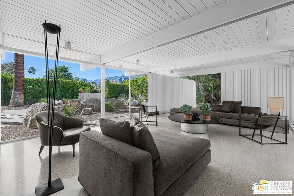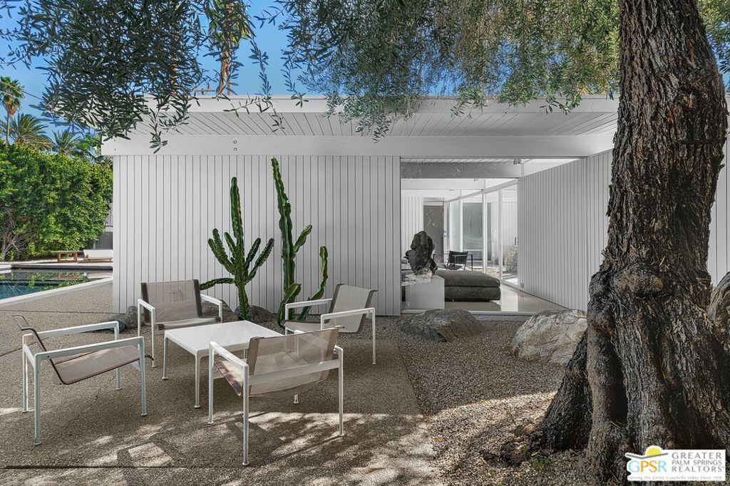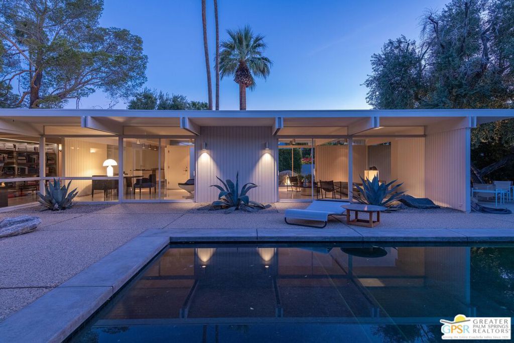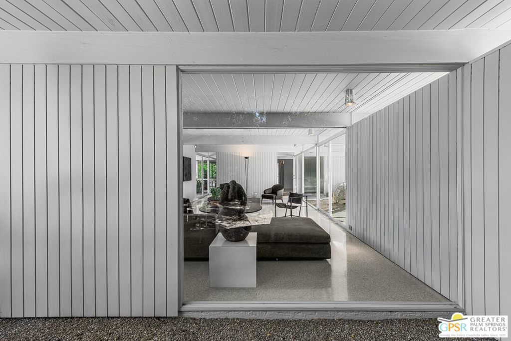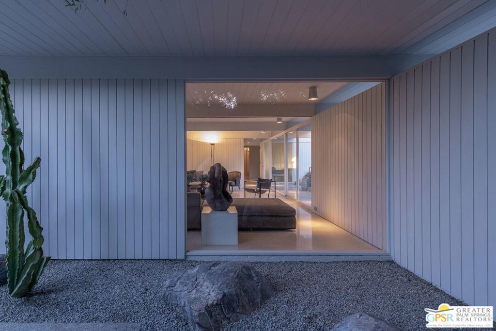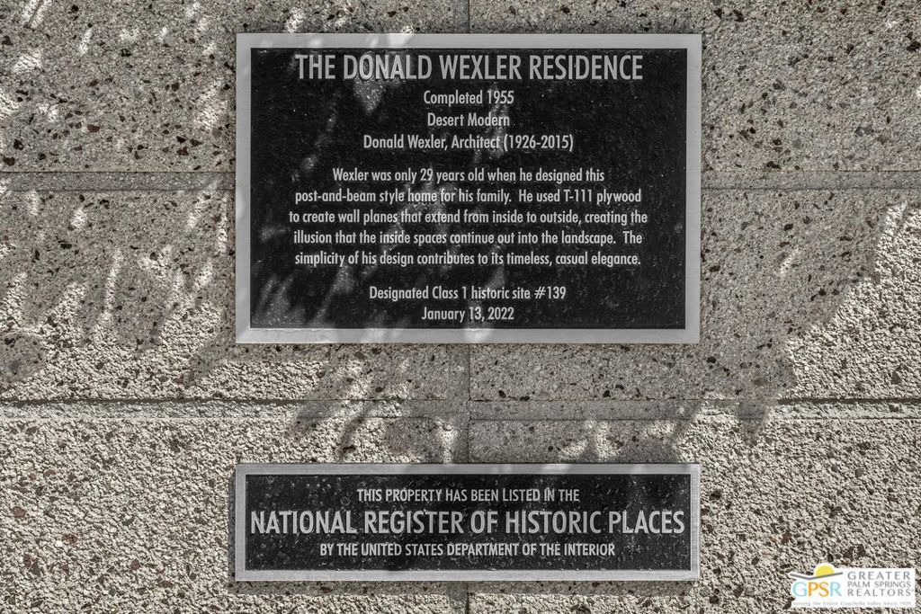 The Wexler Residence is one of Palm Springs' most significant architectural offerings - a deeply personal work of modernism designed in 1955 by Donald Wexler as his own family home. Privately set on approximately one-third of an acre in Movie Colony East, this Class 1 Historic Resource is listed on the National Register of Historic Places and offers the valuable benefit of Mills Act property tax savings. Distinct from the industrial language of Wexler's celebrated steel houses, the residence reveals a softer, more organic vision, shaped by his early work with Richard Neutra and William F. Cody. Its all-wood post-and-beam construction, open and flexible floor plan, floor-to-ceiling glass, and deep overhangs create a seamless relationship between architecture, landscape, and light. From 2007 to 2026, the home underwent a museum-quality restoration completed in three phases, preserving its architectural integrity while elevating it for contemporary living. In a rare full-circle collaboration, Donald Wexler himself, together with architect Lance O'Donnell and designer Darren Brown, helped shape a comprehensive restoration honored with the Palm Springs Modern Committee's Residential Restoration of the Year Award. Original vertical fir siding and spun metal lighting were meticulously preserved, while terrazzo floors, marble surfaces, refined European fixtures, a new roof, updated HVAC, and solar were thoughtfully integrated. Hidden behind gates and a mature perimeter hedge, the grounds unfold as a private desert retreat with native landscaping, ancient boulders, a striking black-bottom pool, detached spa, and sweeping San Jacinto Mountain views - an extraordinary union of historic significance, architectural purity, and beautifully restored modern living.