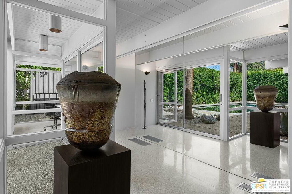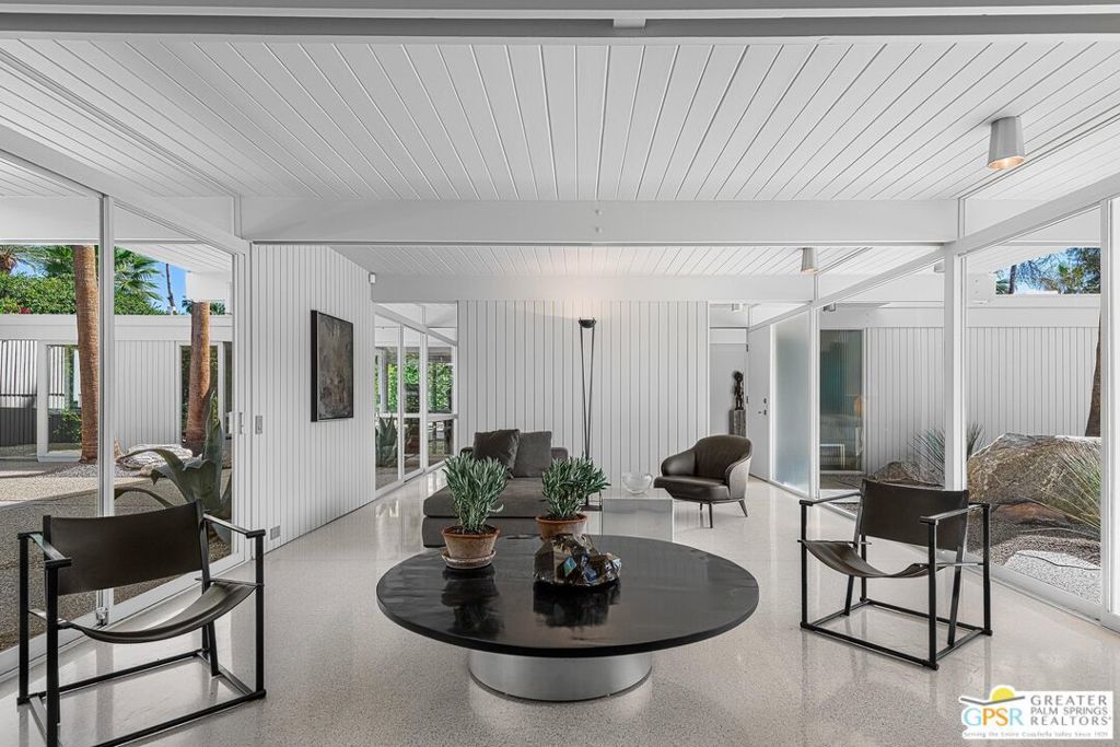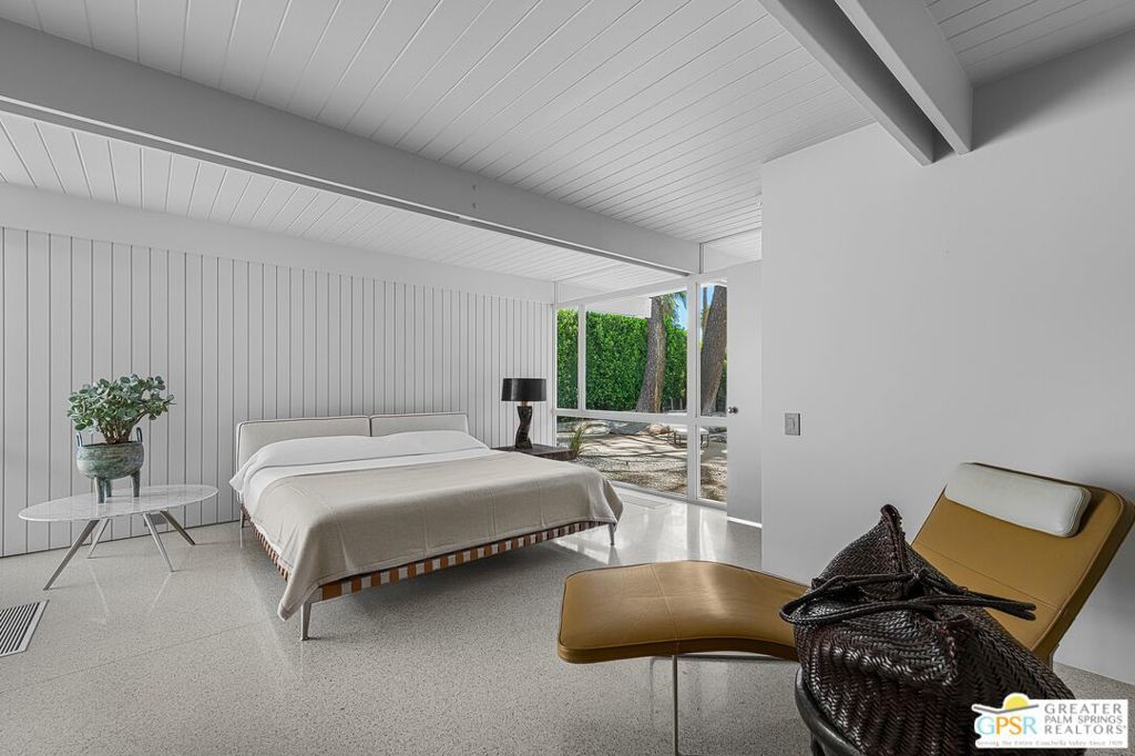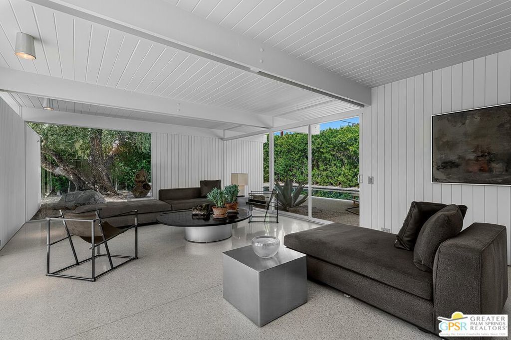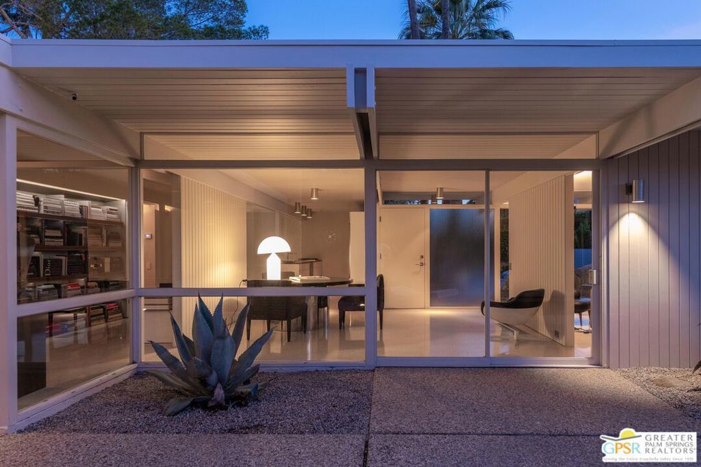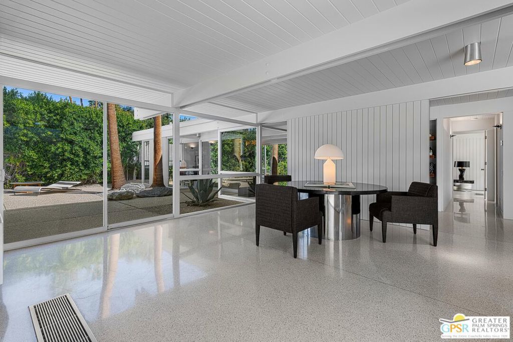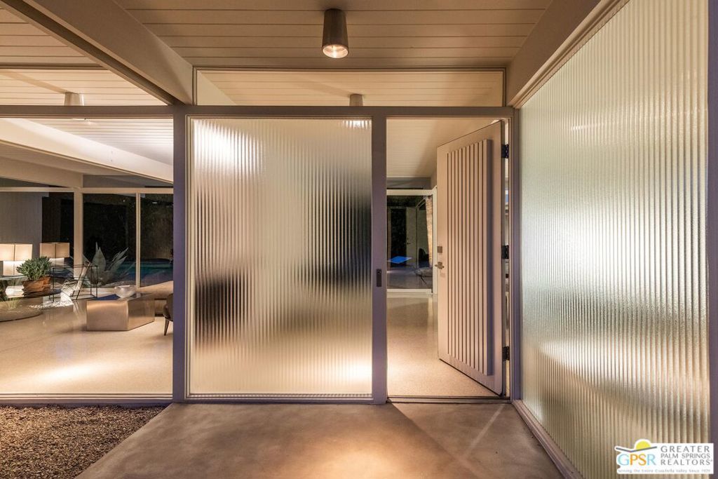 The Wexler Residence is one of Palm Springs' most significant architectural offerings - a deeply personal work of modernism designed in 1955 by Donald Wexler as his own family home. Privately set on approximately one-third of an acre in Movie Colony East, this Class 1 Historic Resource is listed on the National Register of Historic Places and offers the valuable benefit of Mills Act property tax savings. Distinct from the industrial language of Wexler's celebrated steel houses, the residence reveals a softer, more organic vision, shaped by his early work with Richard Neutra and William F. Cody. Its all-wood post-and-beam construction, open and flexible floor plan, floor-to-ceiling glass, and deep overhangs create a seamless relationship between architecture, landscape, and light. From 2007 to 2026, the home underwent a museum-quality restoration completed in three phases, preserving its architectural integrity while elevating it for contemporary living. In a rare full-circle collaboration, Donald Wexler himself, together with architect Lance O'Donnell and designer Darren Brown, helped shape a comprehensive restoration honored with the Palm Springs Modern Committee's Residential Restoration of the Year Award. Original vertical fir siding and spun metal lighting were meticulously preserved, while terrazzo floors, marble surfaces, refined European fixtures, a new roof, updated HVAC, and solar were thoughtfully integrated. Hidden behind gates and a mature perimeter hedge, the grounds unfold as a private desert retreat with native landscaping, ancient boulders, a striking black-bottom pool, detached spa, and sweeping San Jacinto Mountain views - an extraordinary union of historic significance, architectural purity, and beautifully restored modern living.